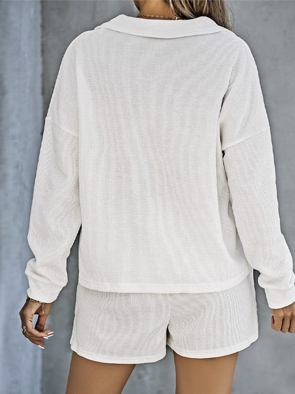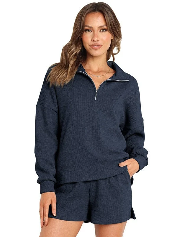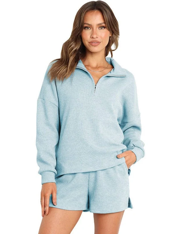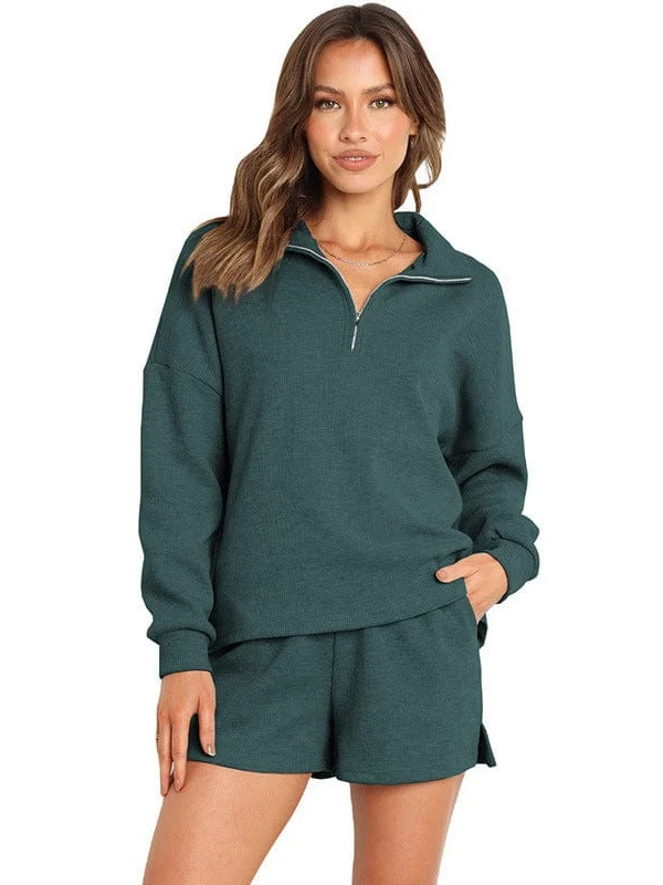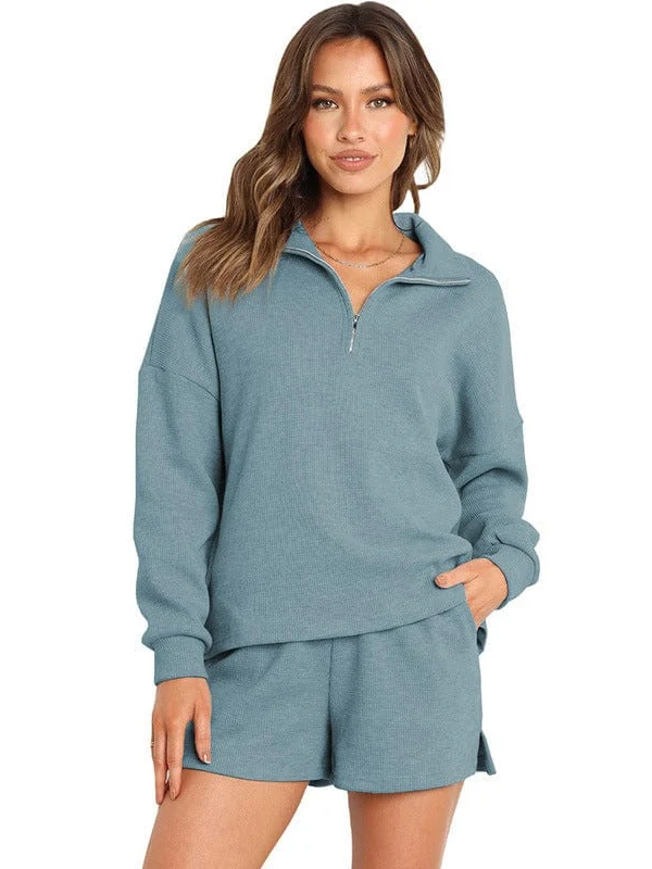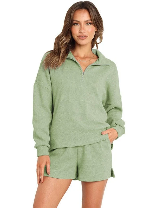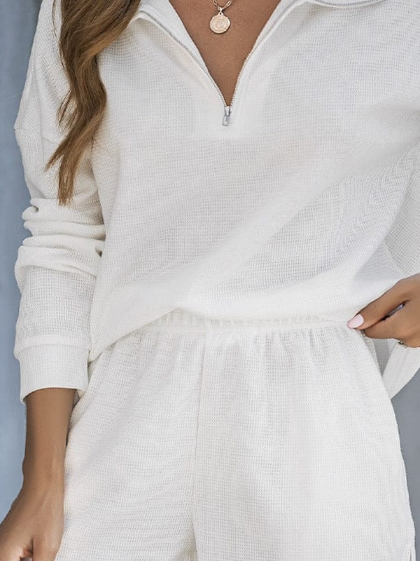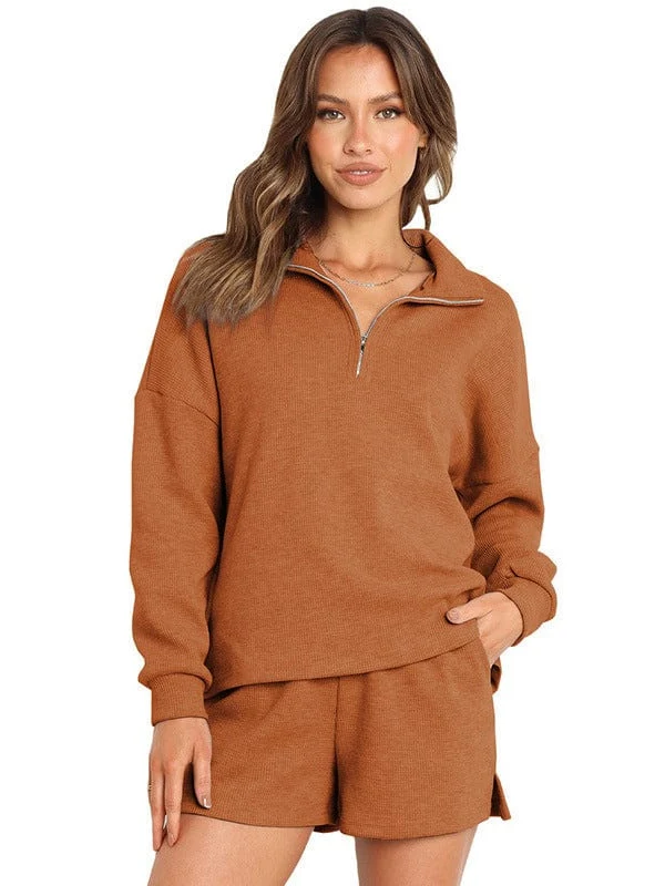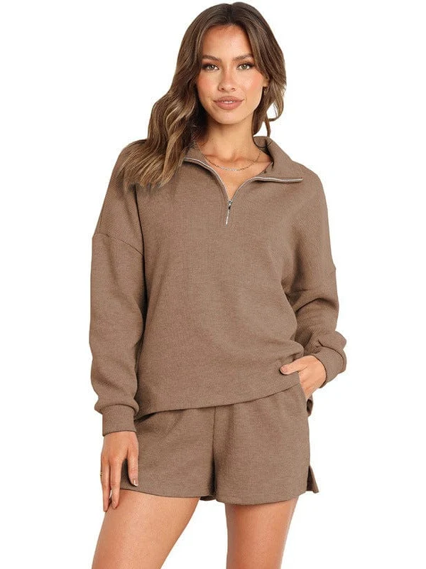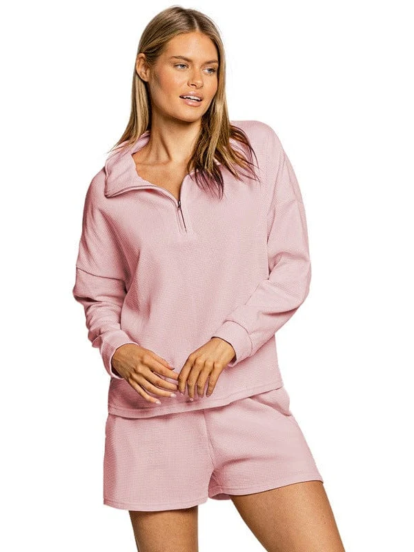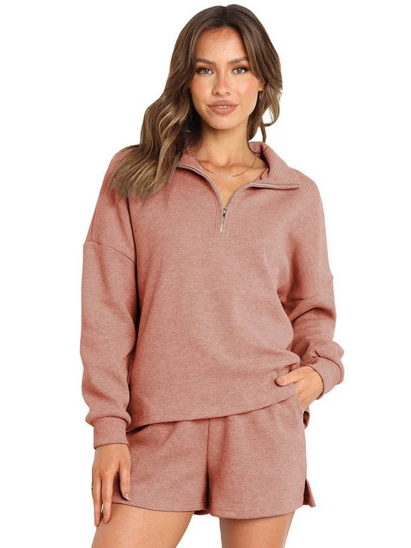 • Women'S Street Style Two-Piece Waffle Fabric Sports Suit With Long Sleeves