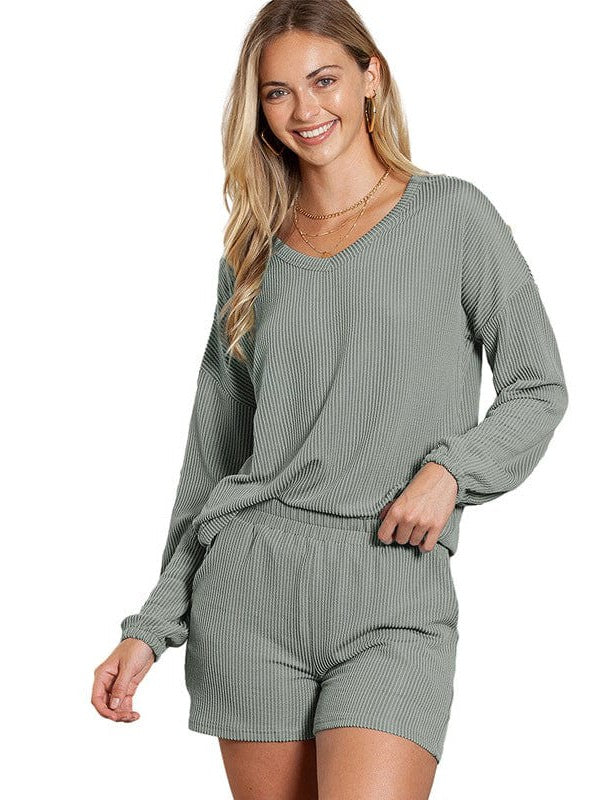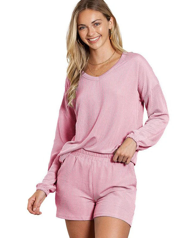 • Chic Women'S V-Neck Two-Piece Sports Suit With Loose Long Sleeves