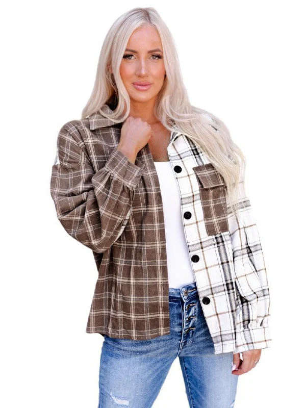 Trendy Plaid Long-Sleeved Shirt & Printed Cardigan Jacket Combo For Women