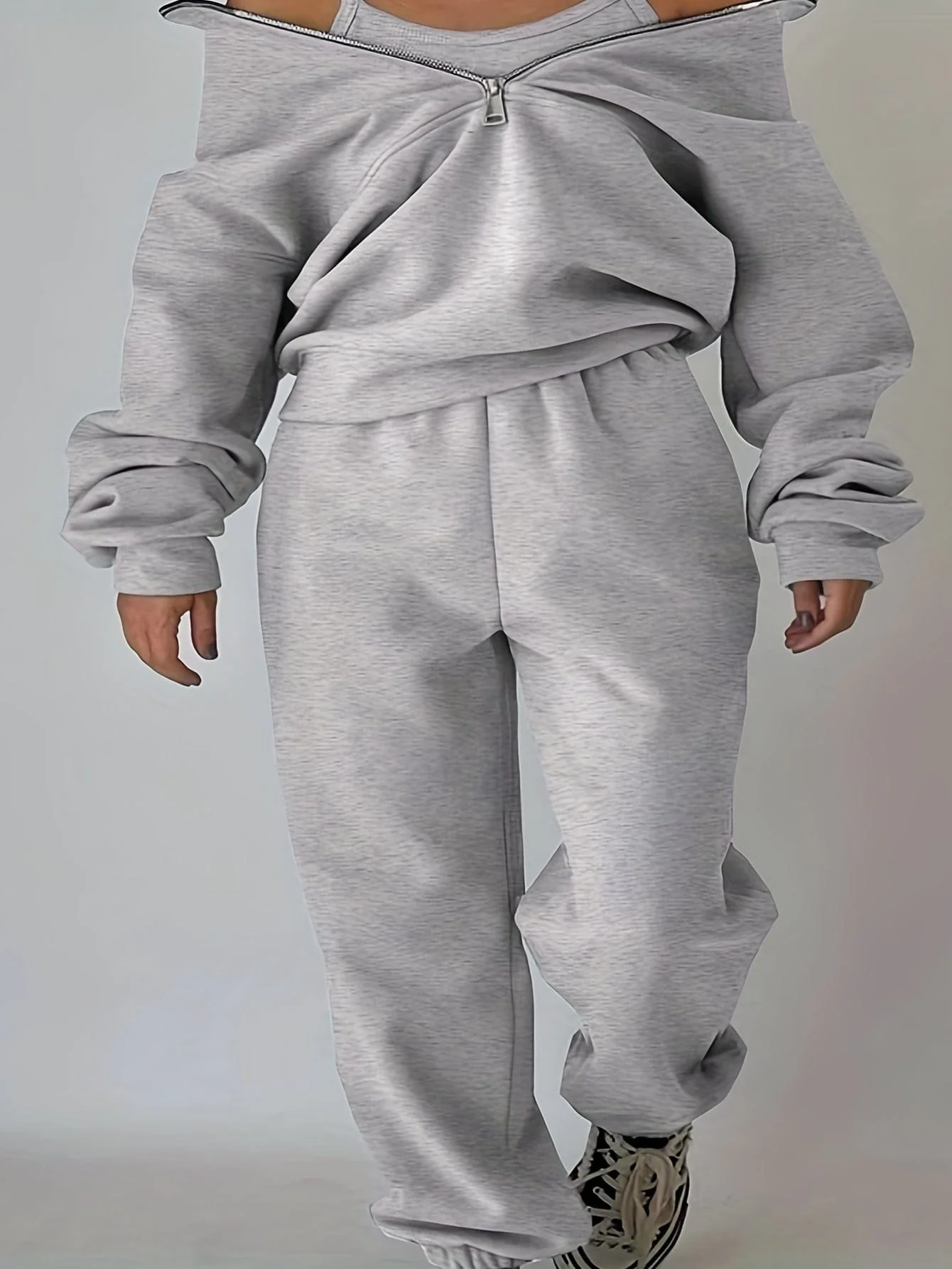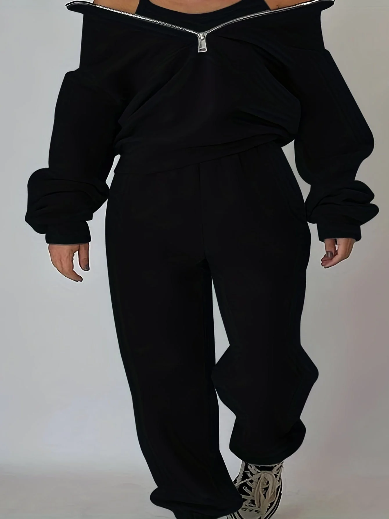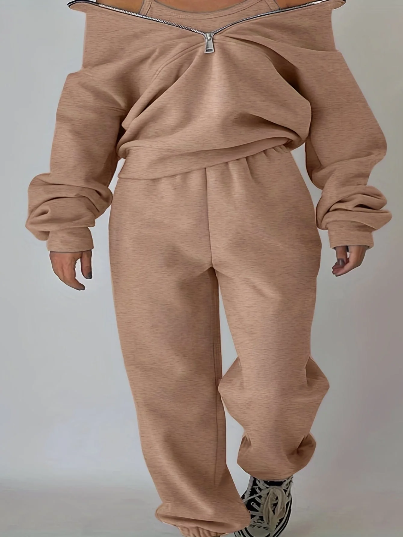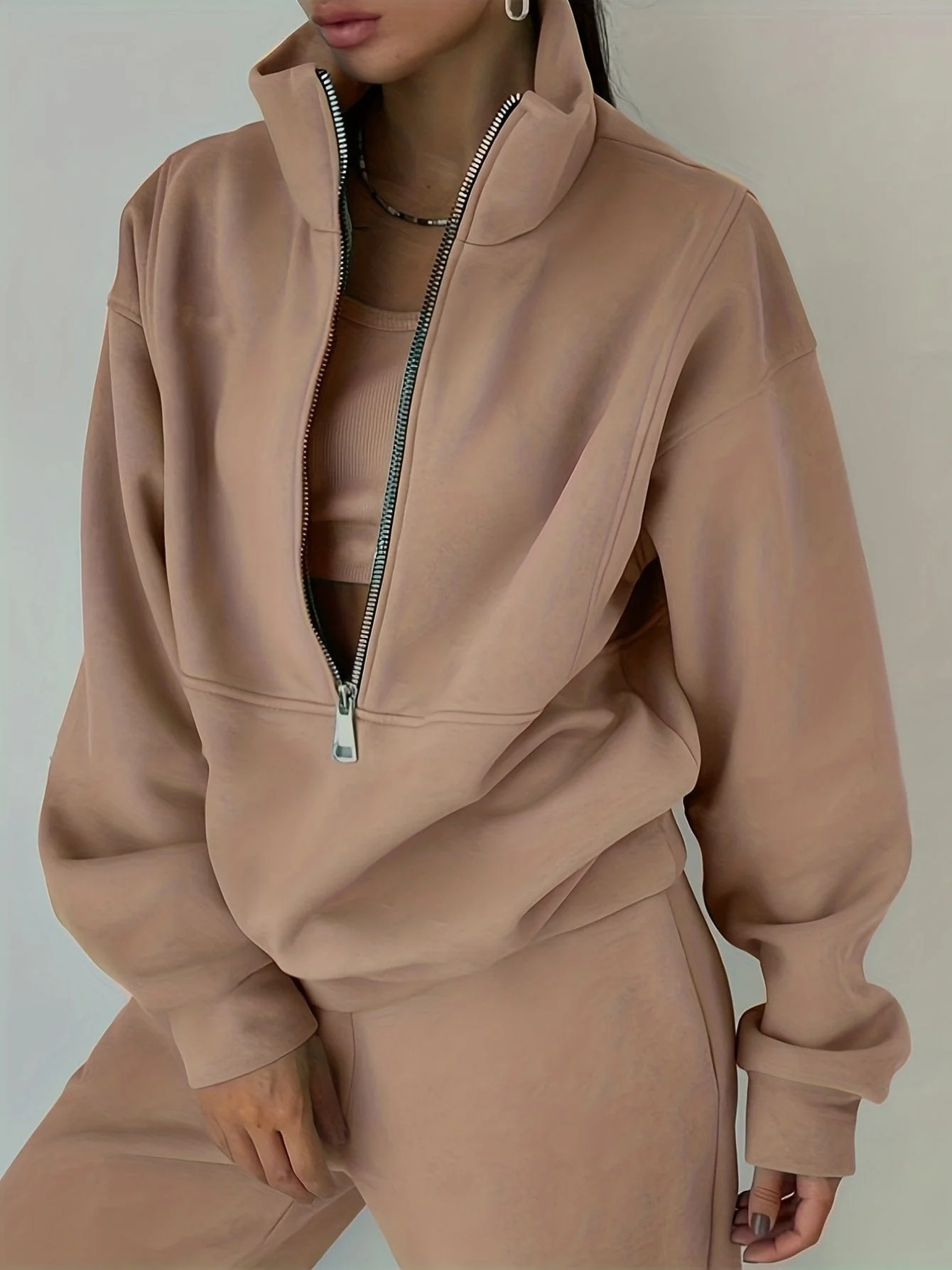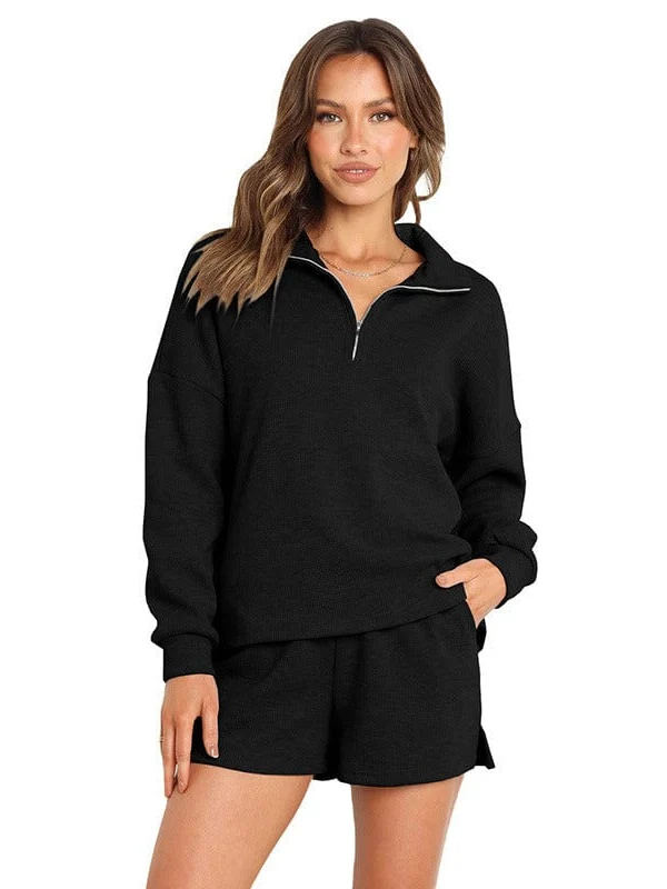 Stylish Zip-Up Sweatshirt & Solid Sweatpants Two-Piece Set