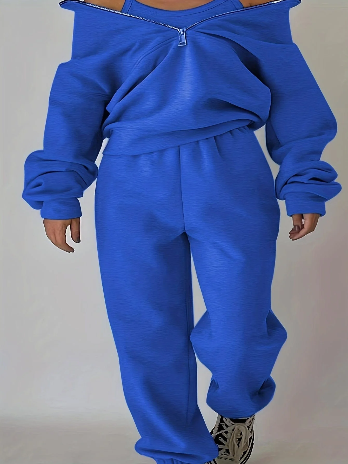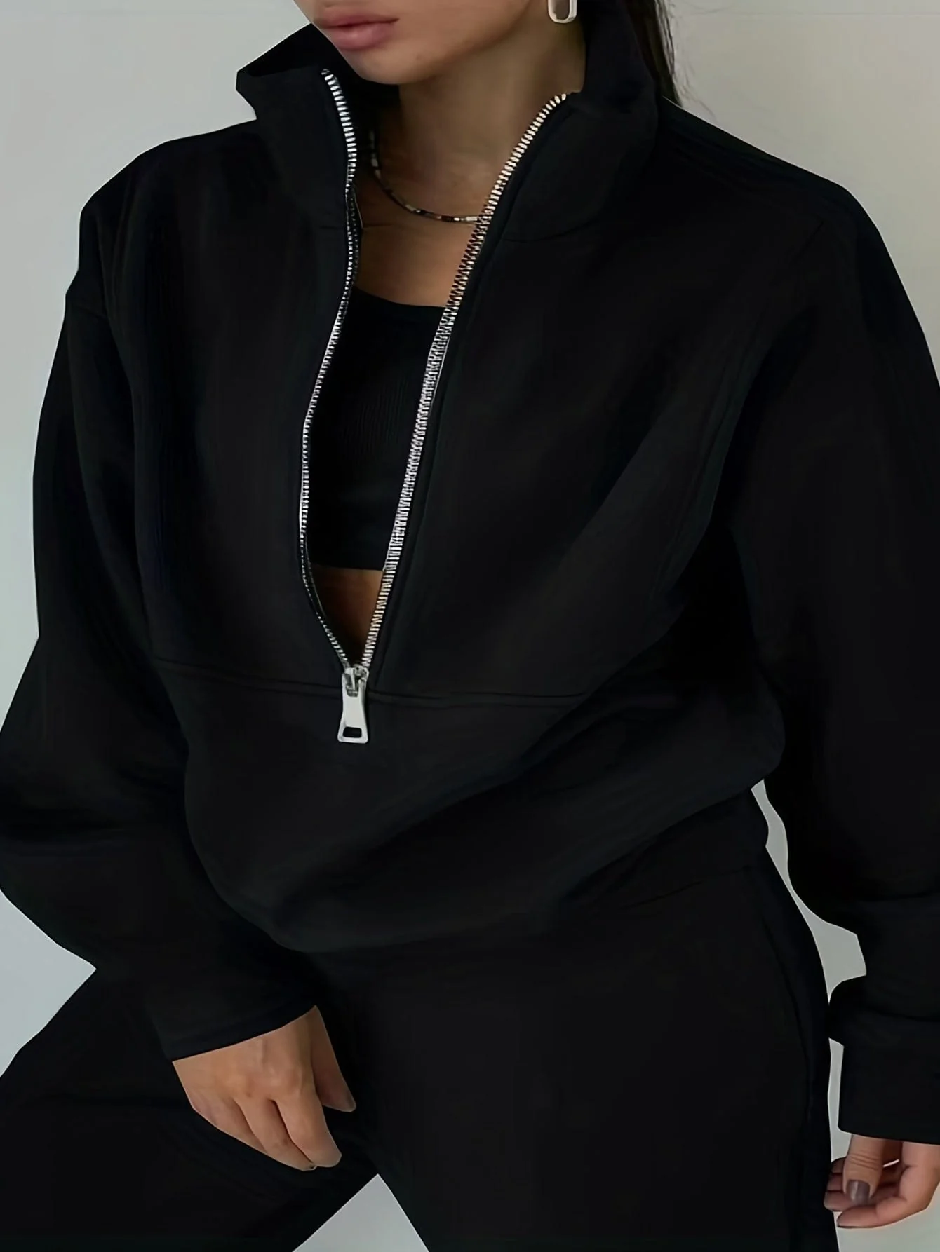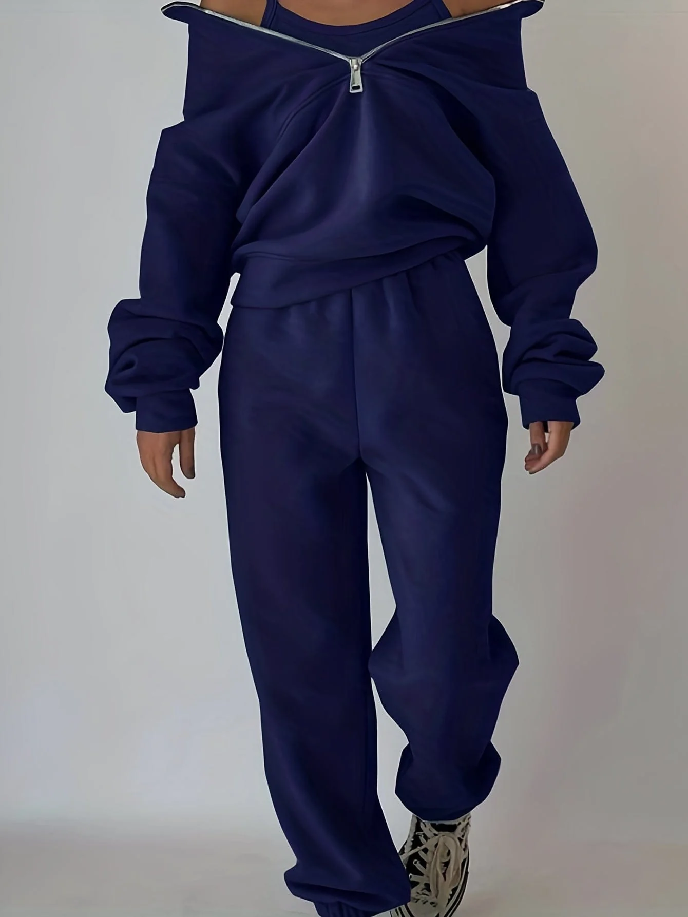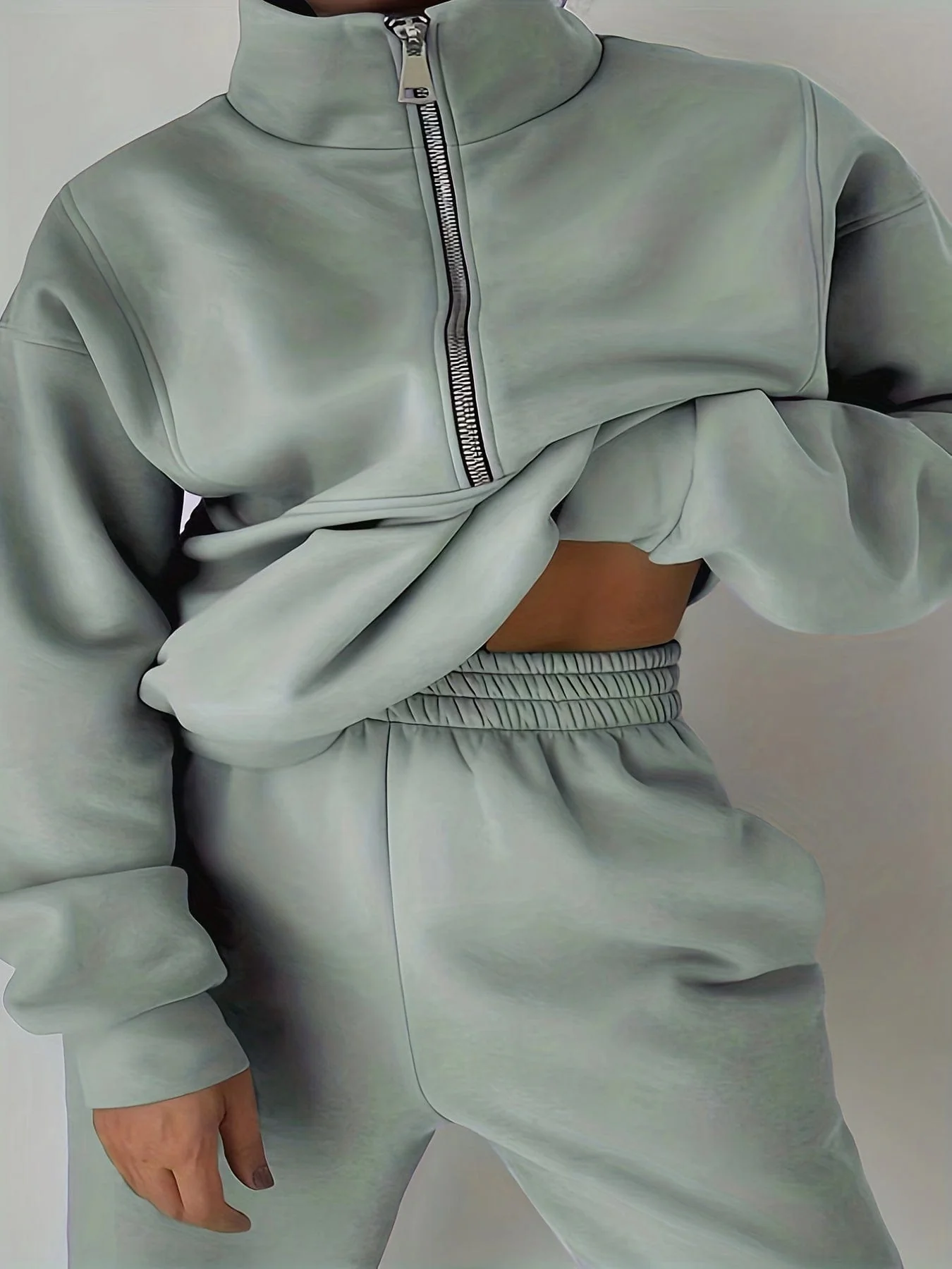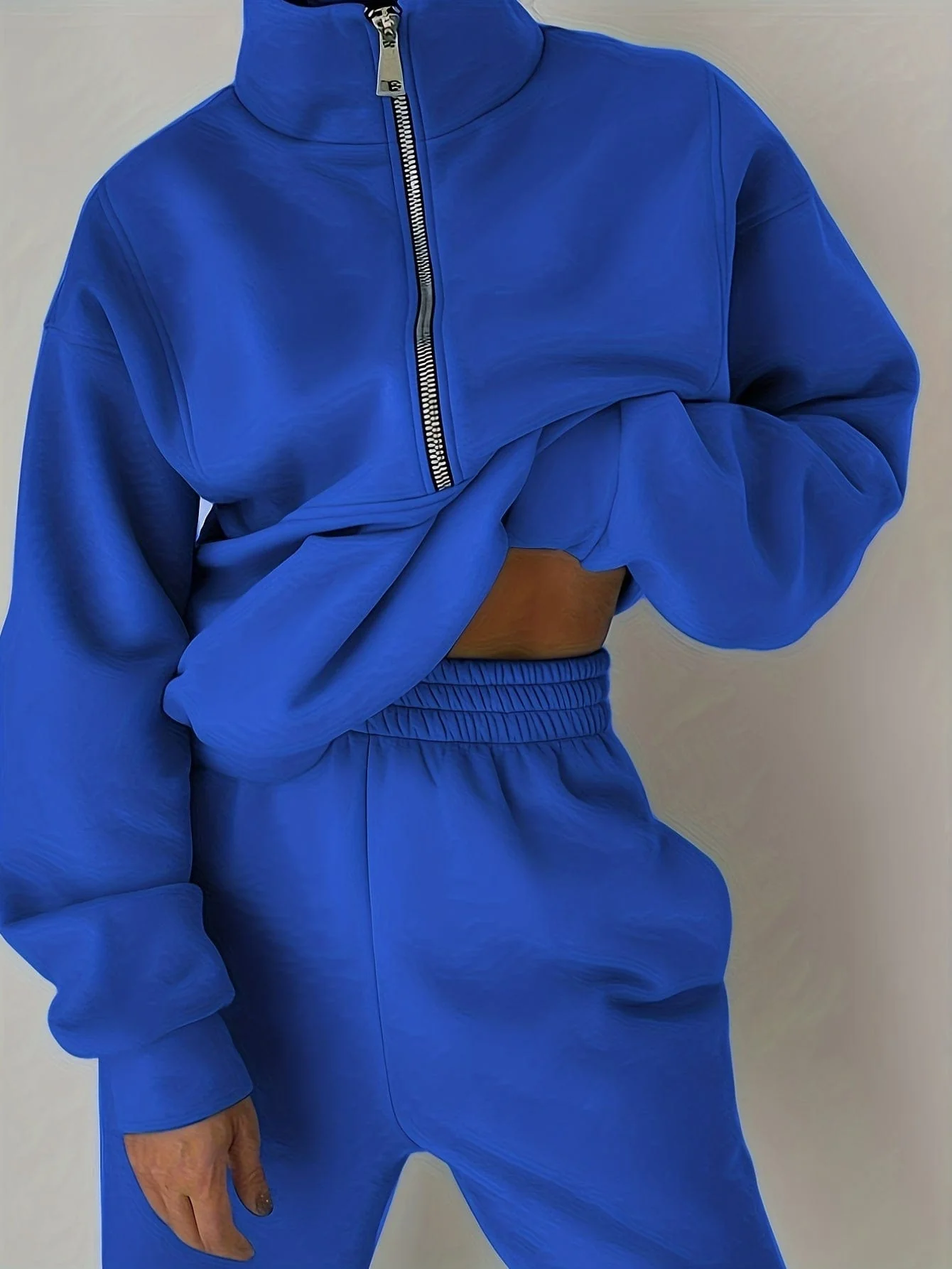Stylish Zip-Up Sweatshirt & Solid Sweatpants Two-Piece Set
