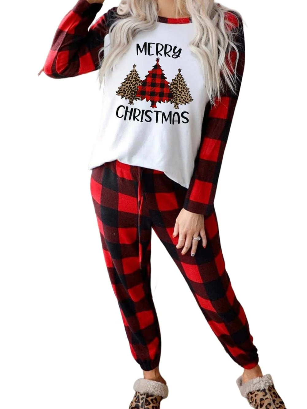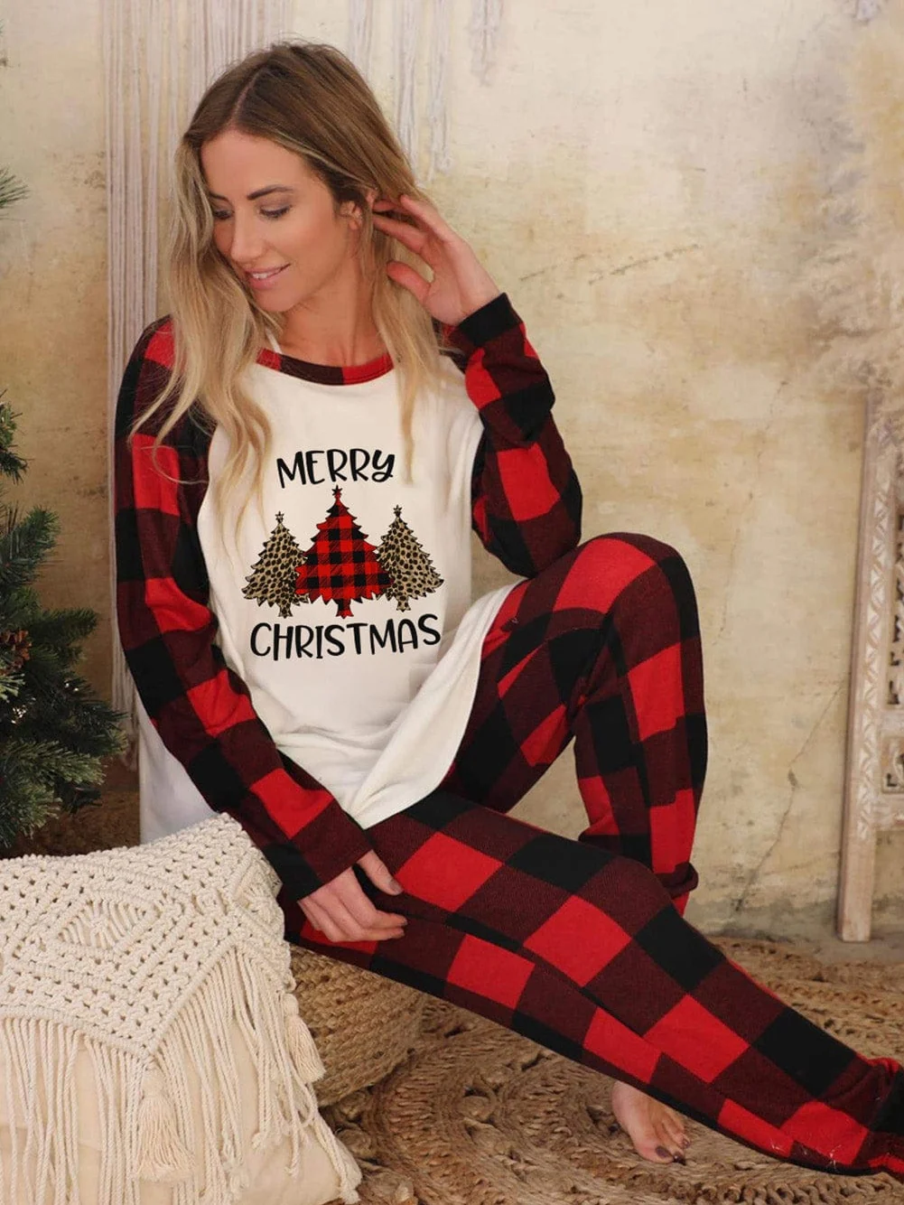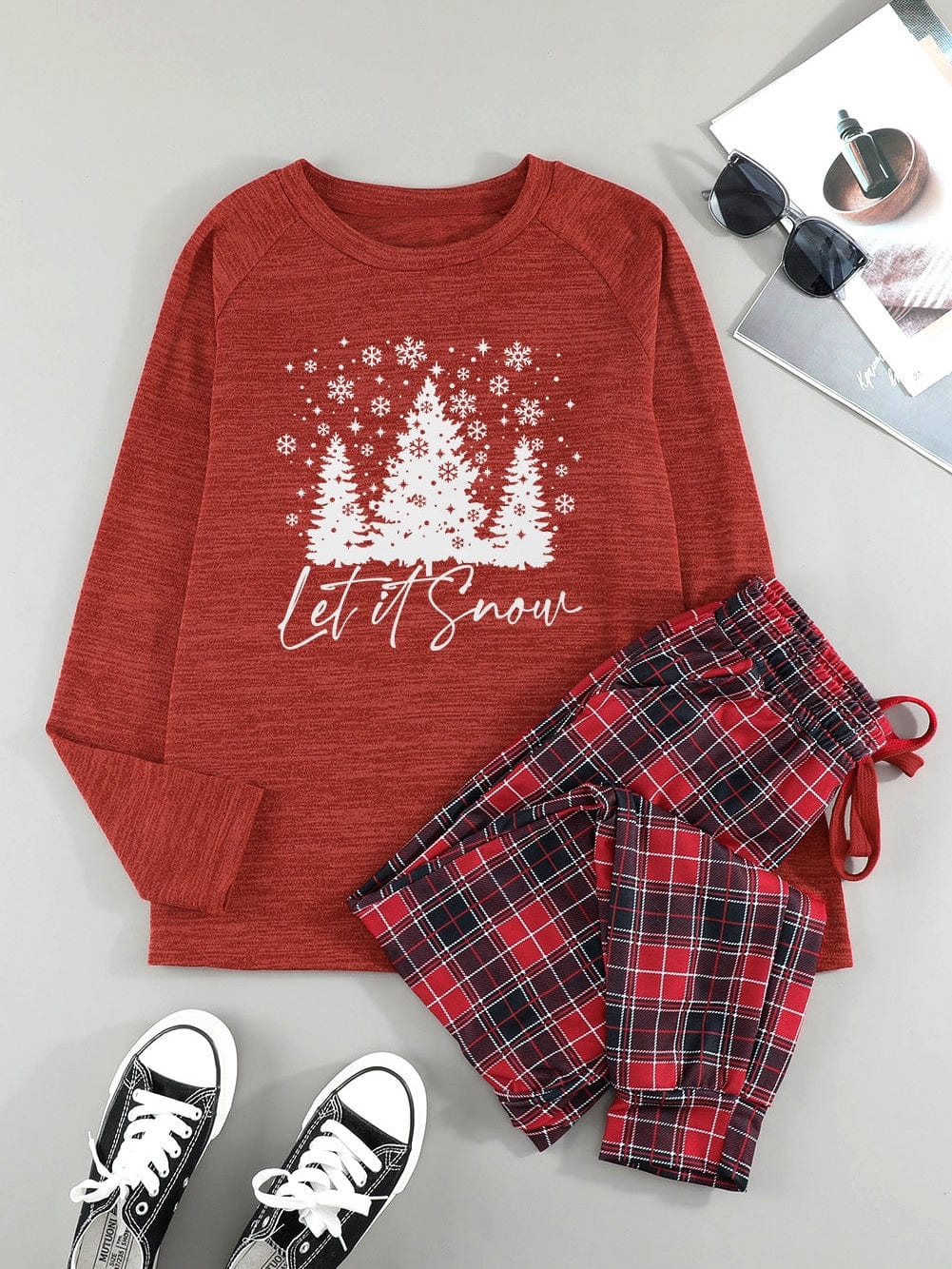 • Red Christmas Tree Snowflake Plaid Lounge Set