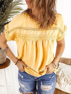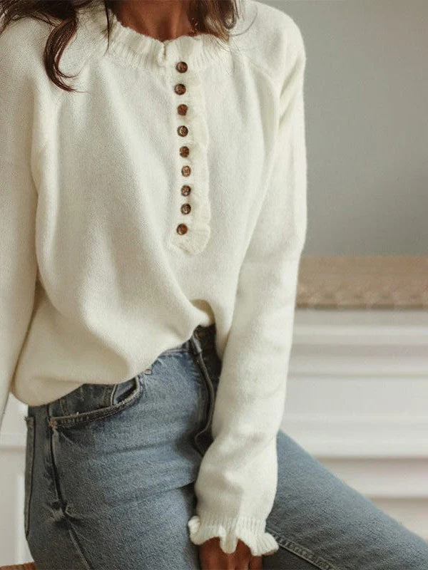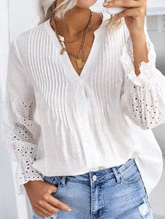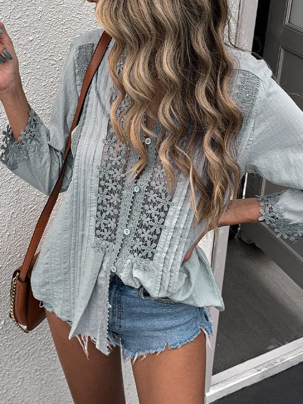 • Solid Stitch Lace Sweater with Long Sleeves