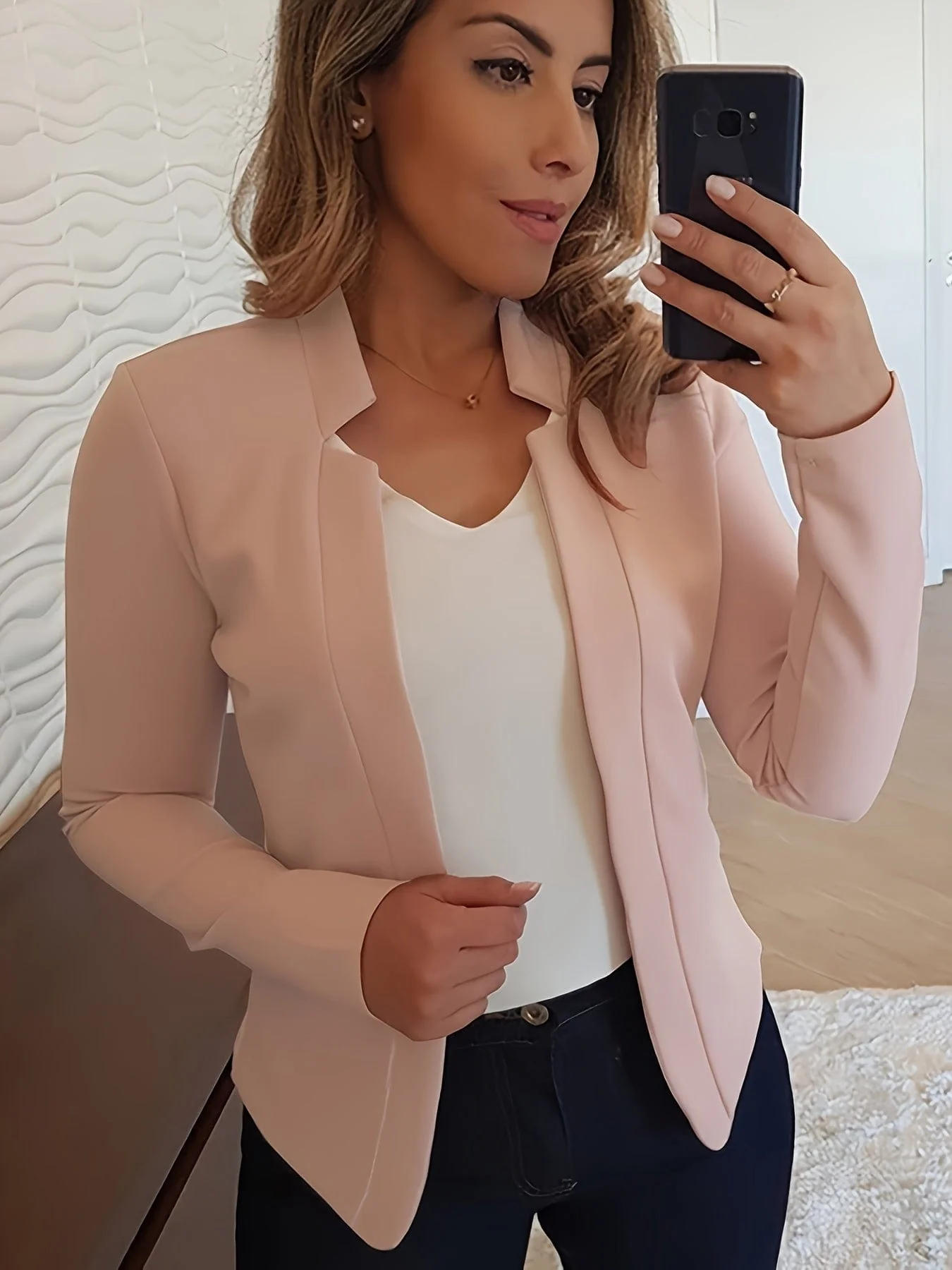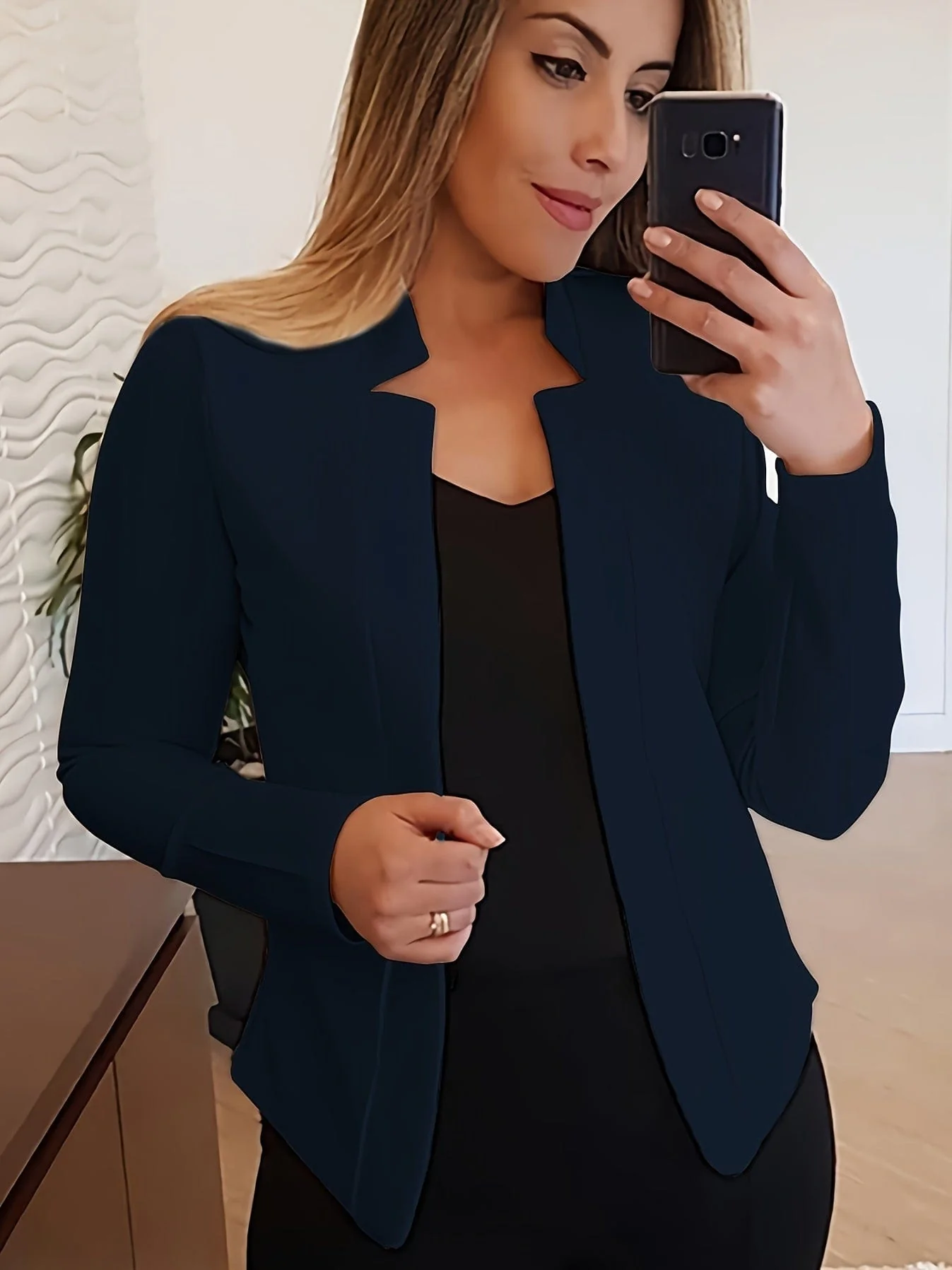 Timeless Elegance Womens Solid Open Front Blazer