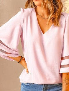 Solid V-Neck Flared Sleeve T-Shirt - Cape - Batwing - Scoop - Jewel - Closed