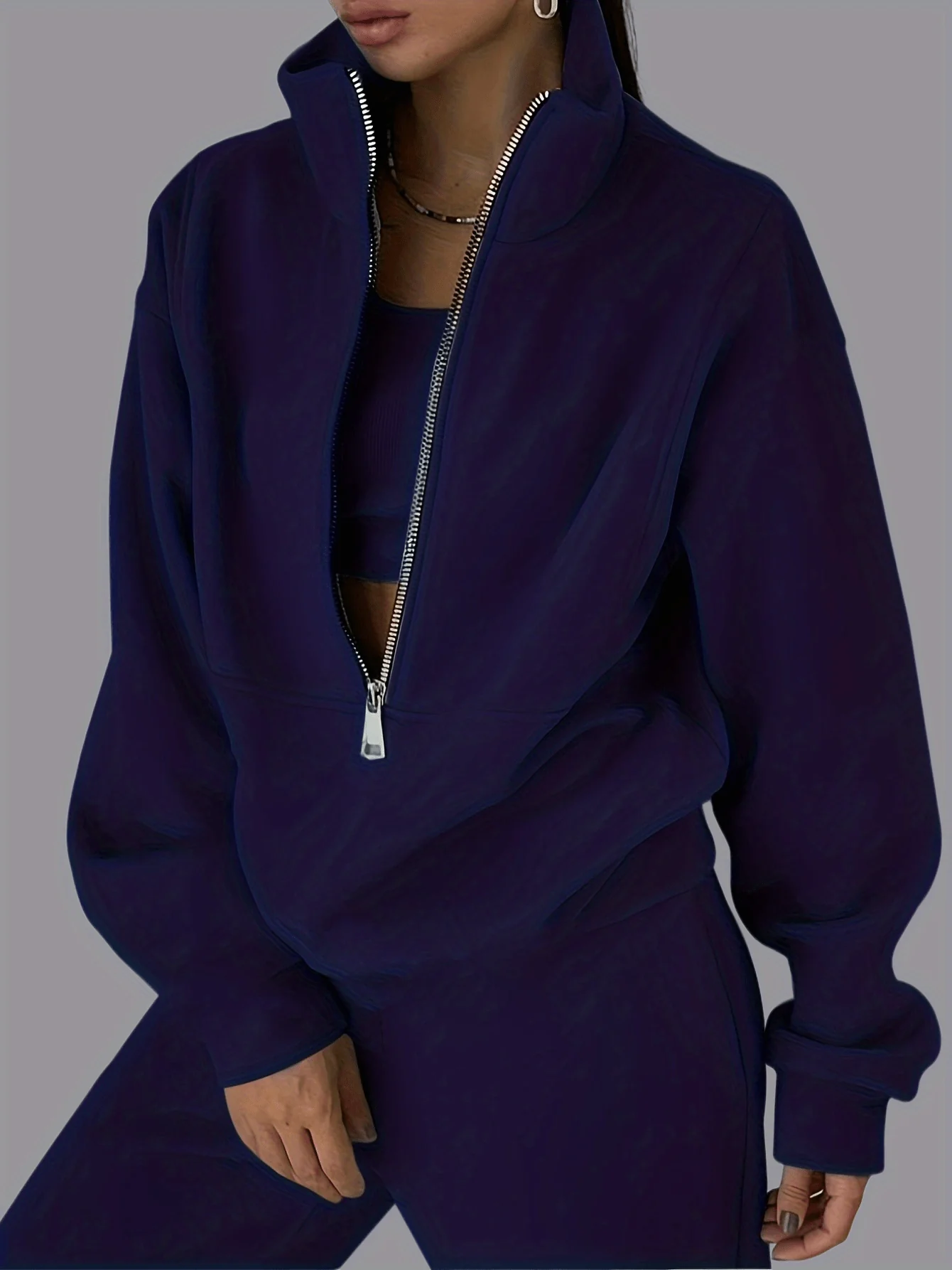 Chic Women'S V-Neck Two-Piece Sports Suit With Loose Long Sleeves