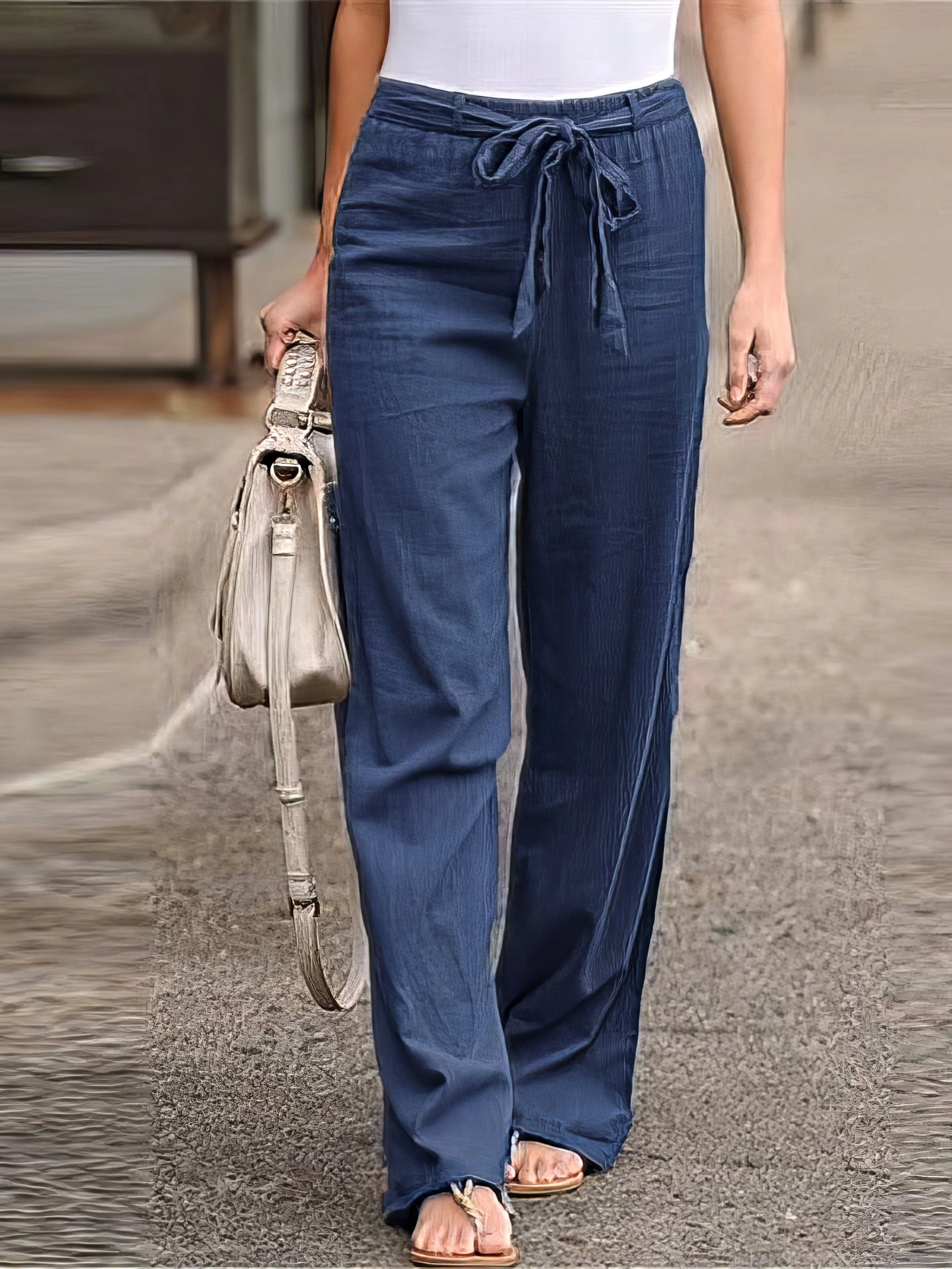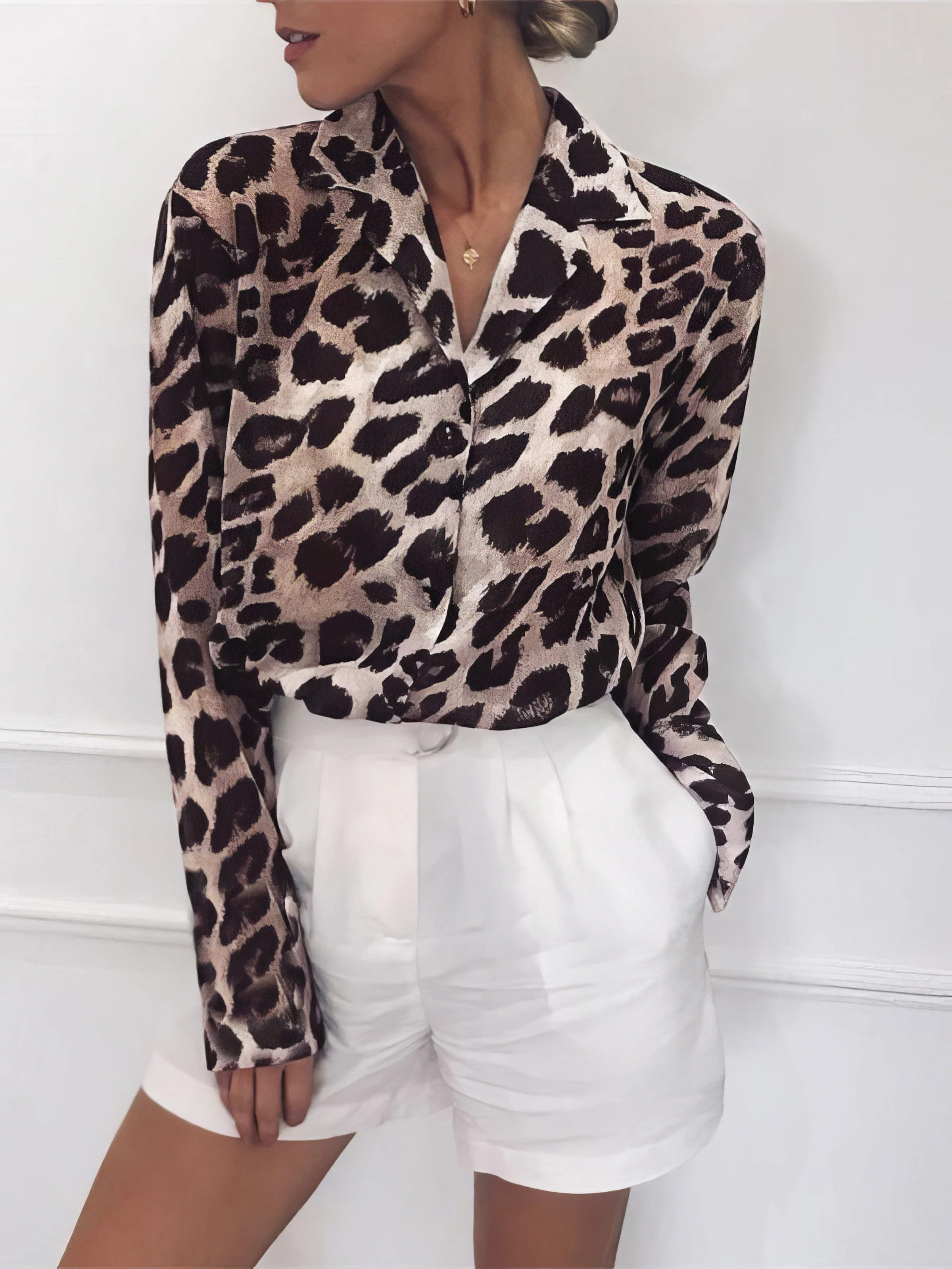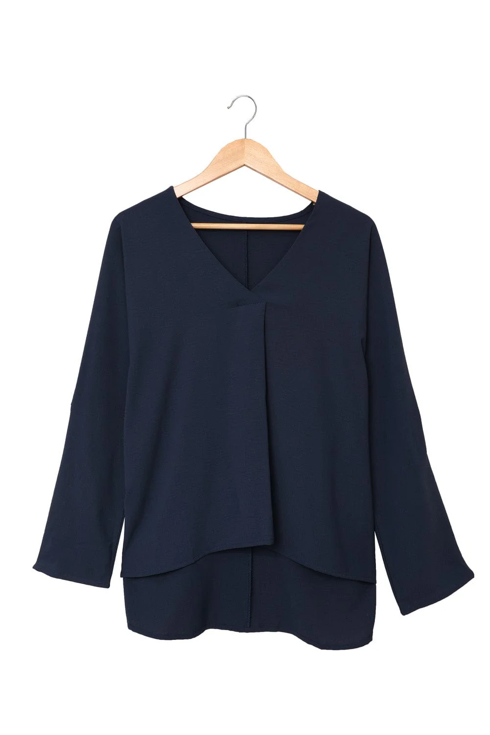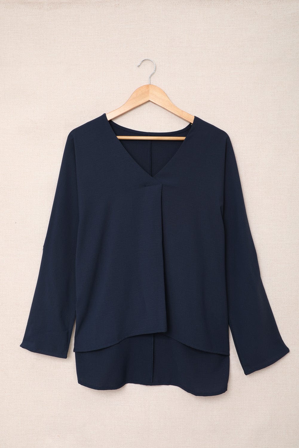 V-neck Long-sleeved Chiffon Solid Blouse - Drop Shoulder - Closed - Shirt
