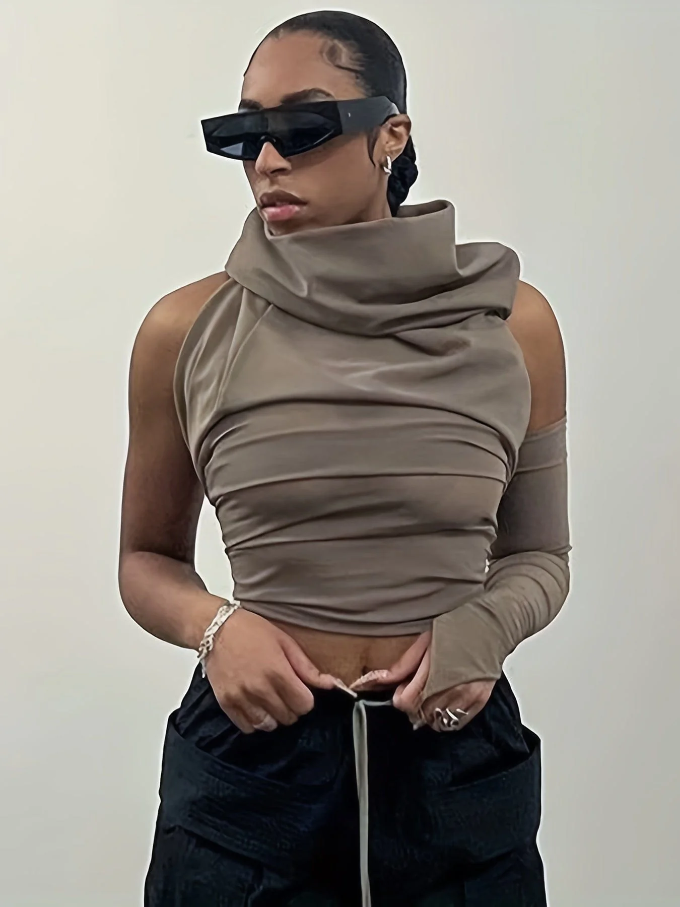 Casual Zip Cardigan Long Sleeve Knit Hoodie - Shirt - Drop Shoulder - V-Neck - Closed - Jewel