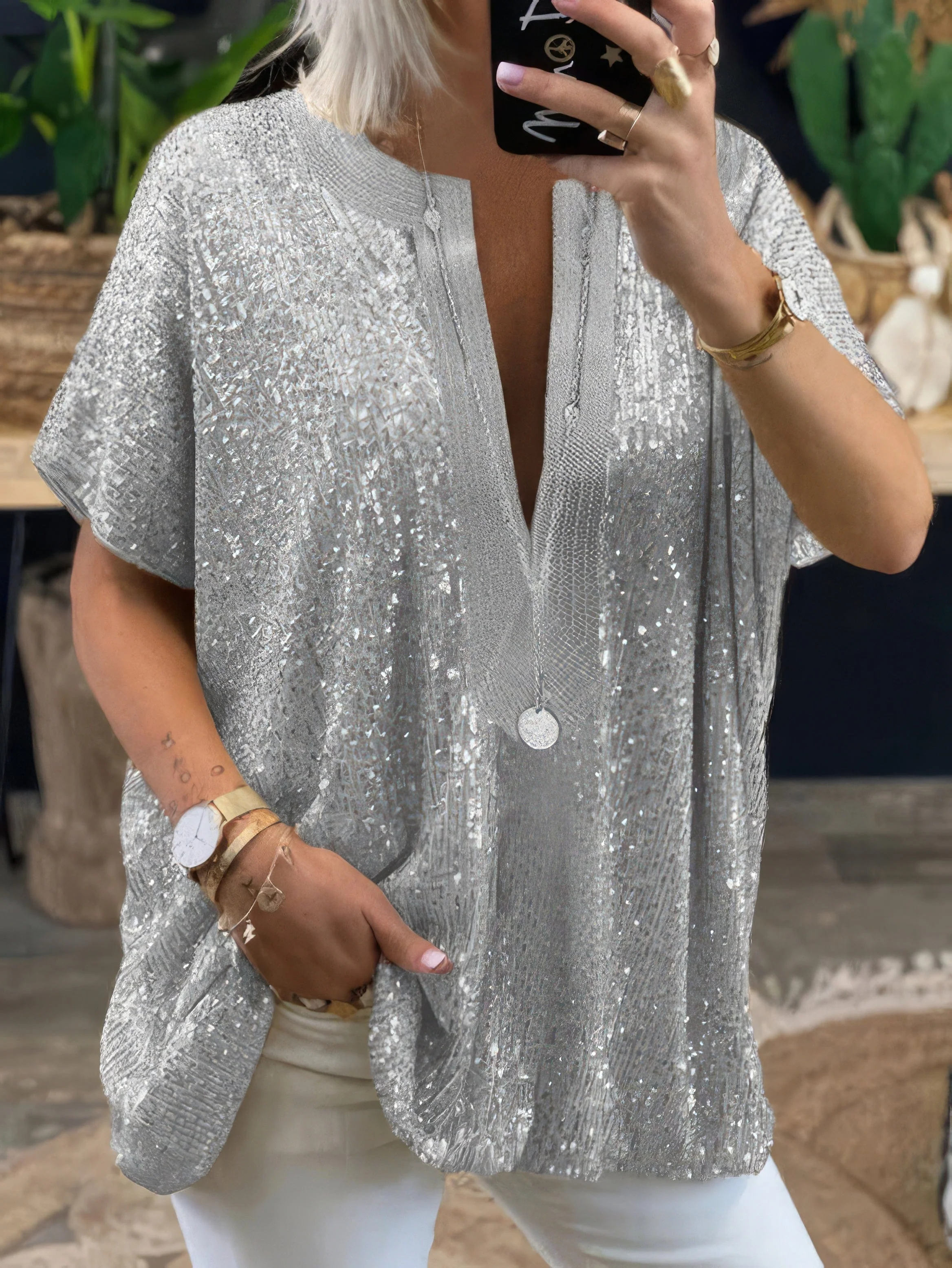 Women's V Neck Dolman Sweater, Short Sleeve Tunic Pullover Top, Lightweight Knit Sweater Blouse