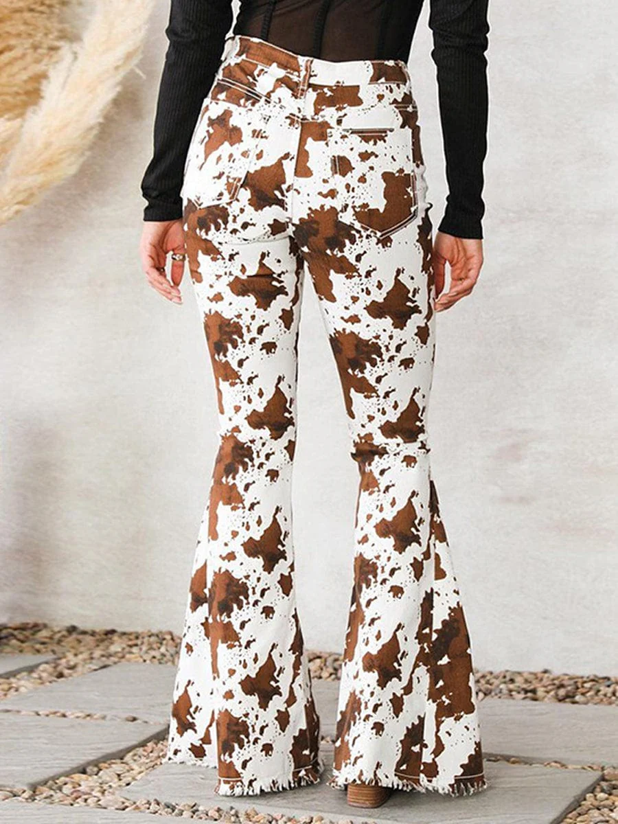 Trendy Fashion Print High Waist Flared Slim Versatile Pants