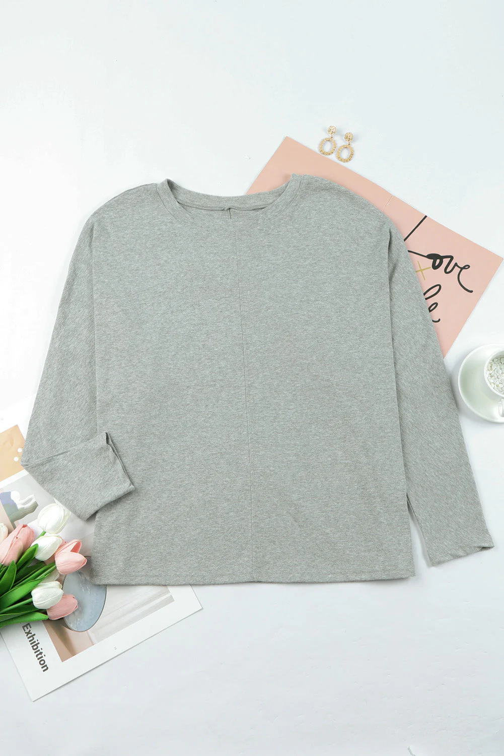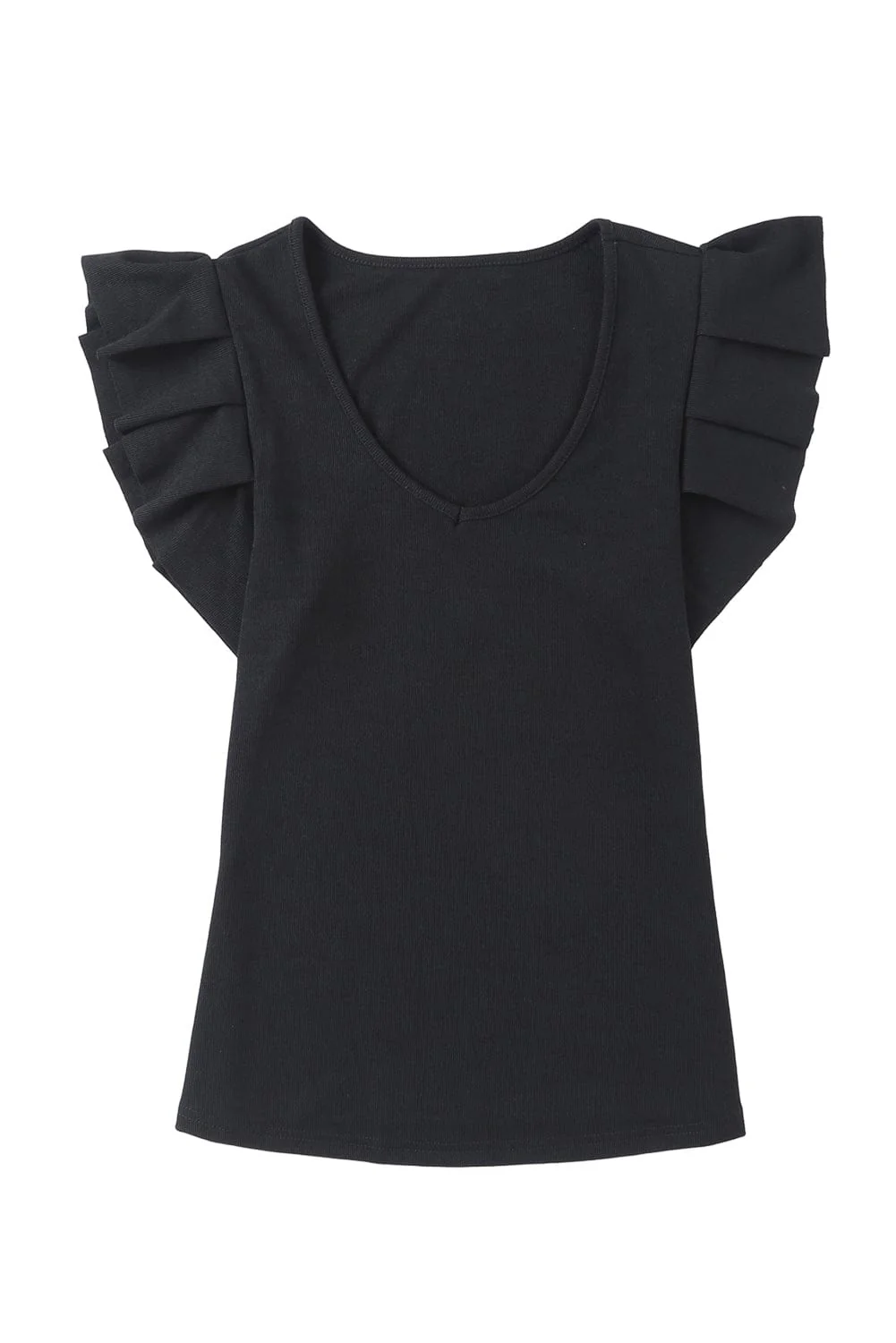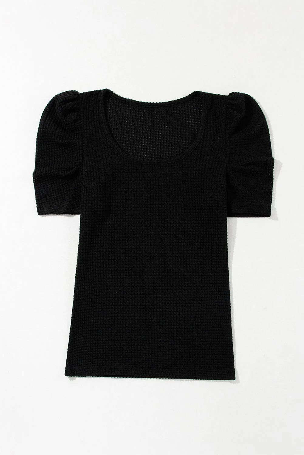 Simple Round Neck Pleated Short Sleeve T-Shirt -Circular Cap - Drop Shoulder - Scoop - Jewel - Closed