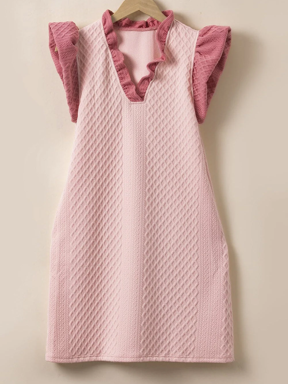 Casual Holiday Lace Stitching Waist V Neck Mini Dress