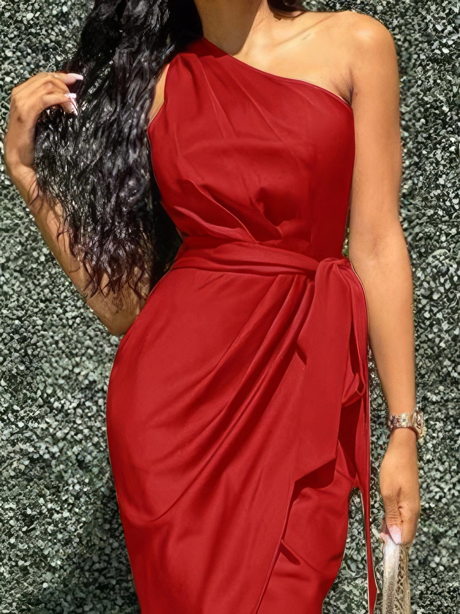 Elegant Slanted Shoulder Sleeveless Long Dress