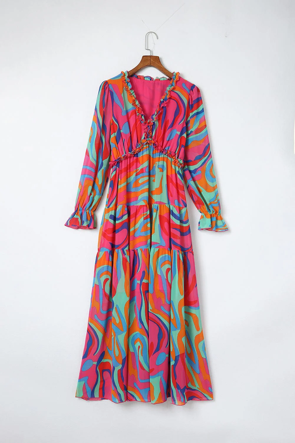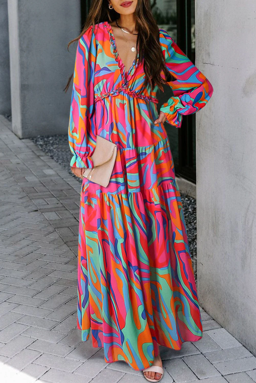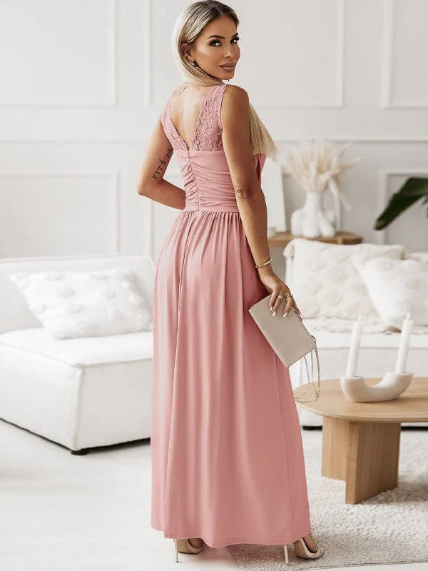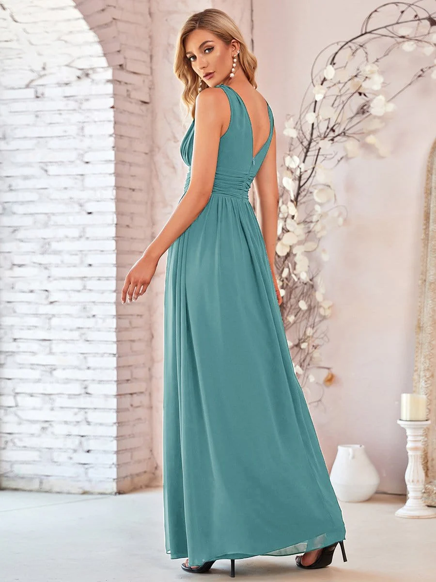 Pleated Sleeveless V-Neck Chiffon Maxi Dress