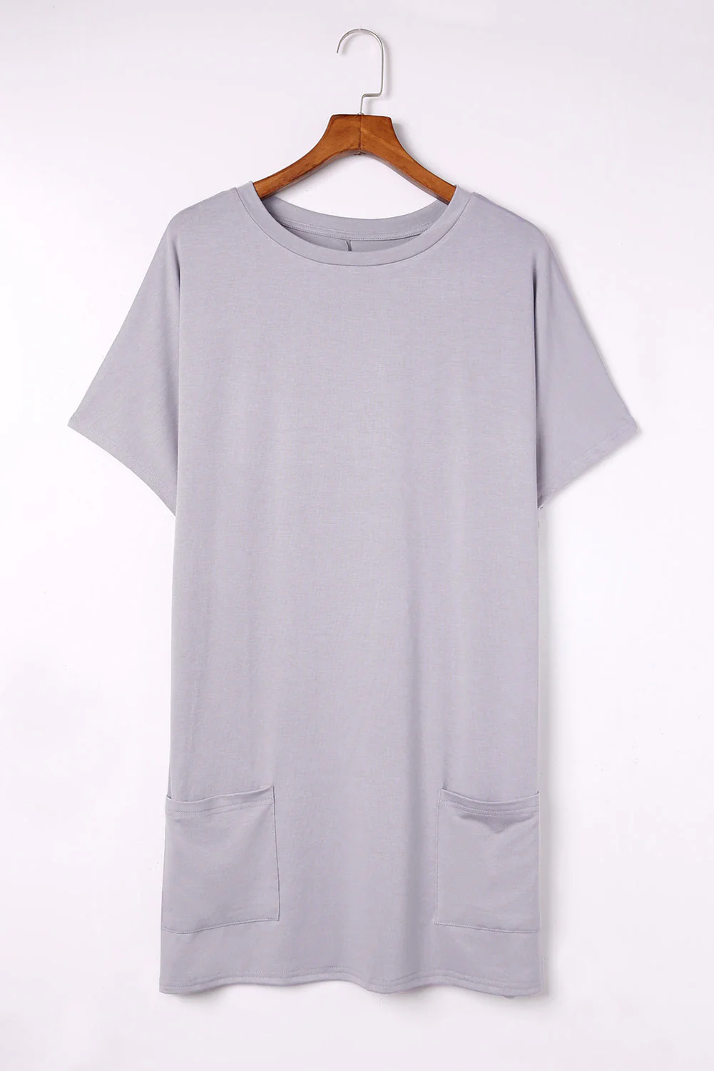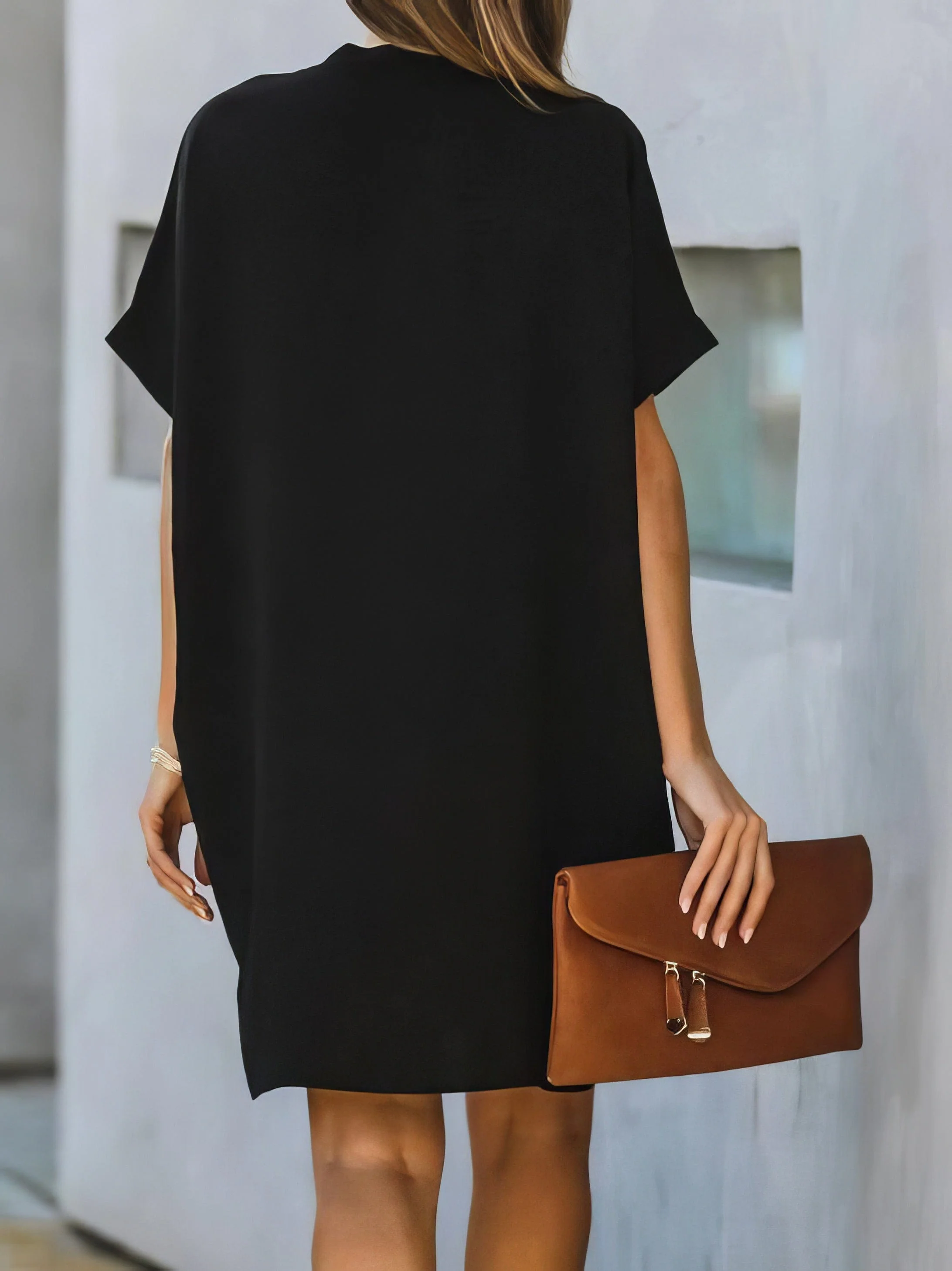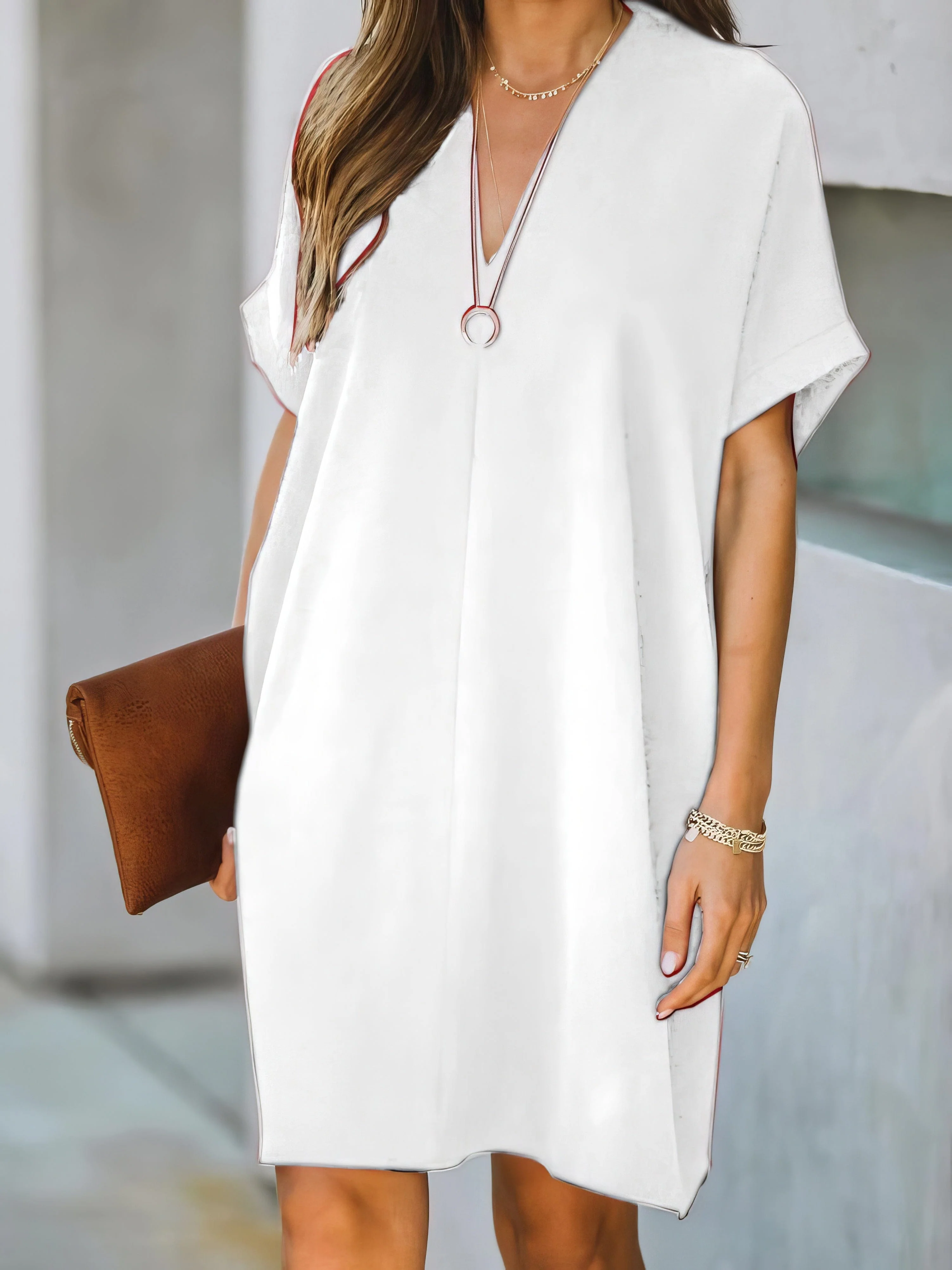 V-neck Short Sleeve Solid Color Loose Dress