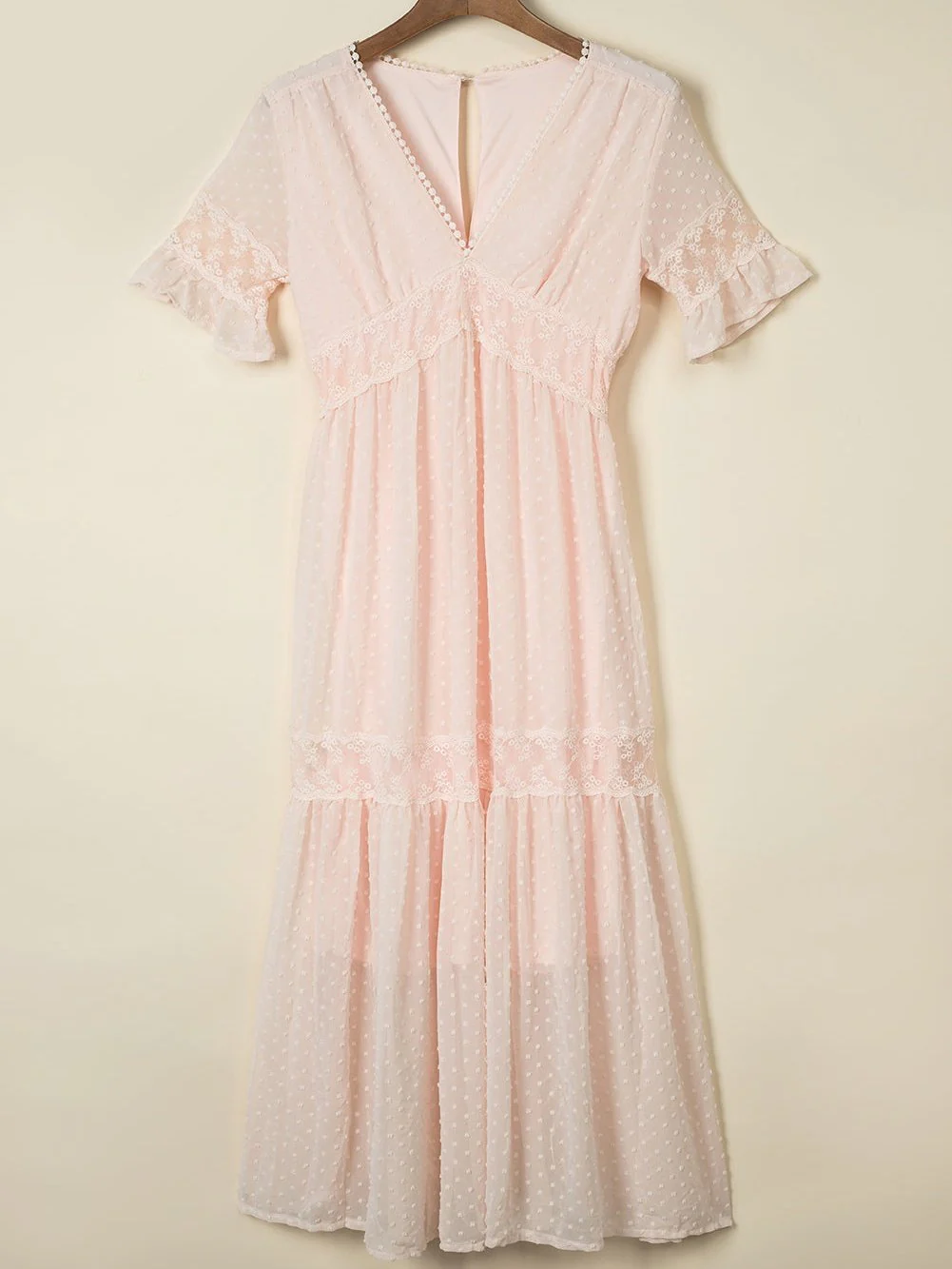 Solid Color V Neck Tie Half Sleeve Casual Dress