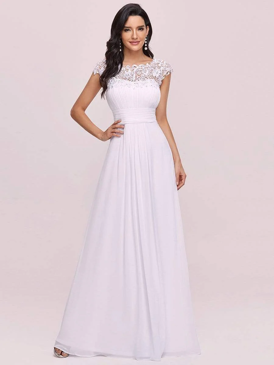 Elegant Maxi Long Lace Bridesmaid Dress with Cap Sleeve