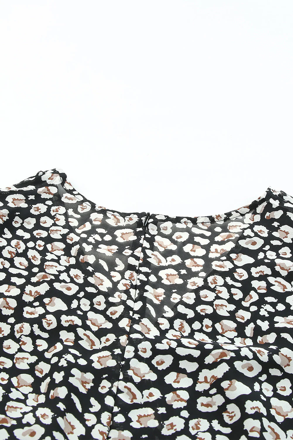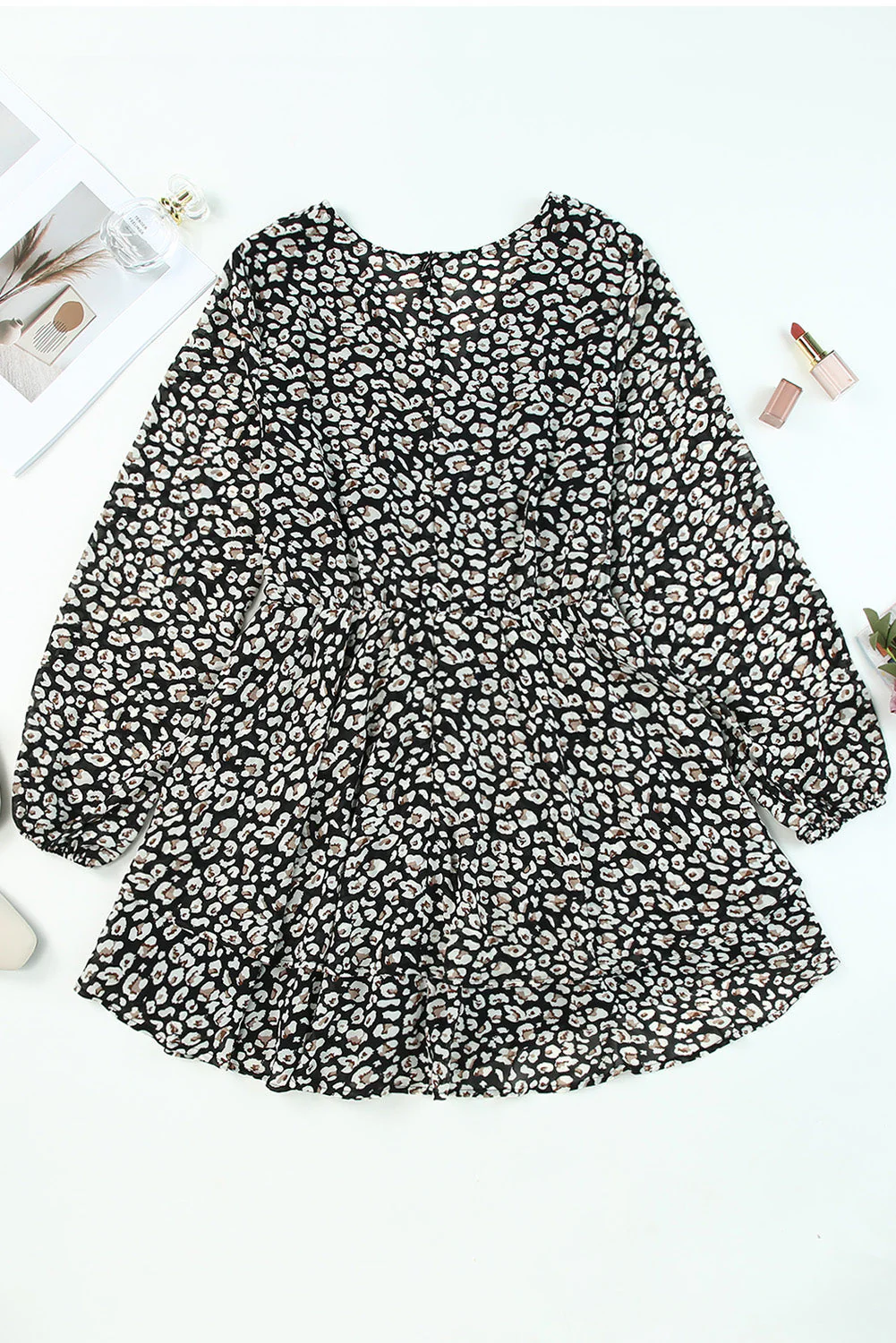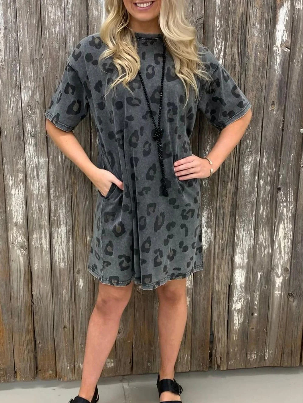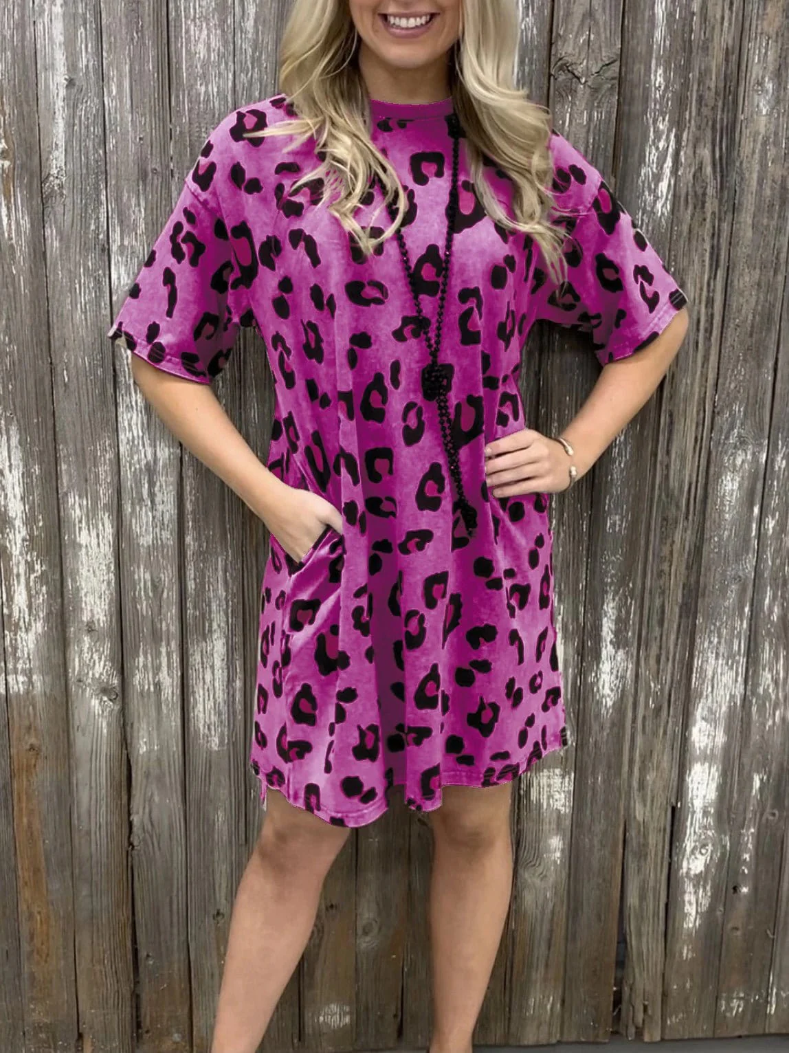 Loose Leopard Print Crew Neck Short Sleeve Dress