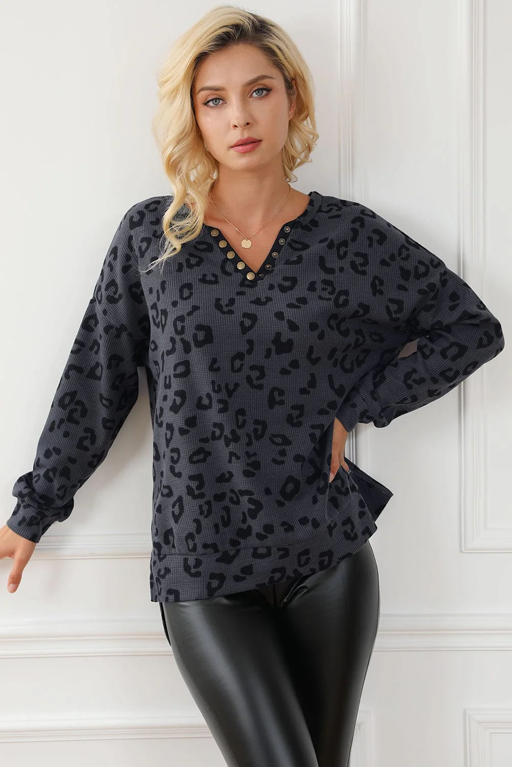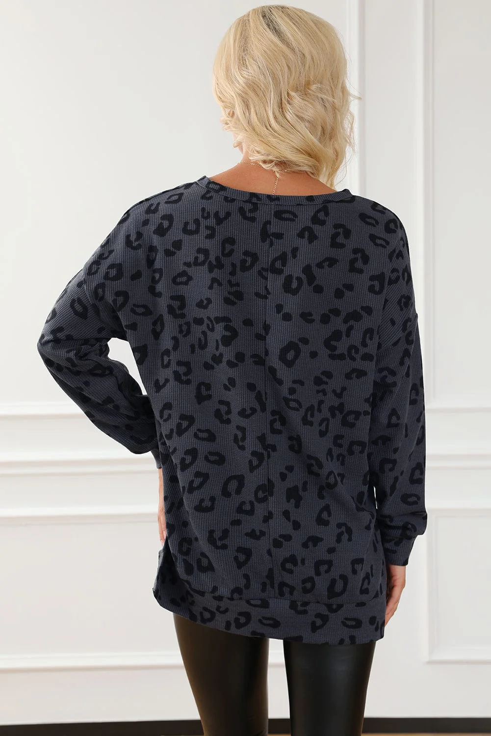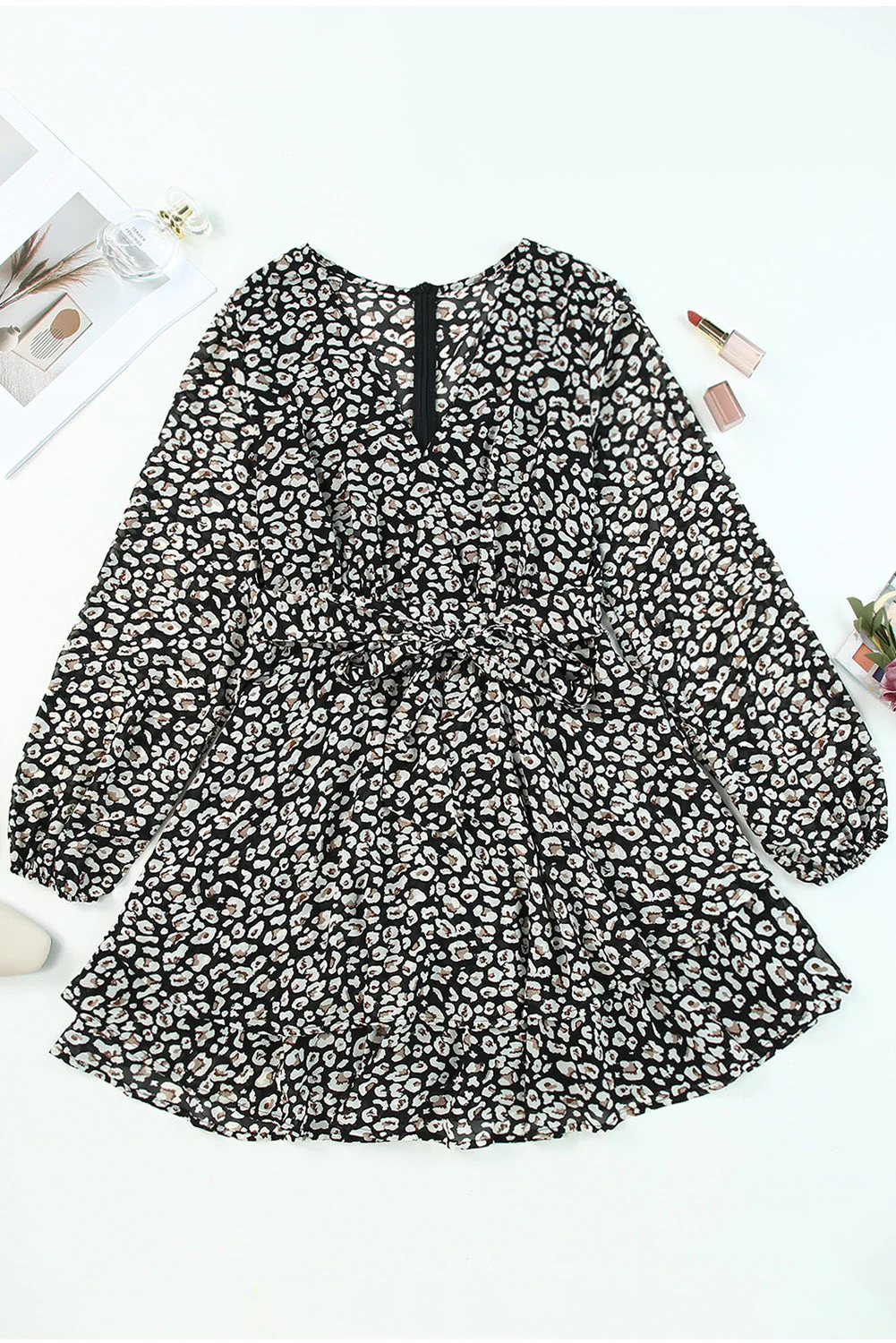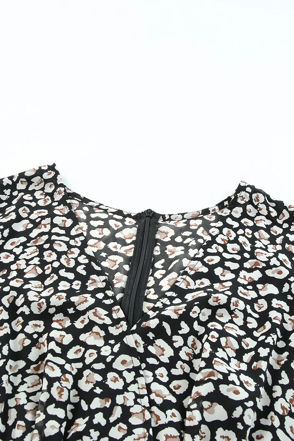 Loose Leopard Print Crew Neck Short Sleeve Dress