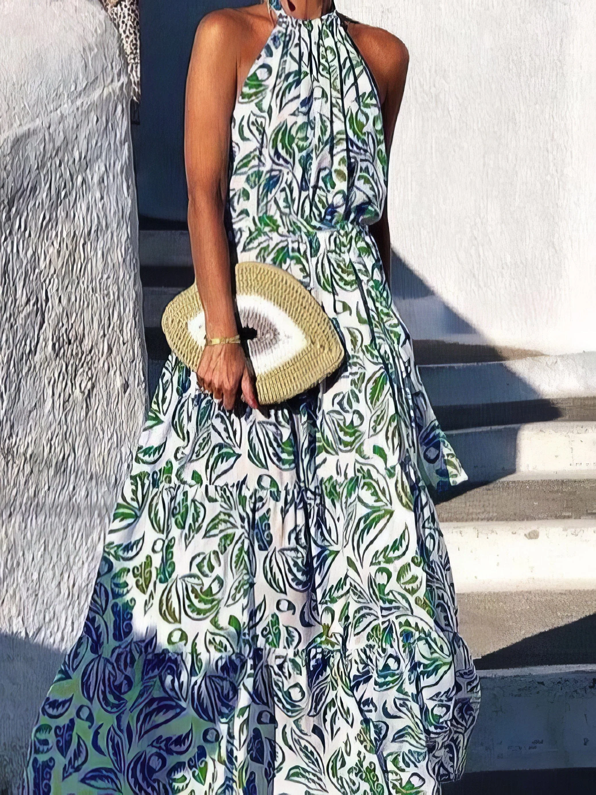 Casual Puff Sleeve Round Neck Bohemian Dress