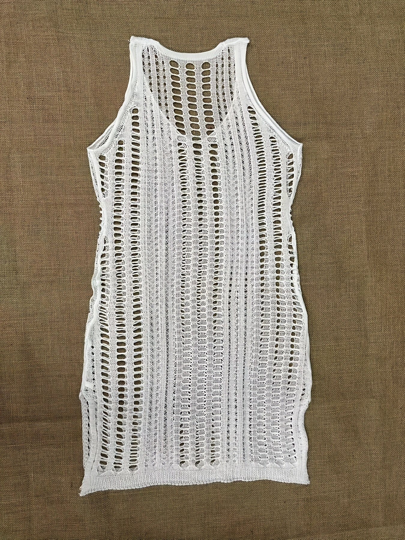 Solid V Neck Hollow Out Split Swim Robe Beach Cover Up Mini Dress
