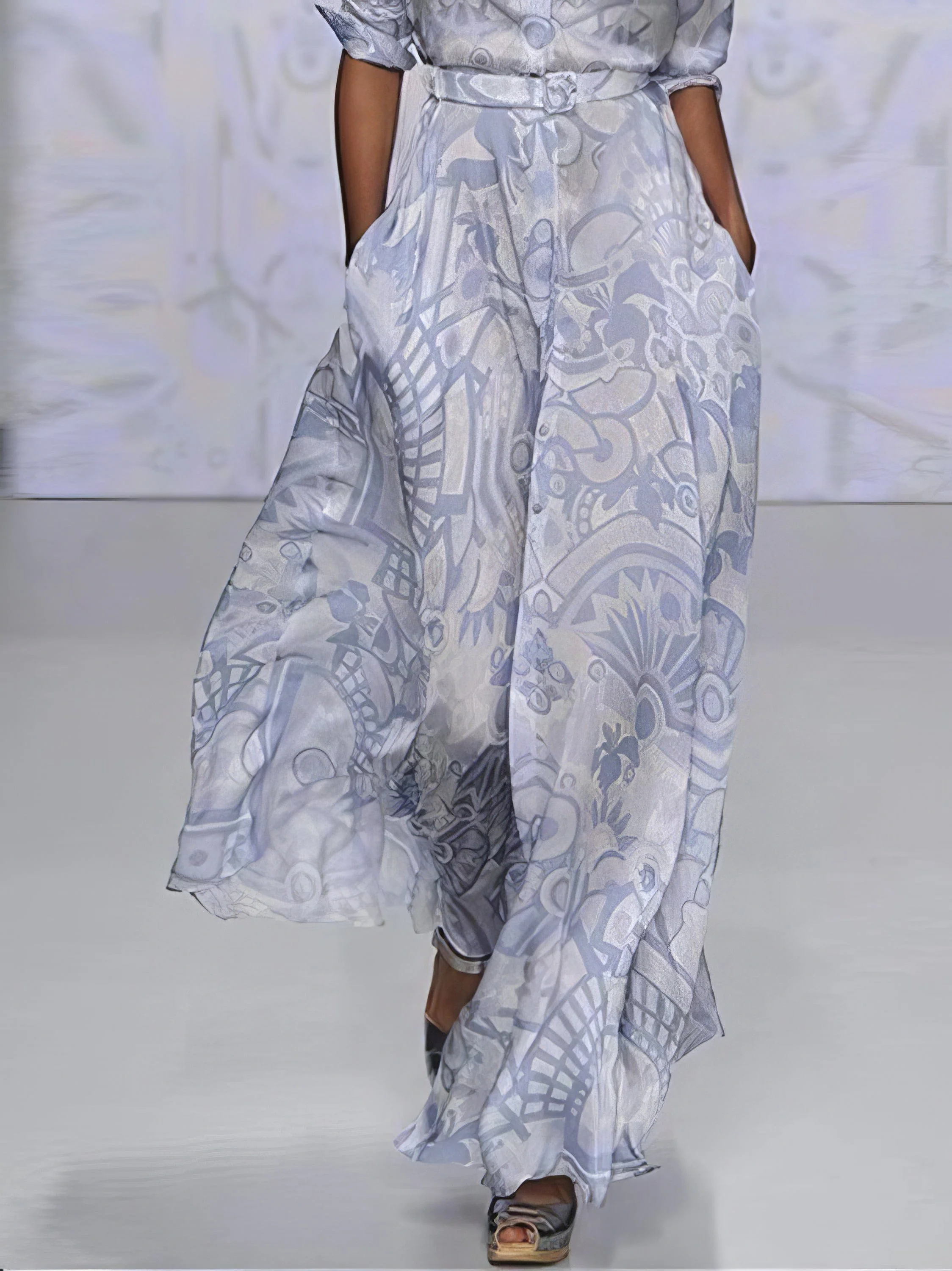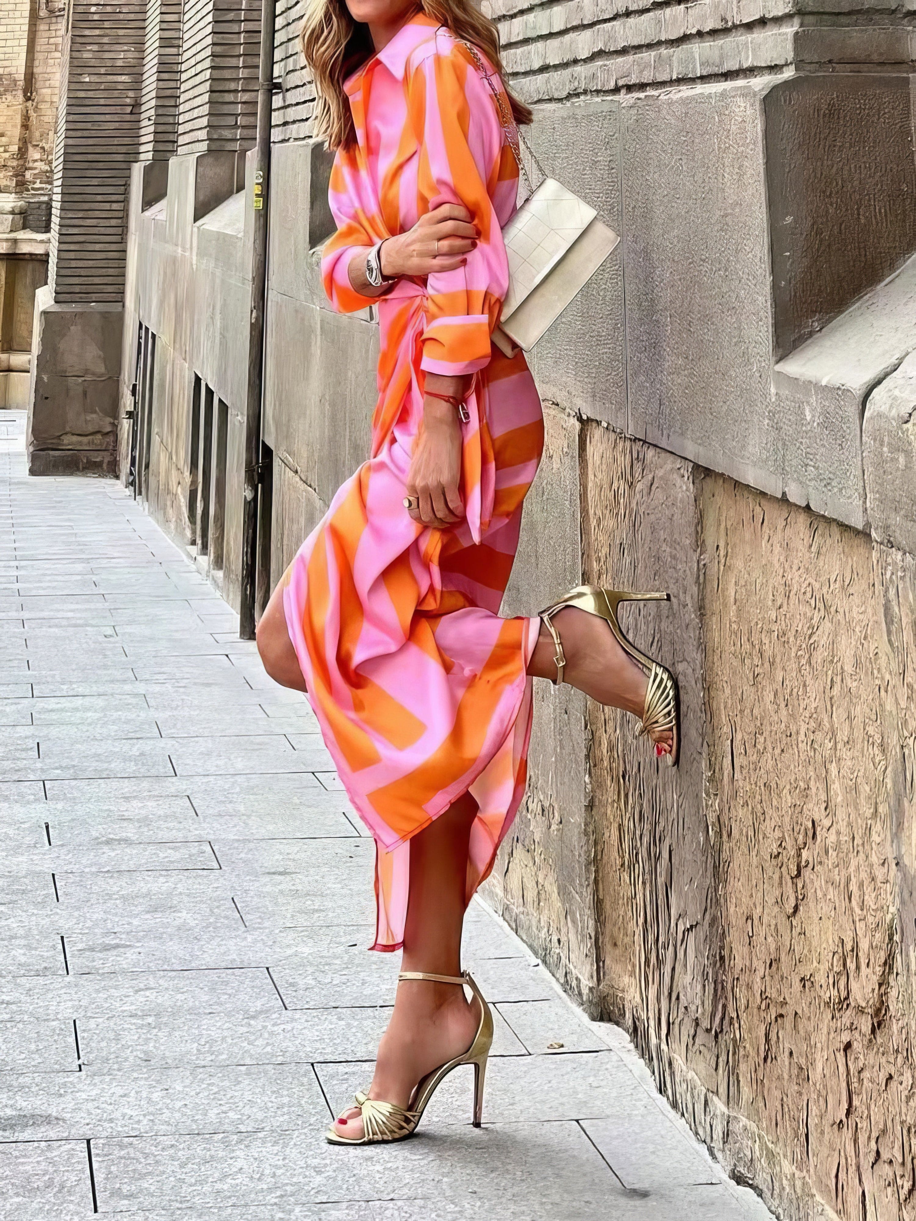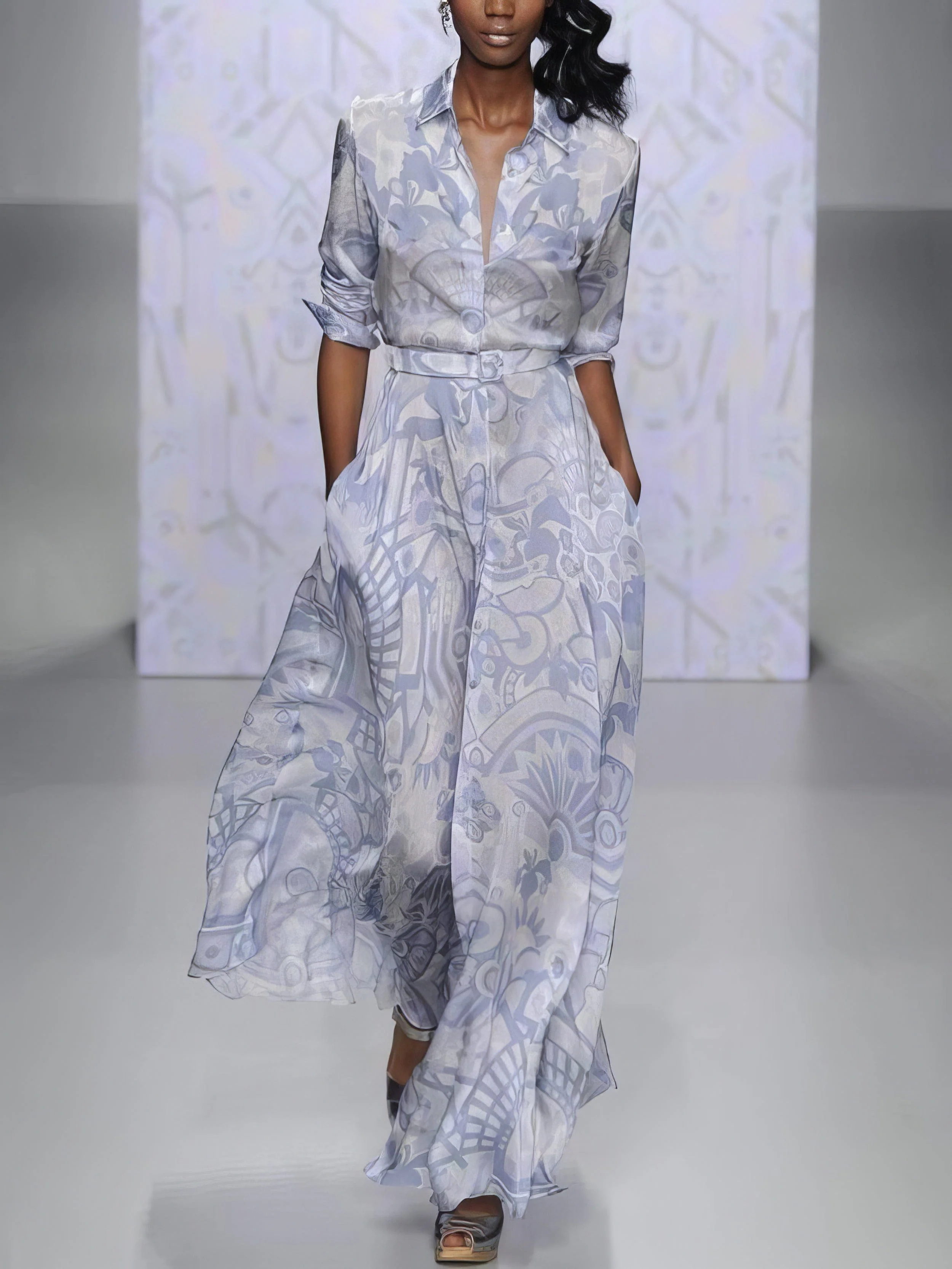 Fashion Long-sleeved Print Slim Maxi Shirt Dress