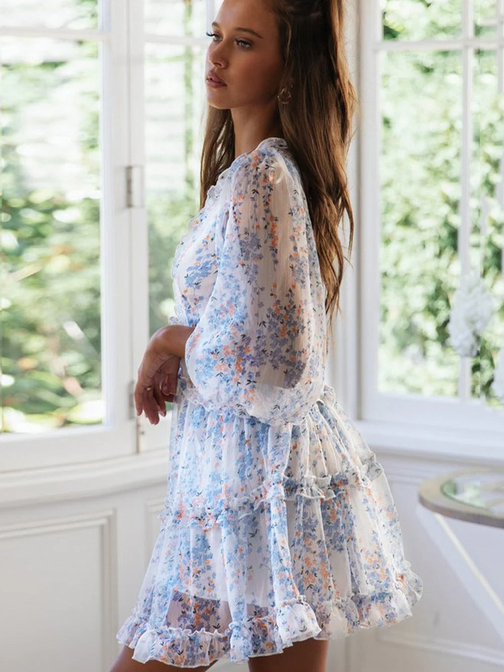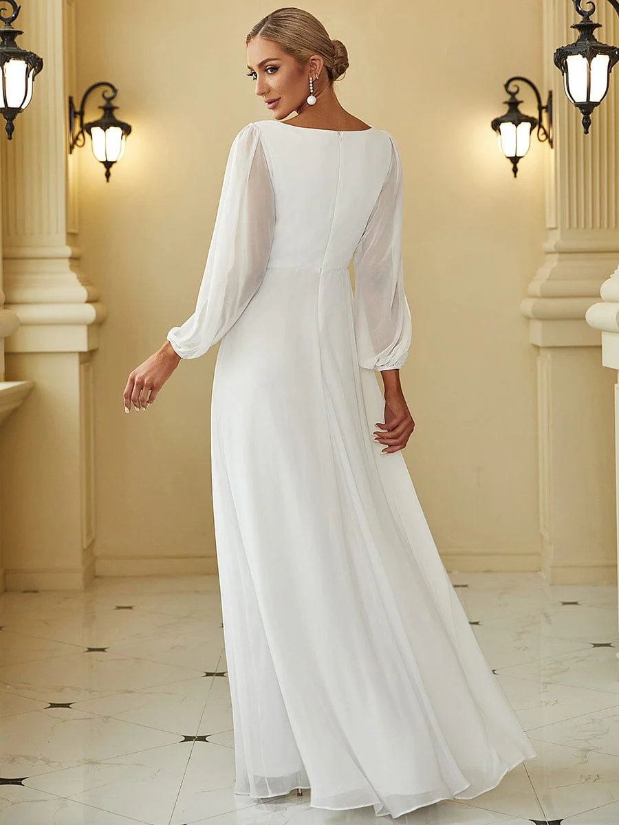Elegant Chiffon V-Neckline Long Sleeve Formal Evening Dress