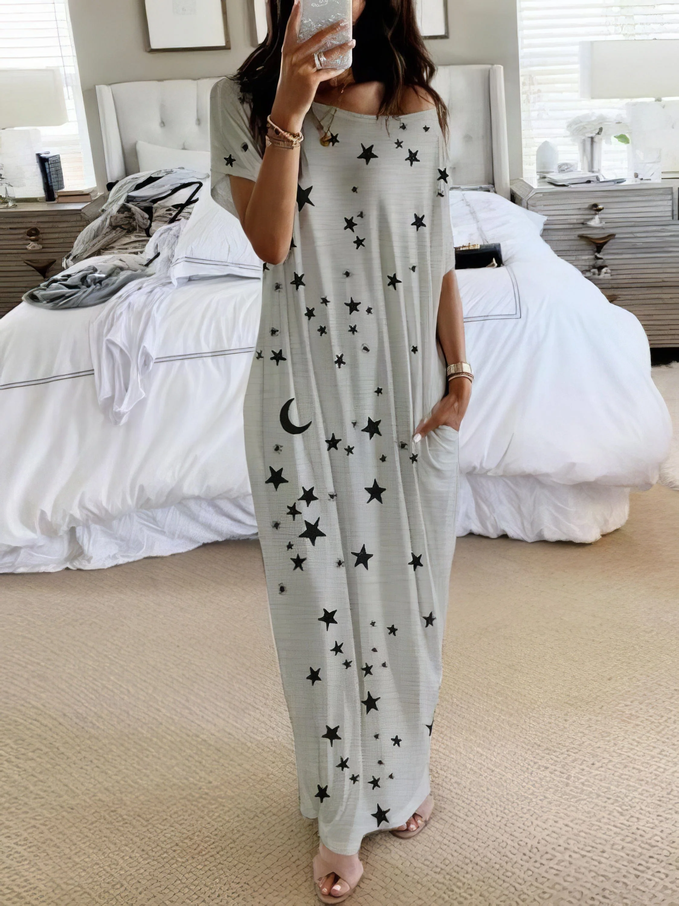 Starry Night Short Sleeve Maxi Dress