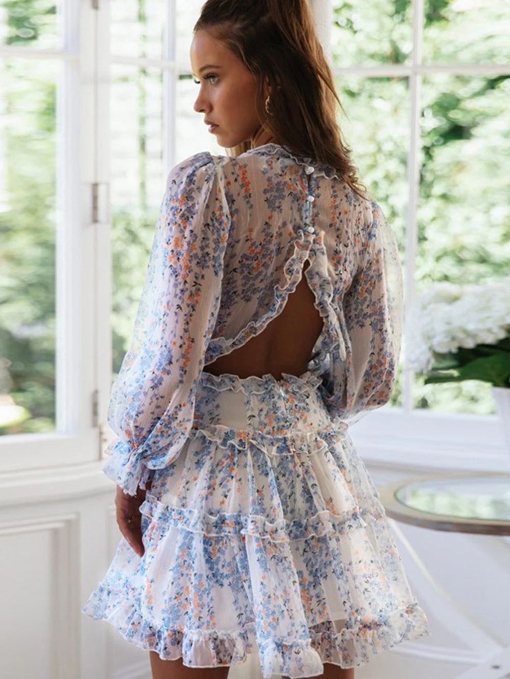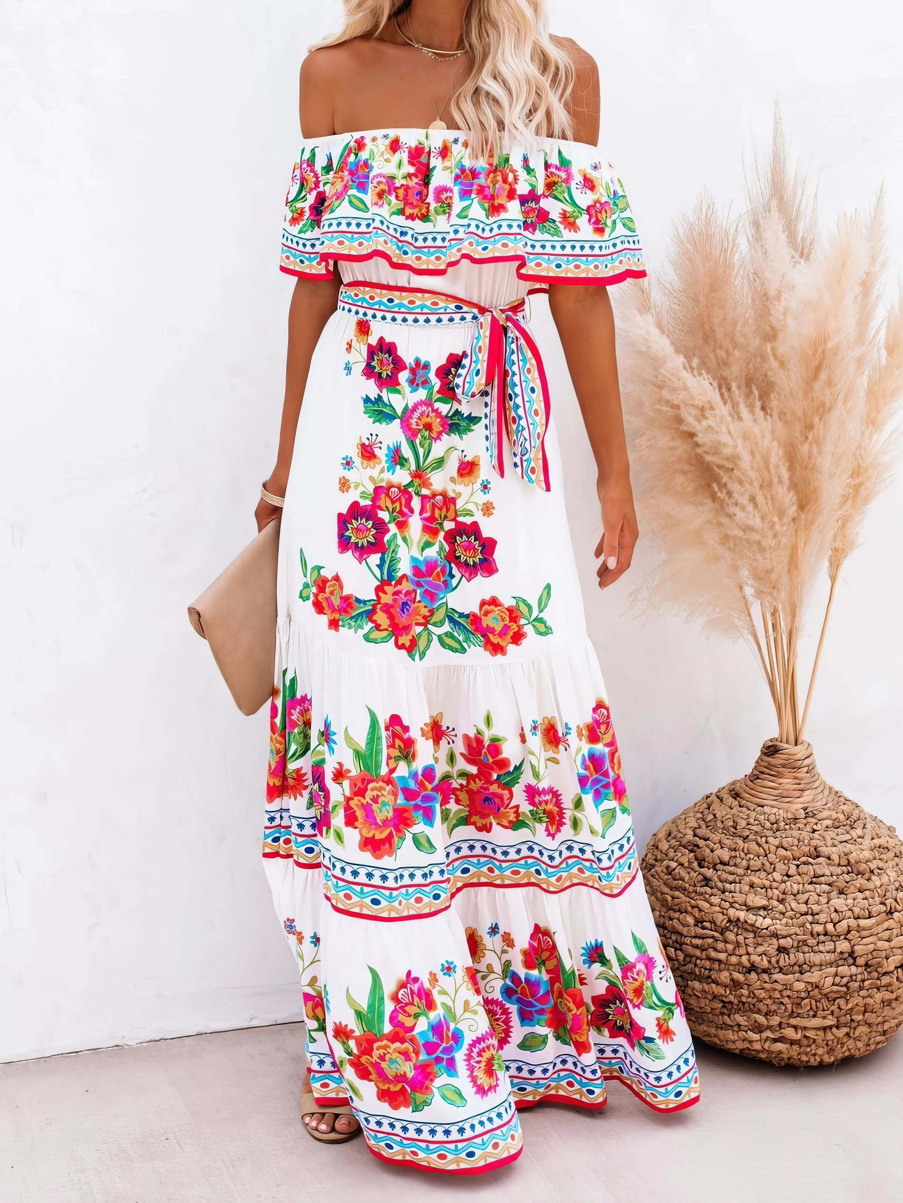 Floral Print One-shoulder Mopping Dress