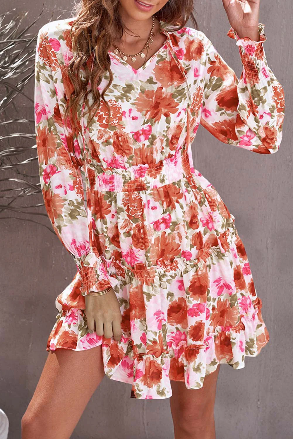 Casual Print Knee Long Sleeve Tunic Dresses