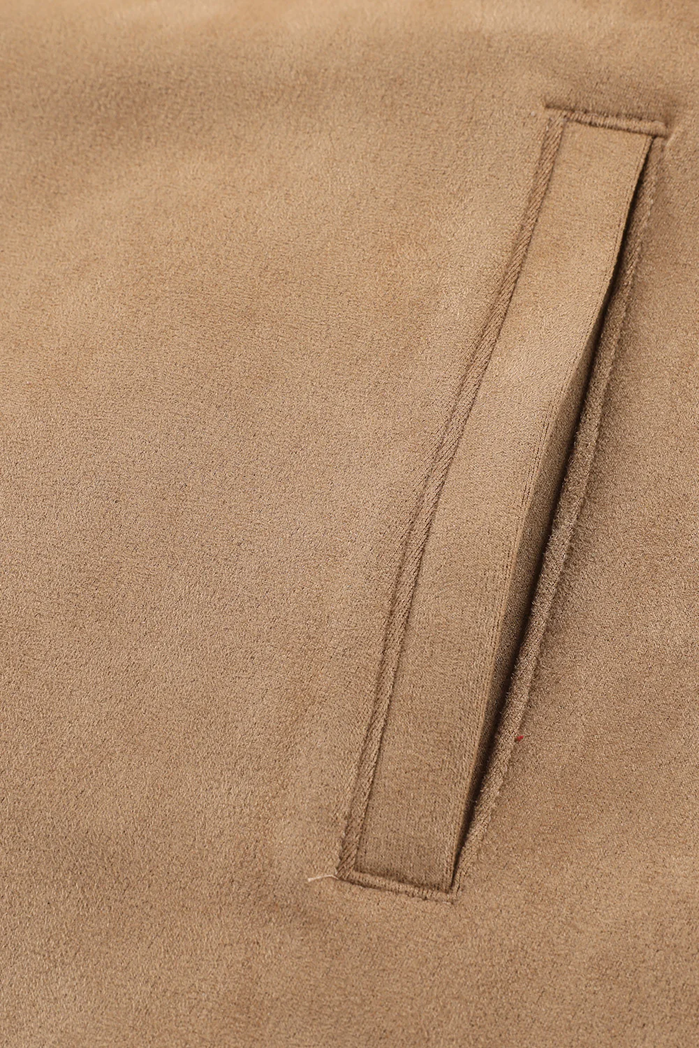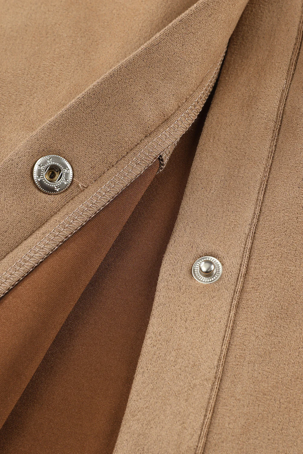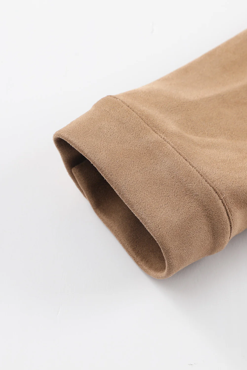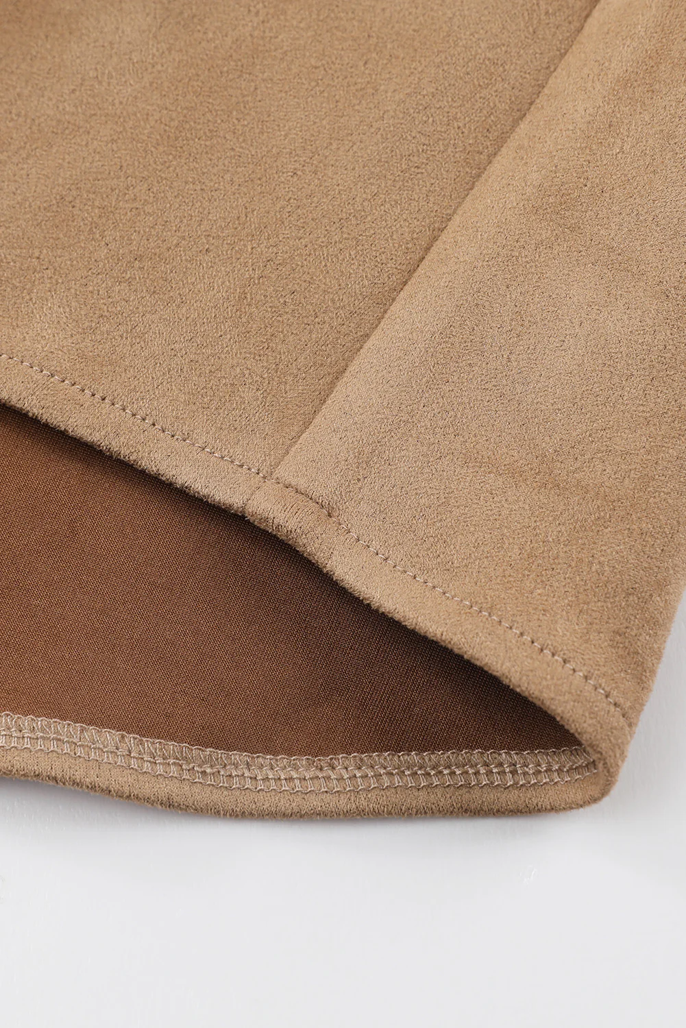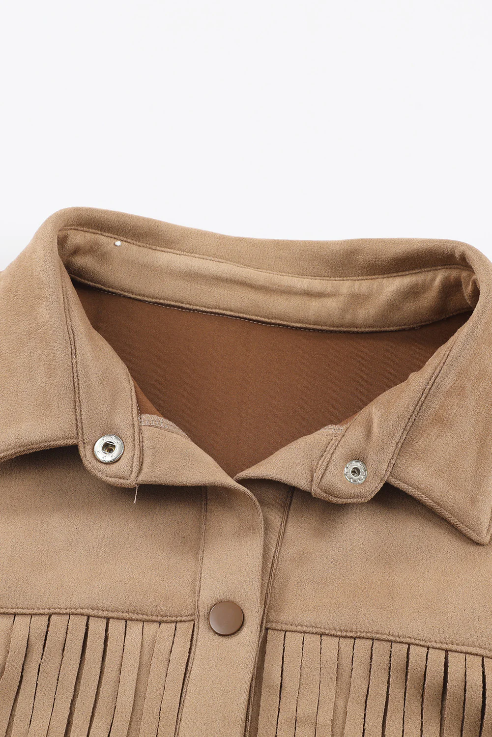 Khaki Suede Shacket with Fringe Detail for Plus Size Women