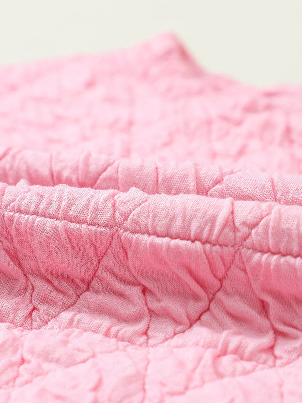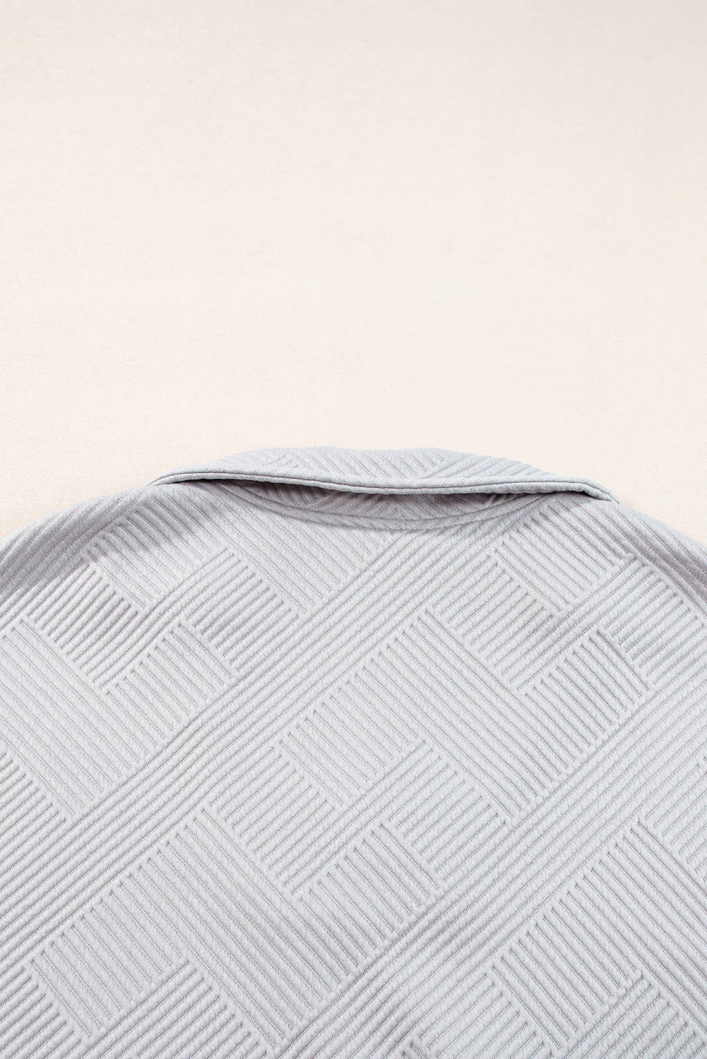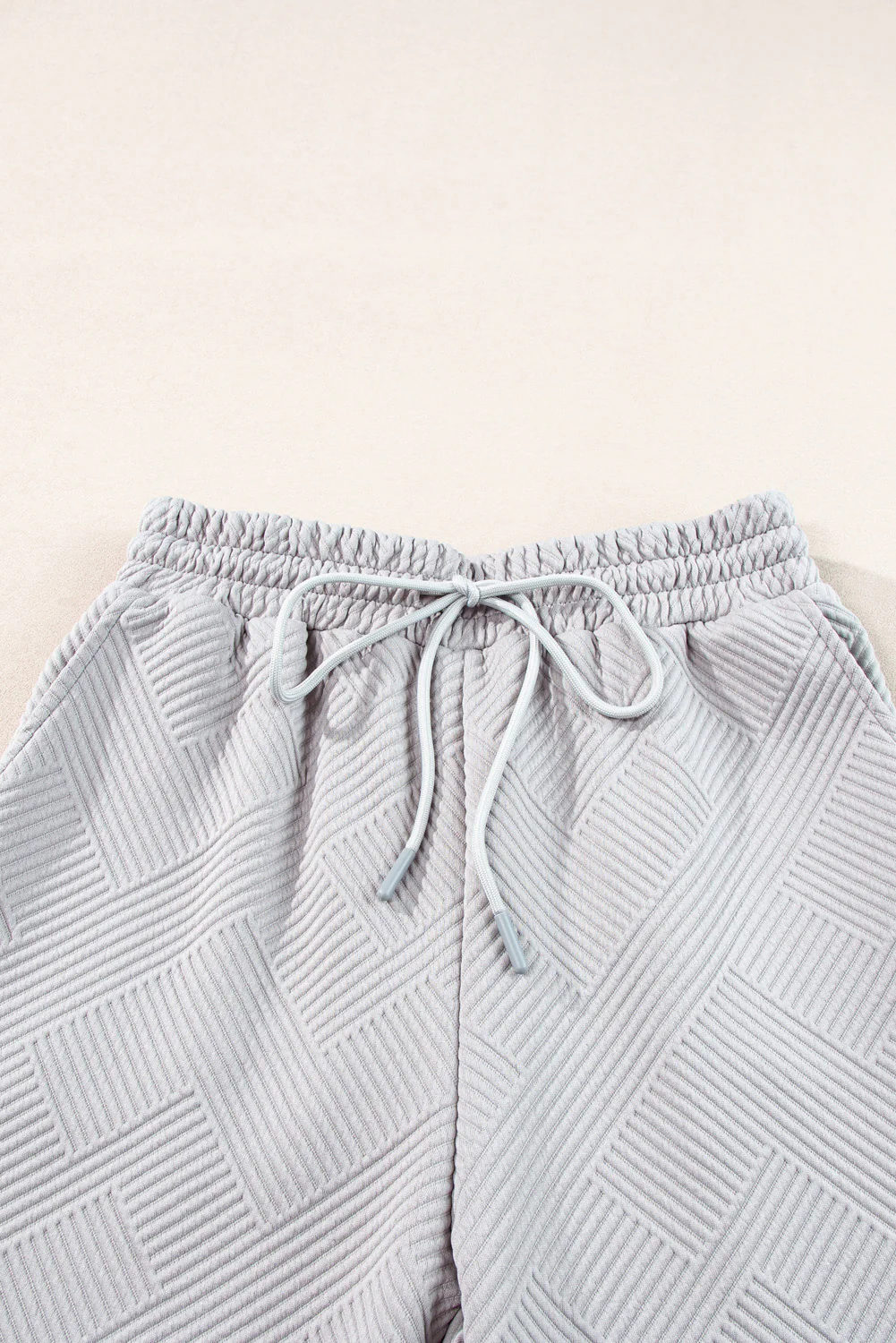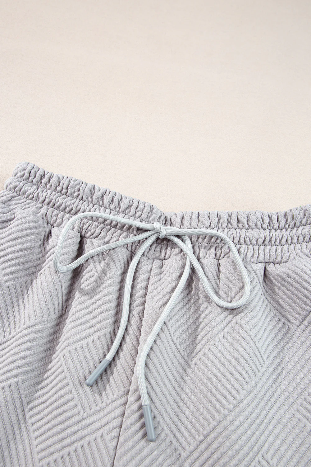 Light Grey Solid Textured Collared V Neck Top and Wide Leg Pants Set