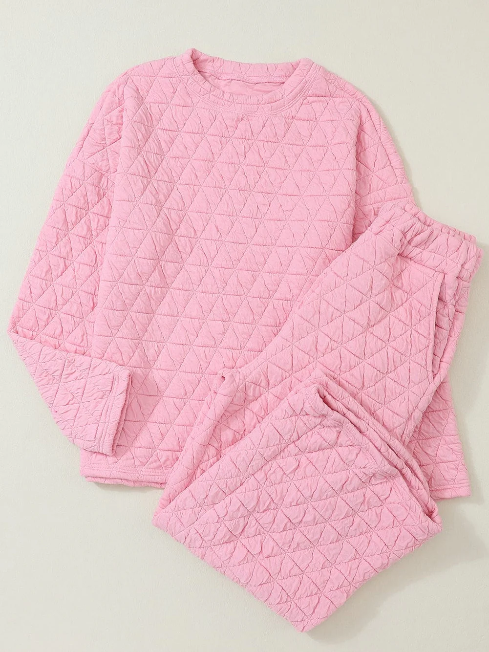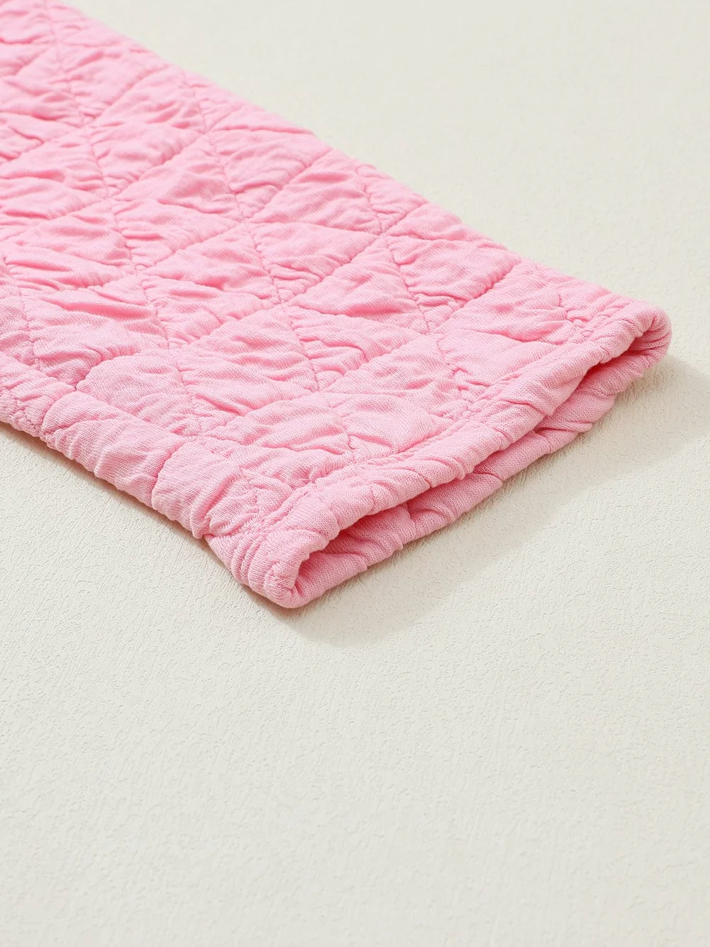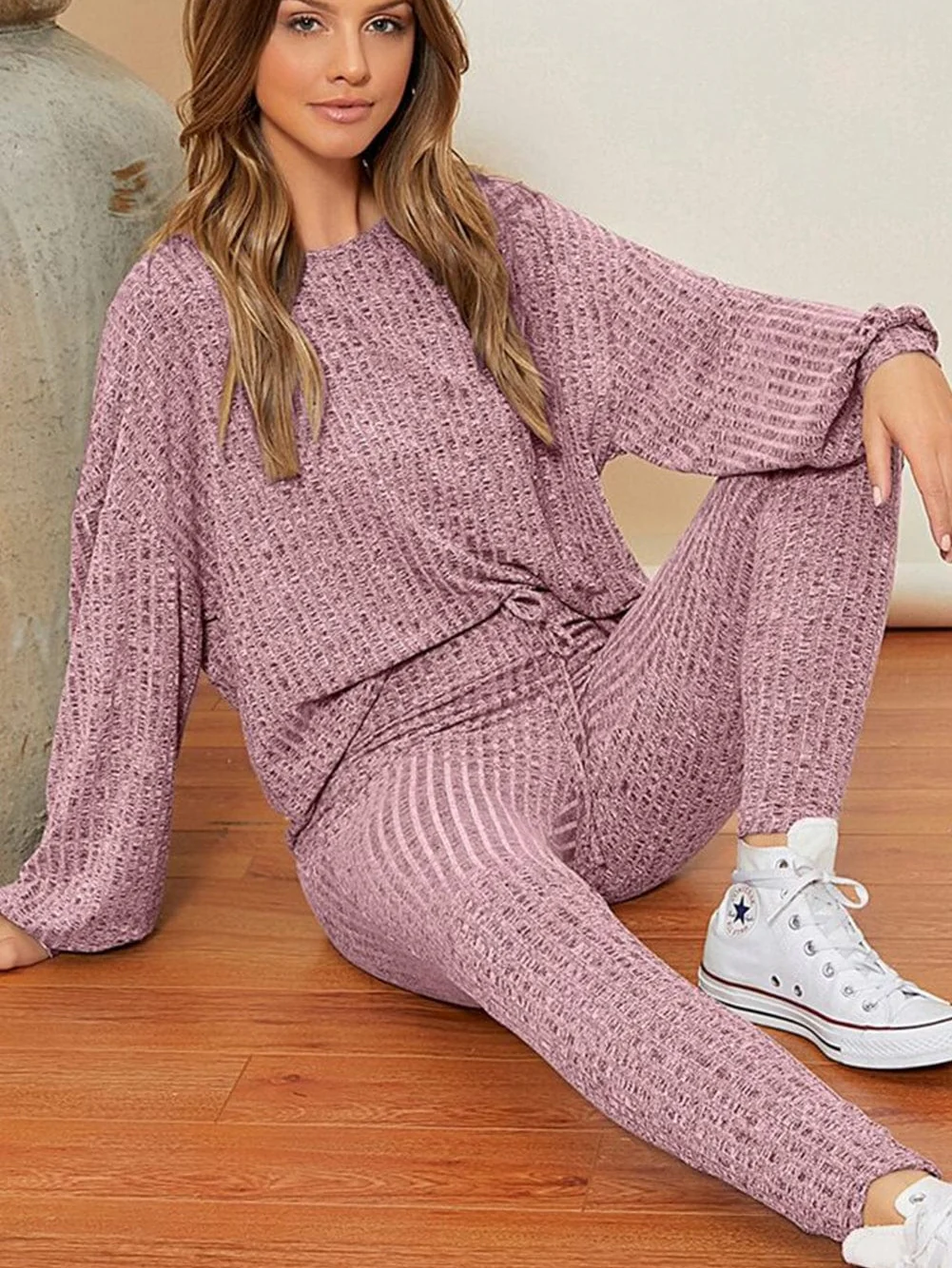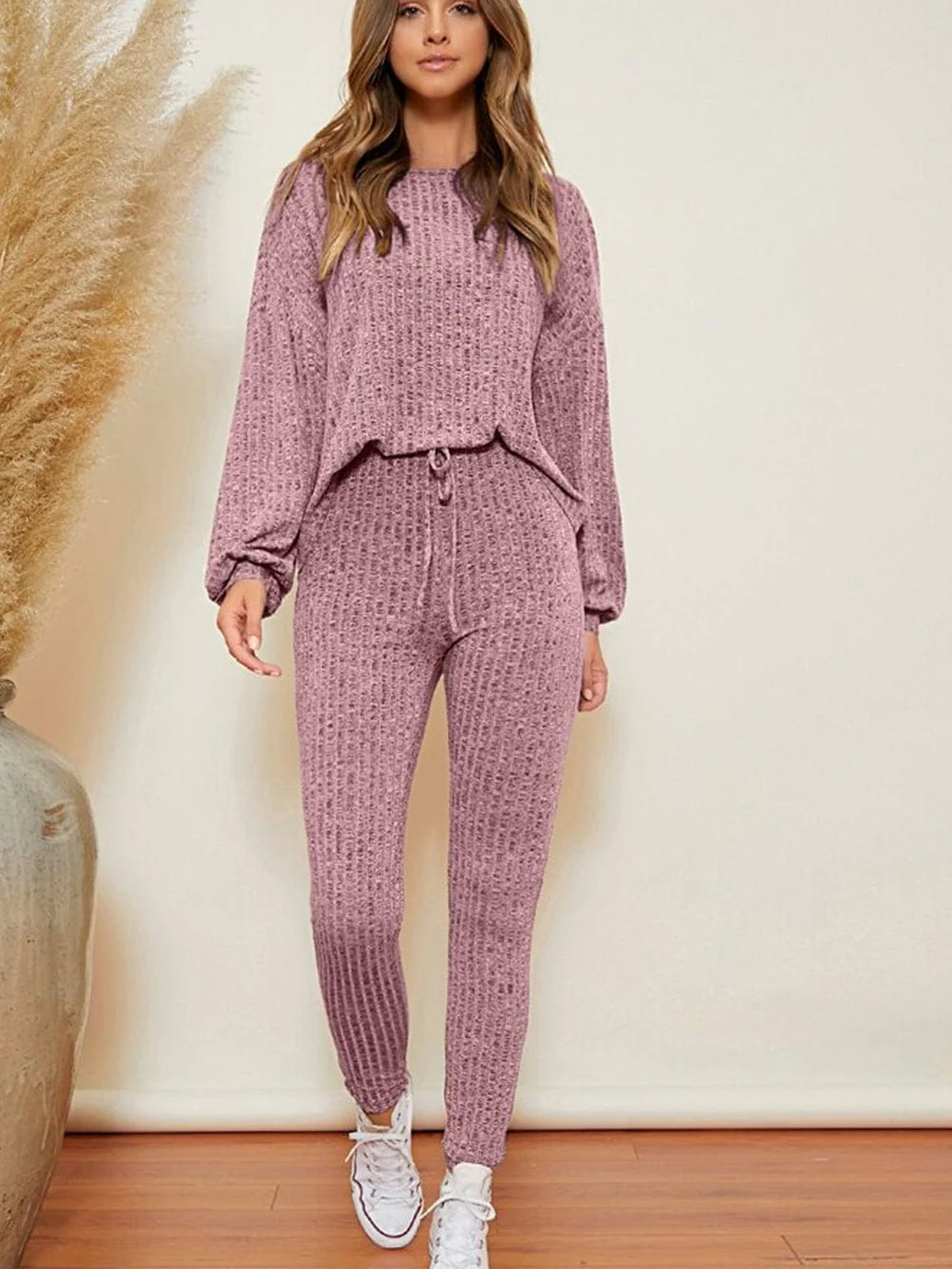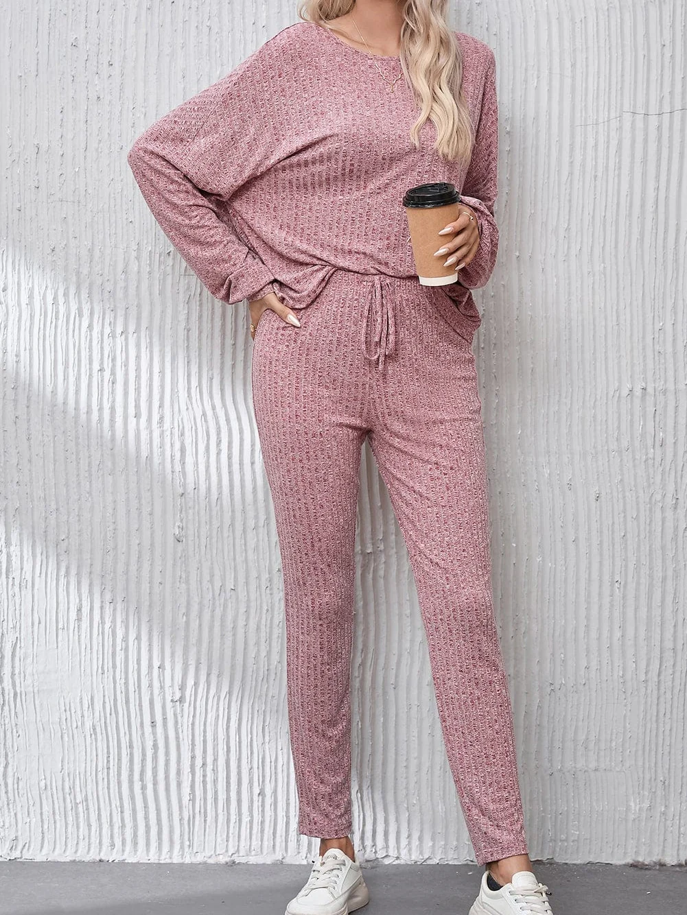 Peach Blossom Ribbed Drop Shoulder Top with Knot Waist Leggings Ensemble