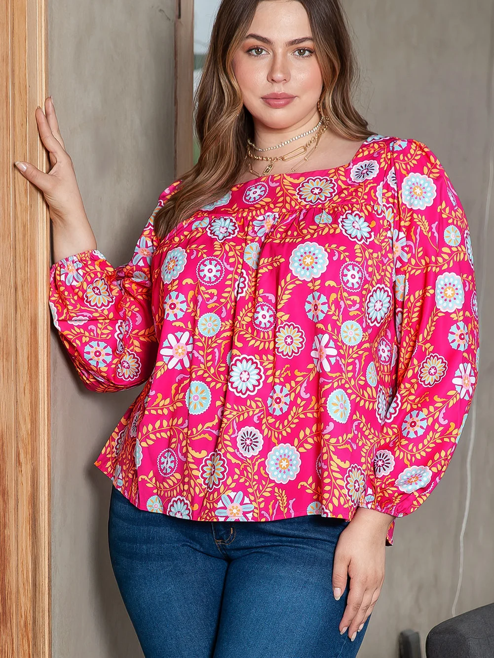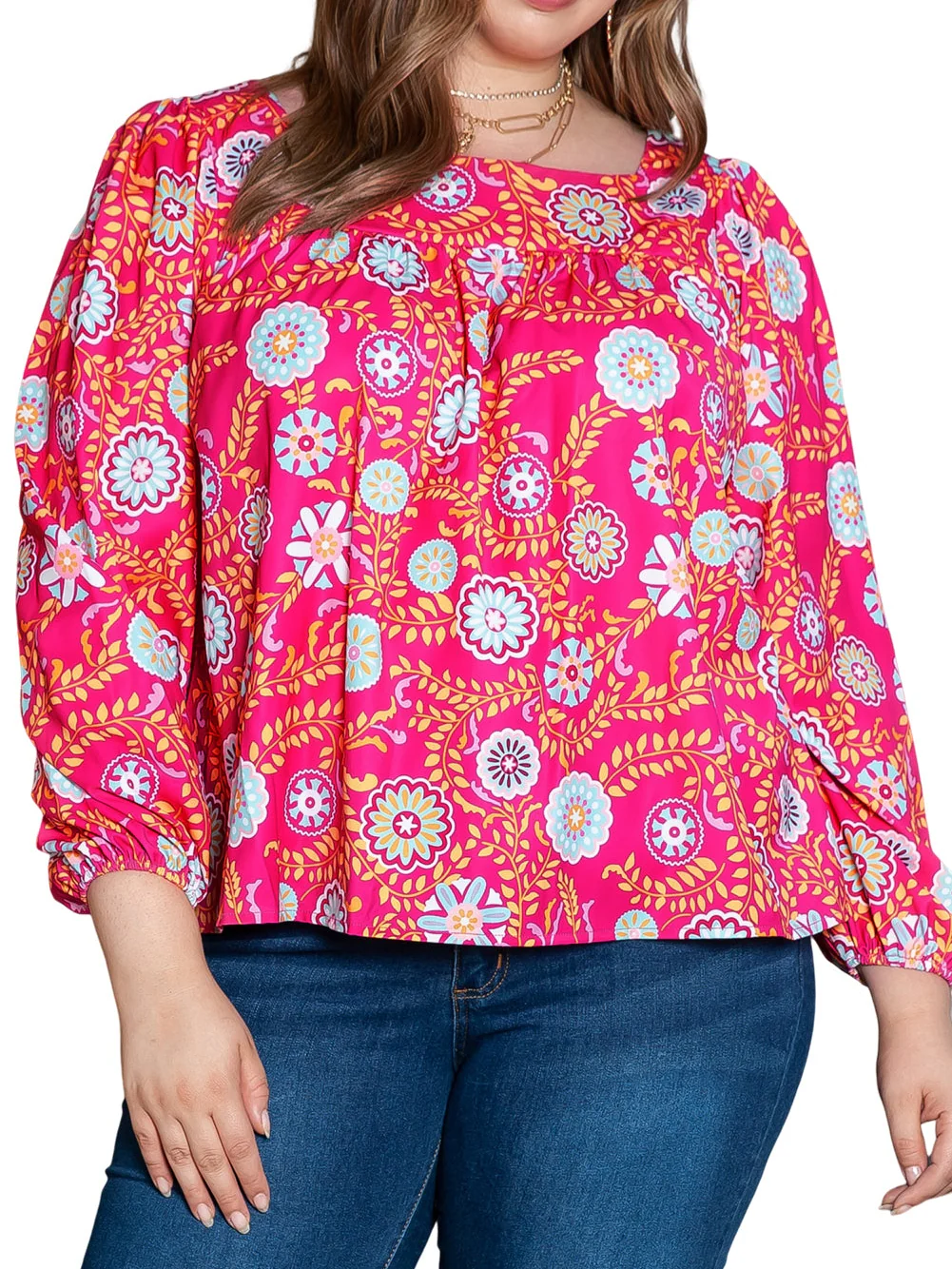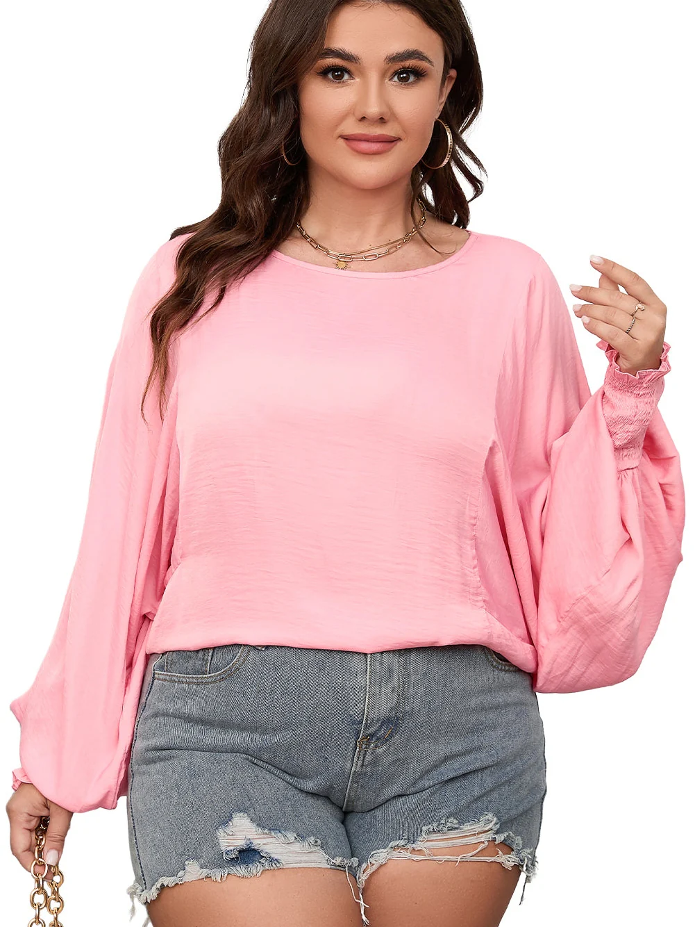 Pink Satin Dolman Sleeve Plus Size Flowy Top