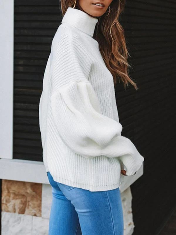 Turtleneck Solid Long Sleeve Knitted Sweater