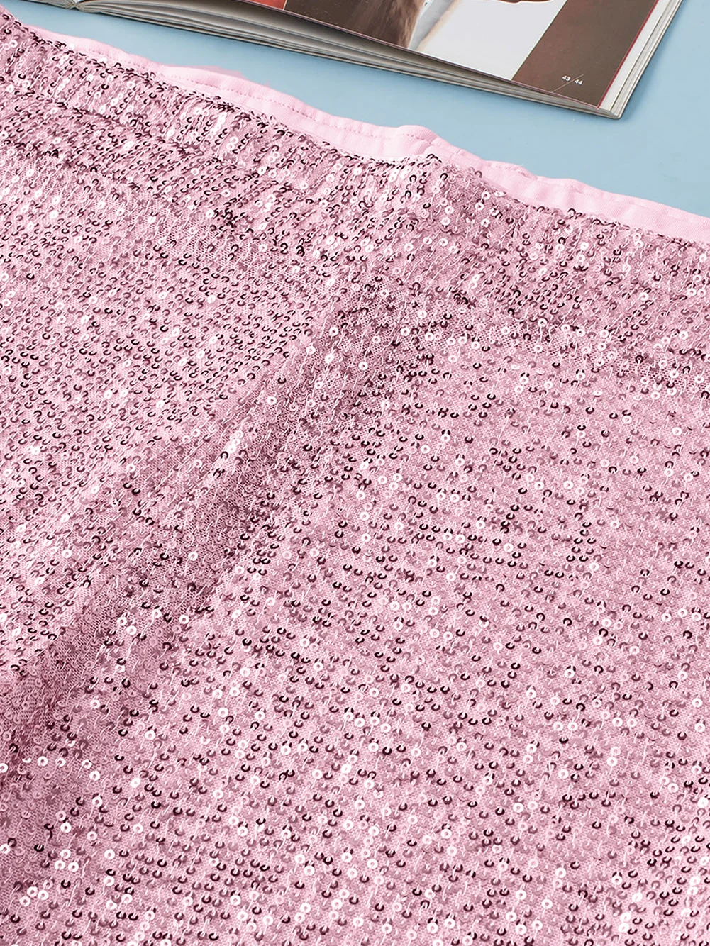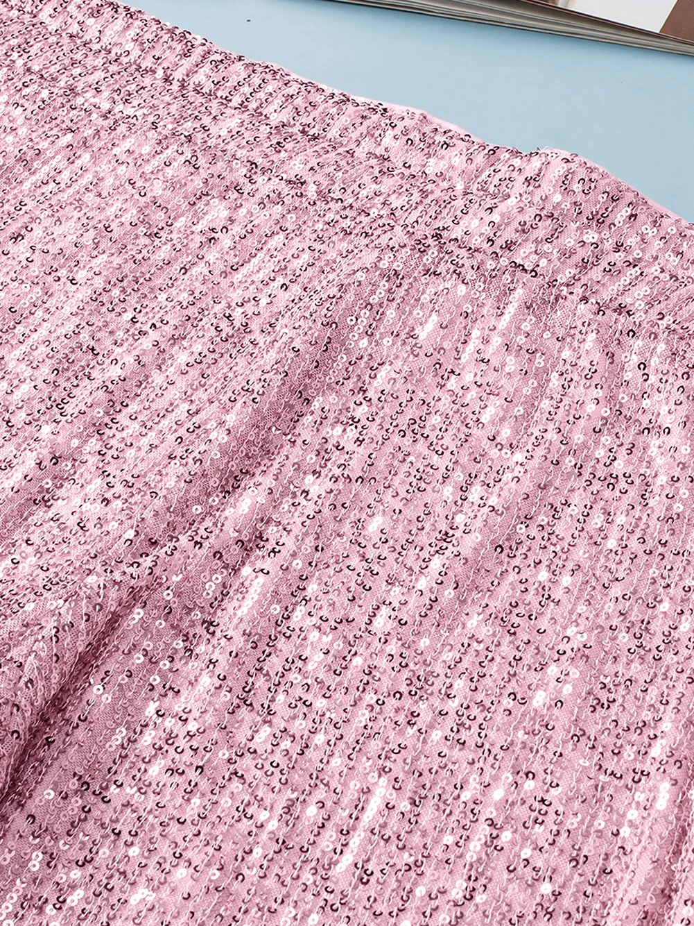 Pink Sparkling Sequin Plus Size Flare Trousers