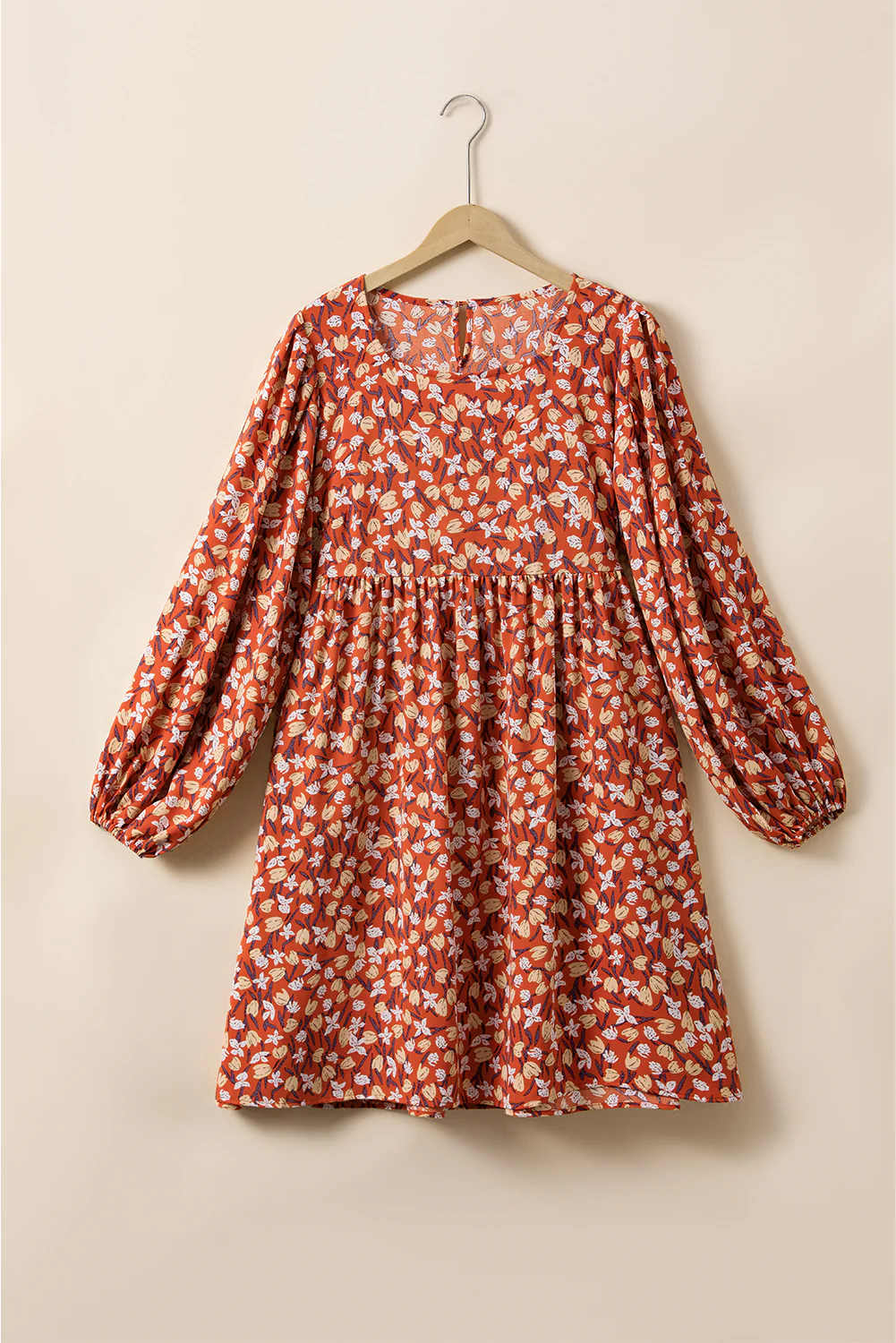 Chestnut Plus Size Suede Square Neck Balloon Sleeve Dress
