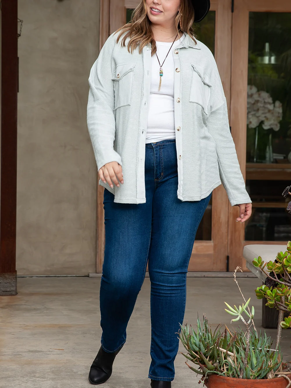 Gray Exposed Seam Flap Pocket Plus Size Shacket