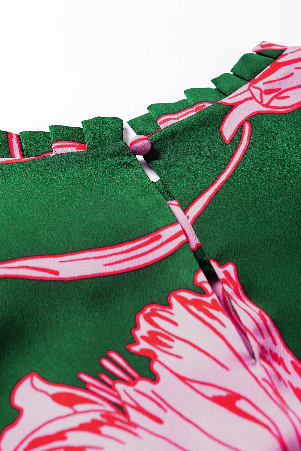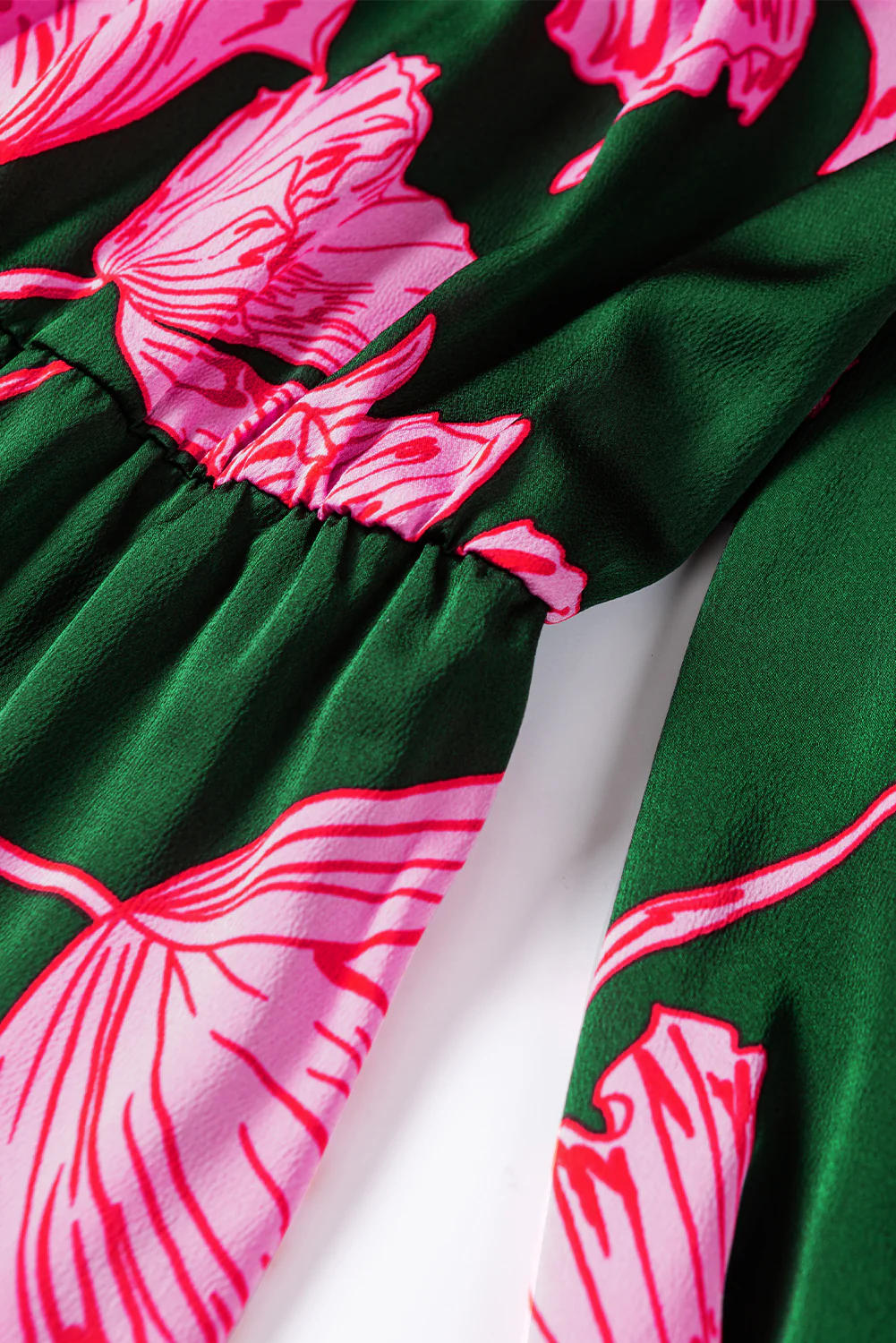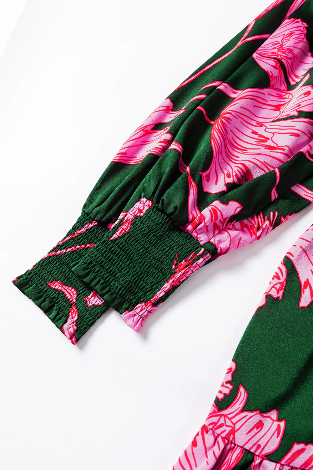 Green Plus Size Shirred Bracelet Sleeve Ruffled Floral Dress