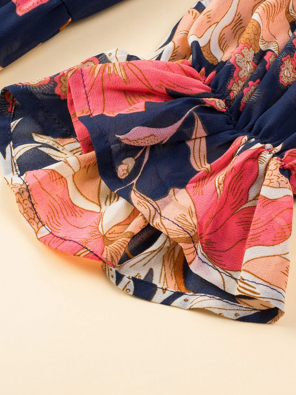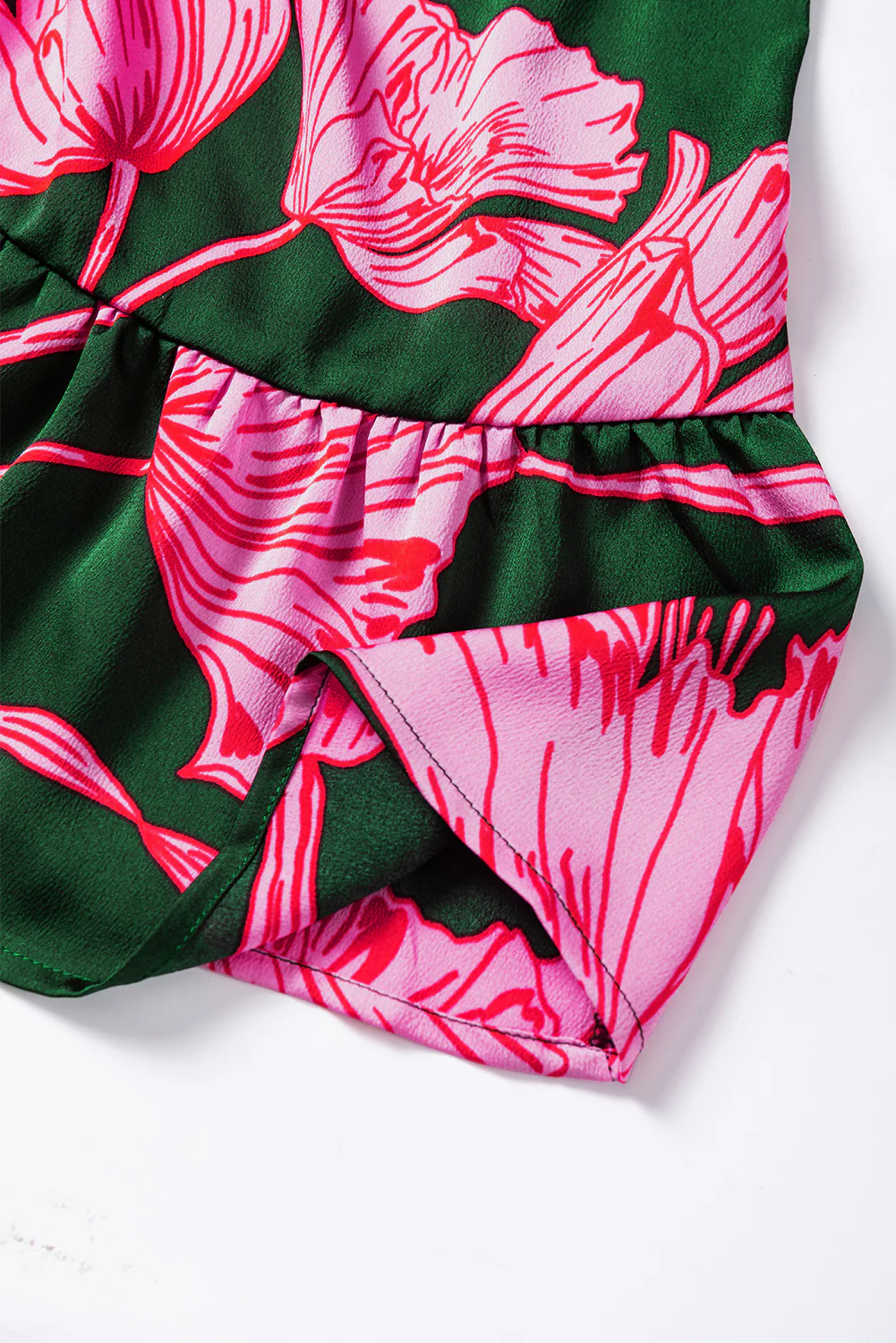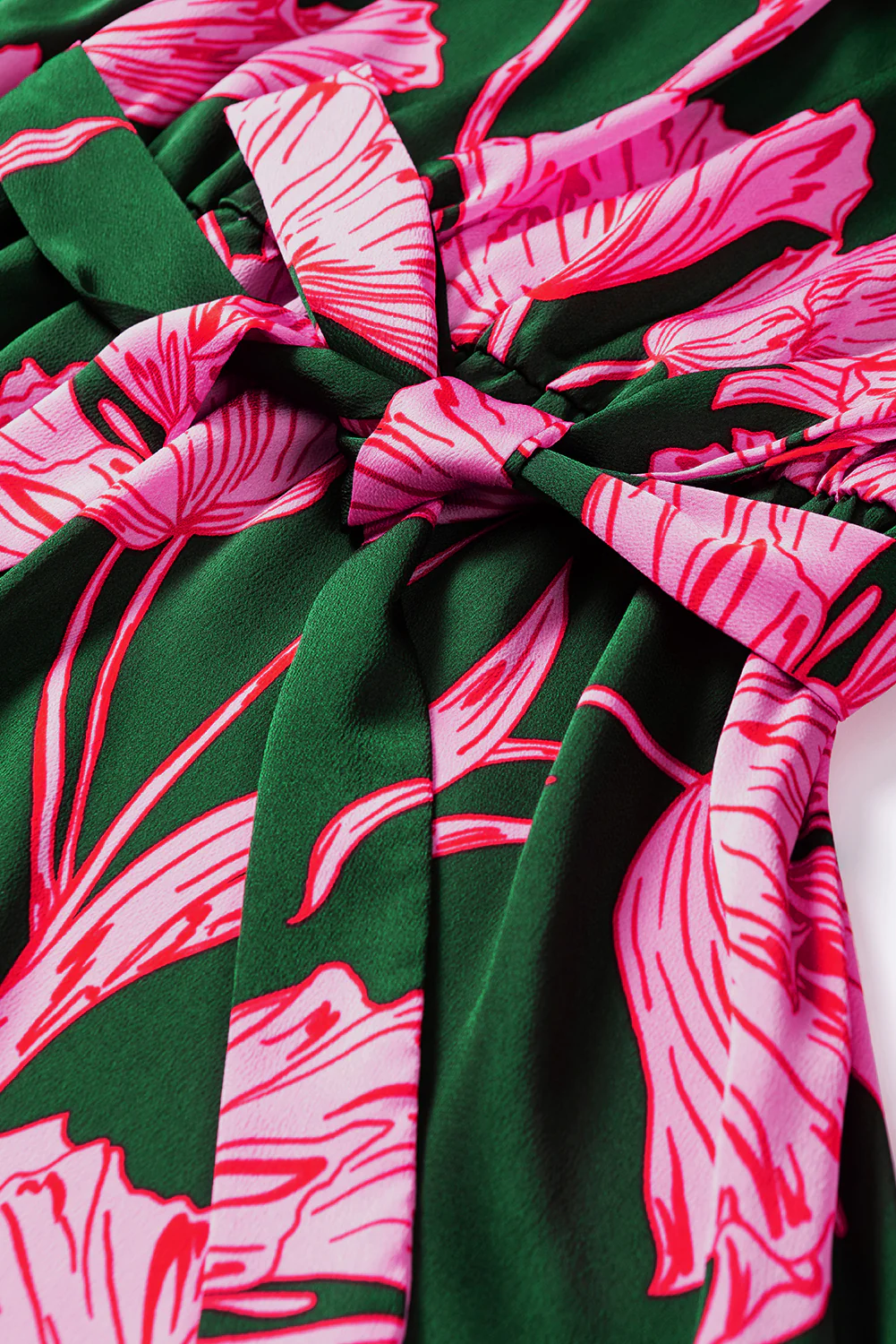 Green Plus Size Shirred Bracelet Sleeve Ruffled Floral Dress