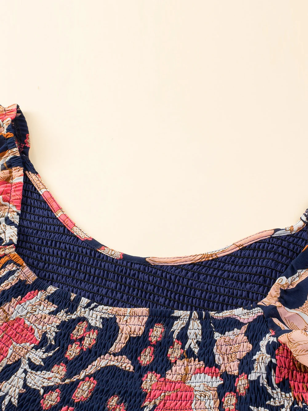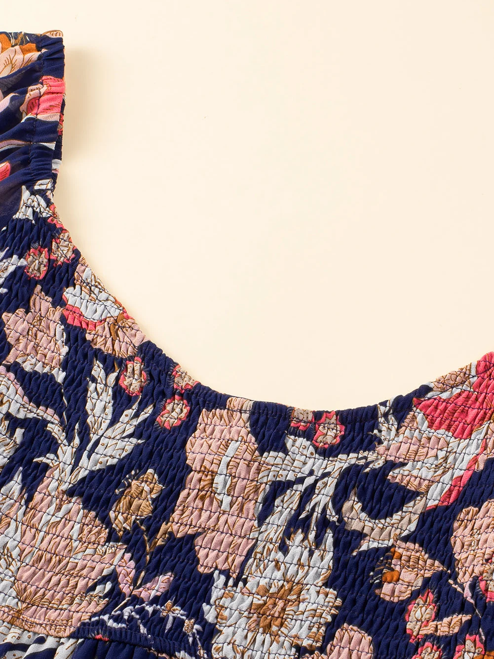 Black Floral Flounce Sleeve Smocked Ruffled Plus Size Dress