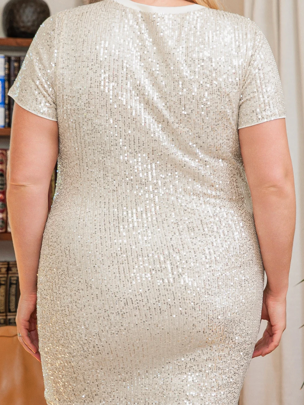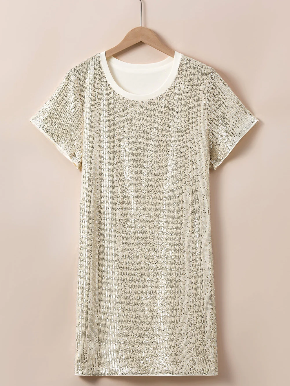 Light Pink Plus Size Sequin Short Sleeve T-shirt Dress