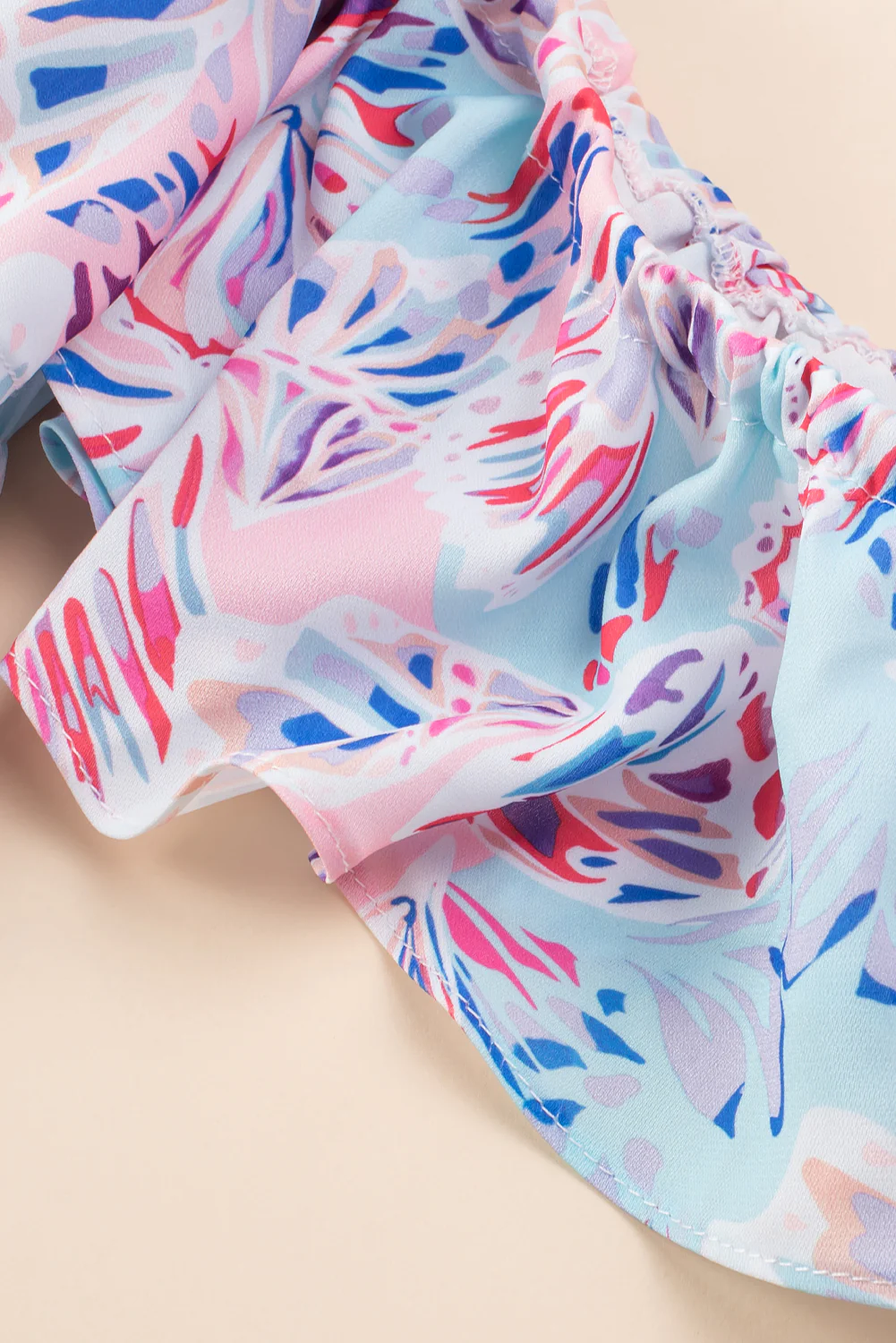 Multicolor Plus Size Mixed Print Split Neck Blouse