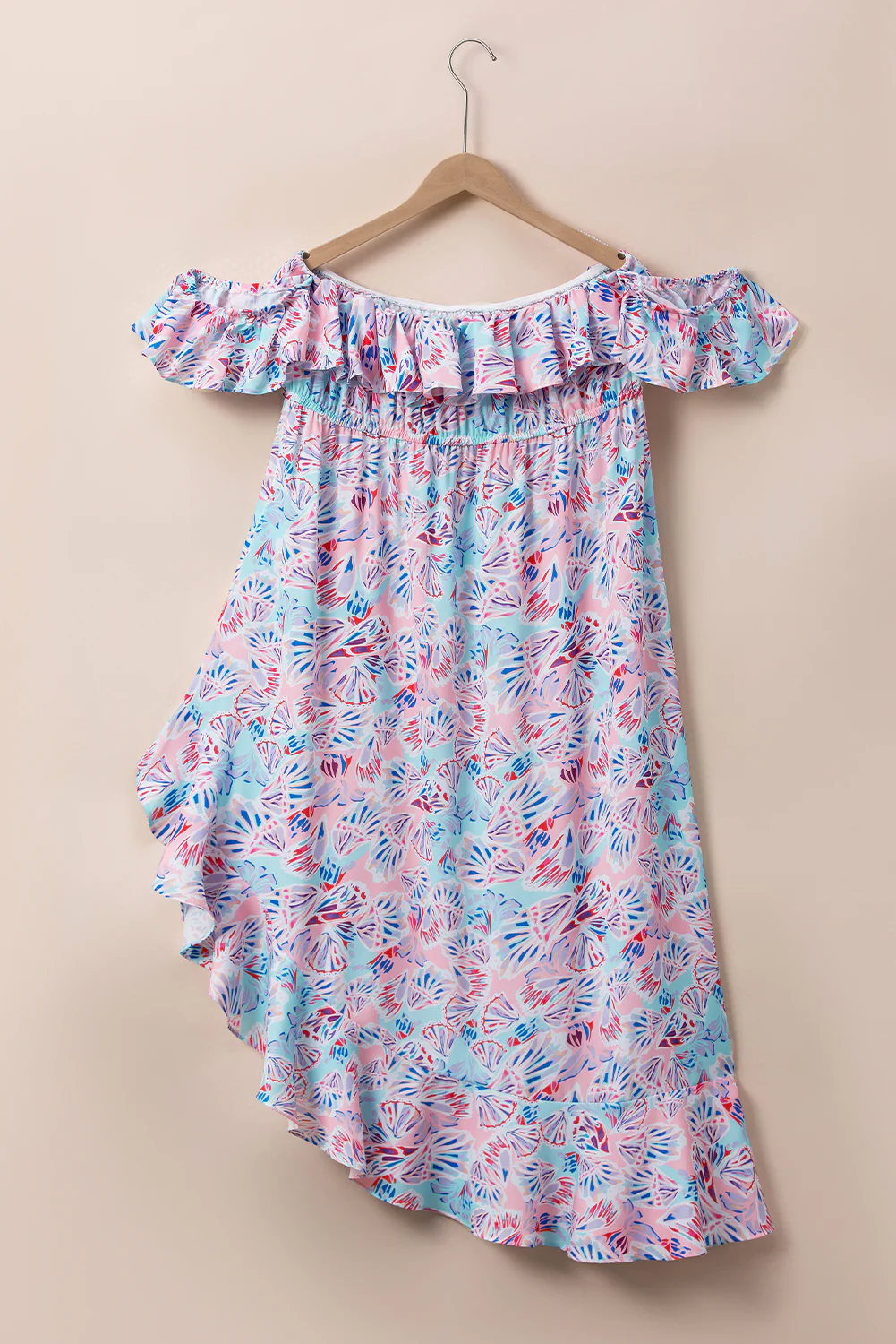 Pink Sea Shell Print Ruffled Sleeve Plus Size Maxi Dress