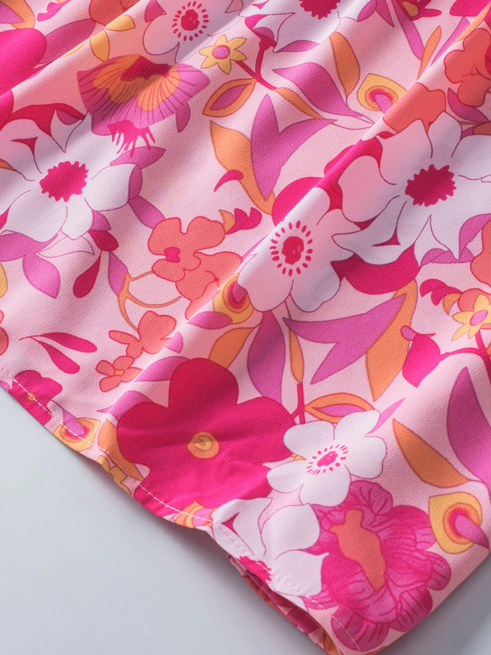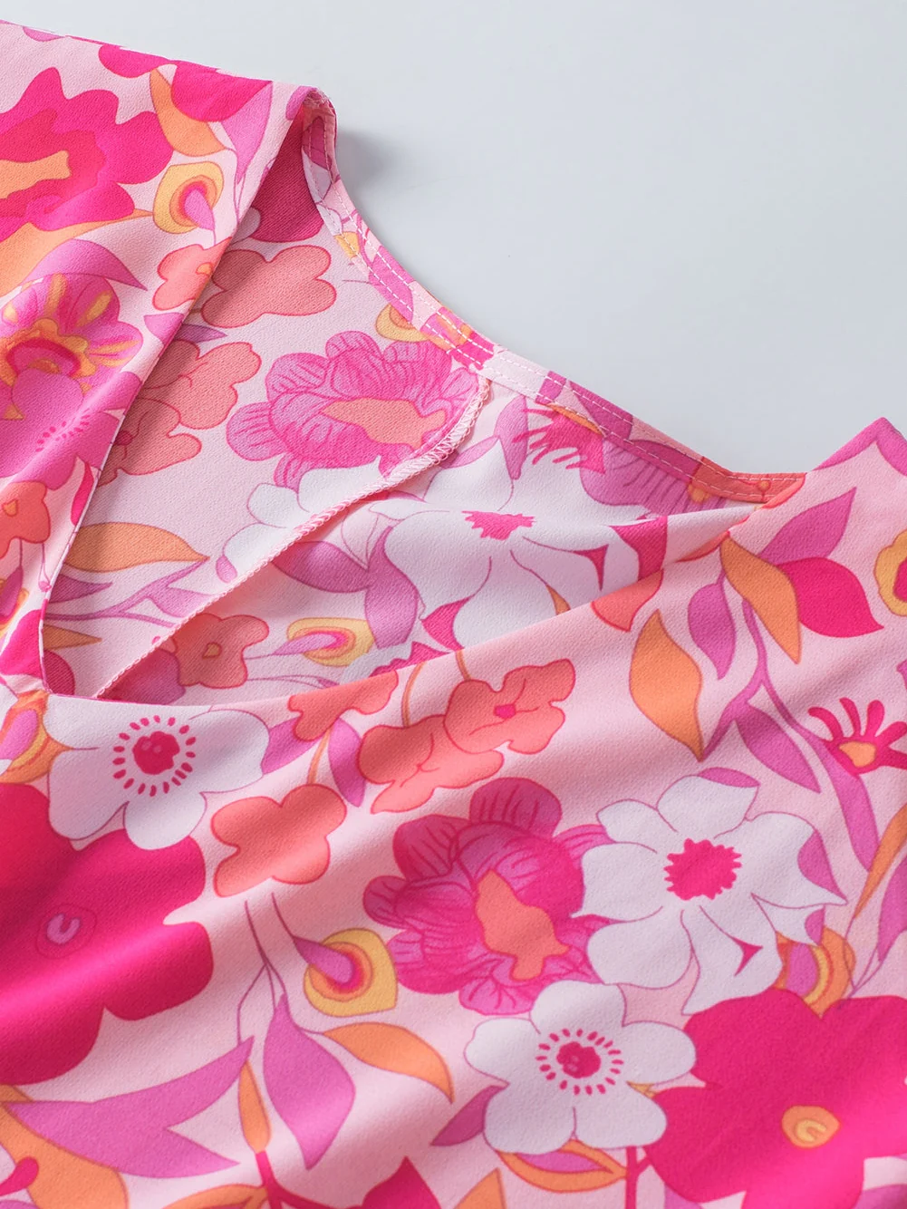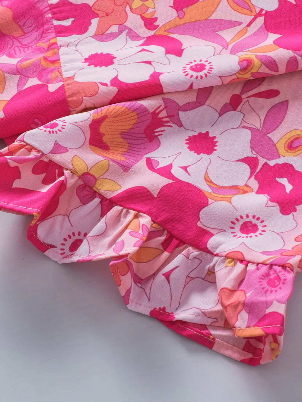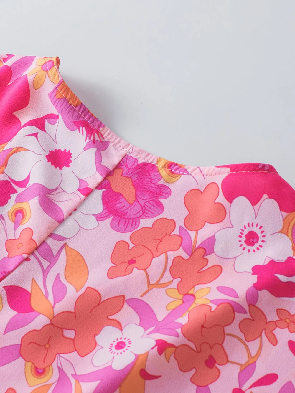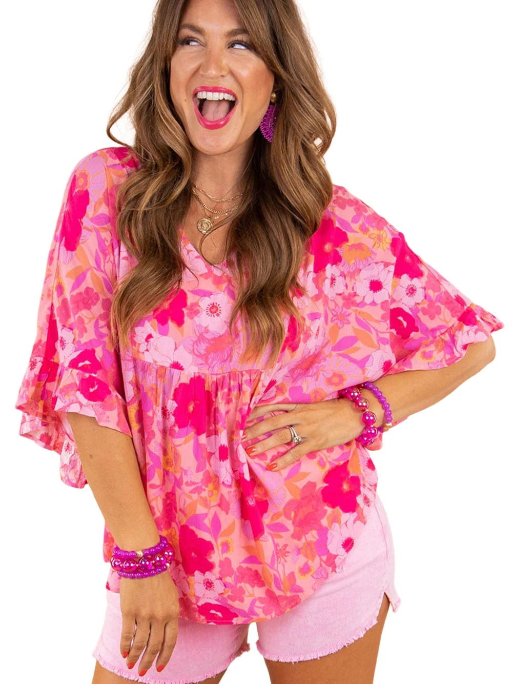 Rose Floral Print Ruffled Half Sleeve Plus Size Babydoll Blouse