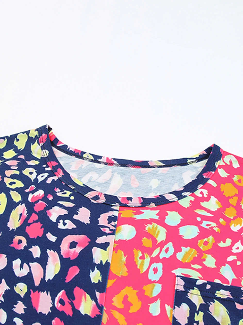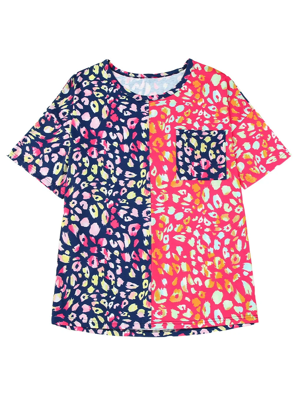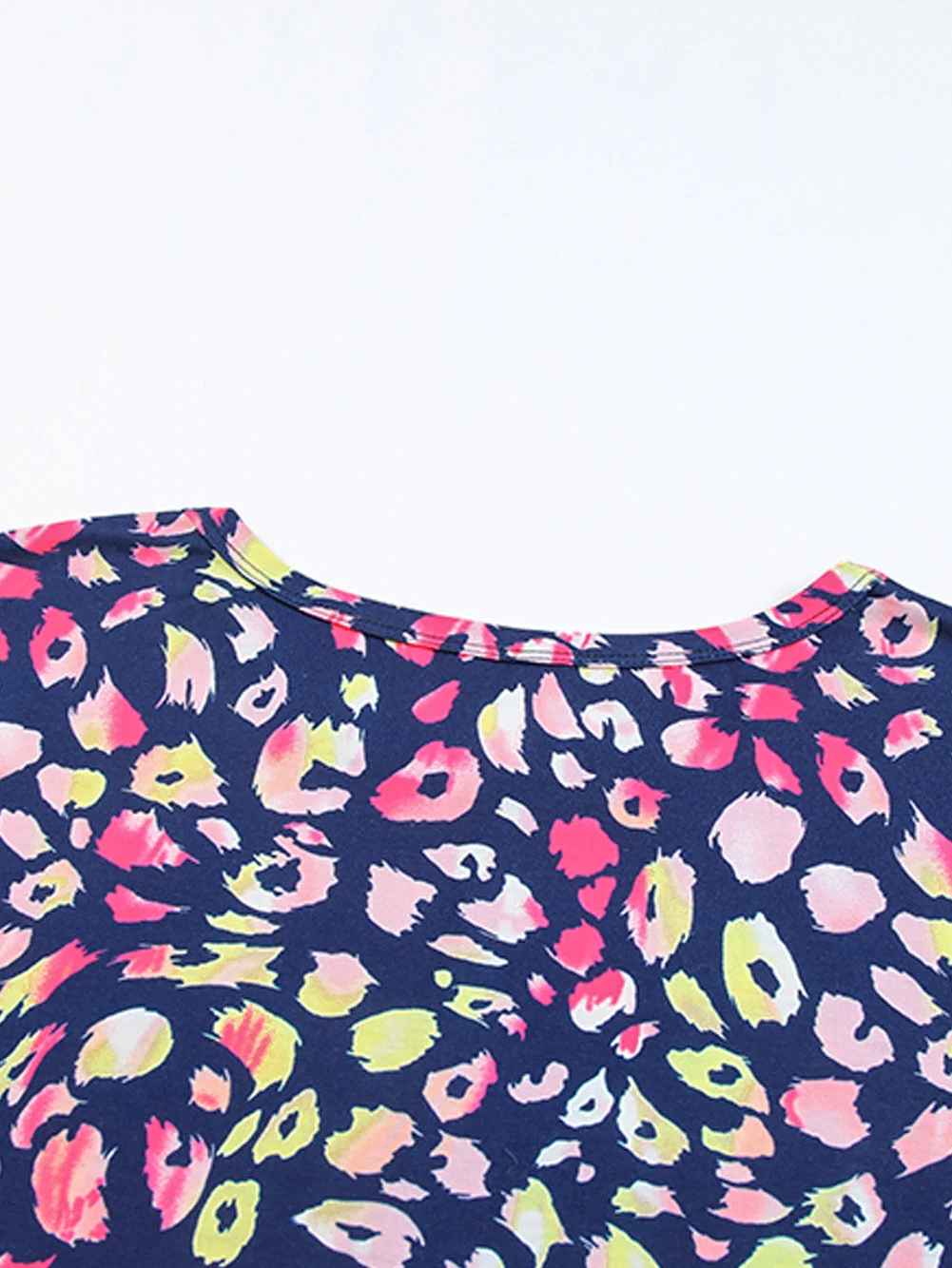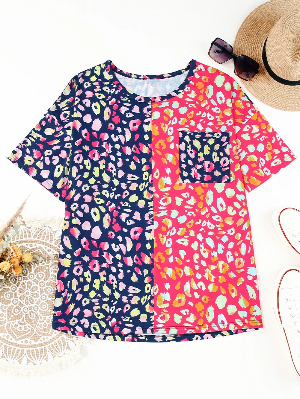 Leopard Print Colorblock V Neck Khaki Plus Size Tunic