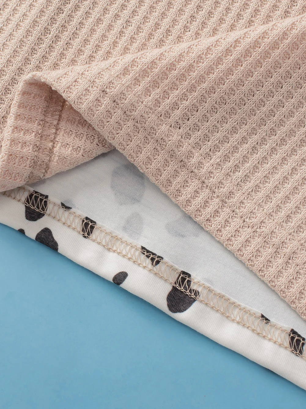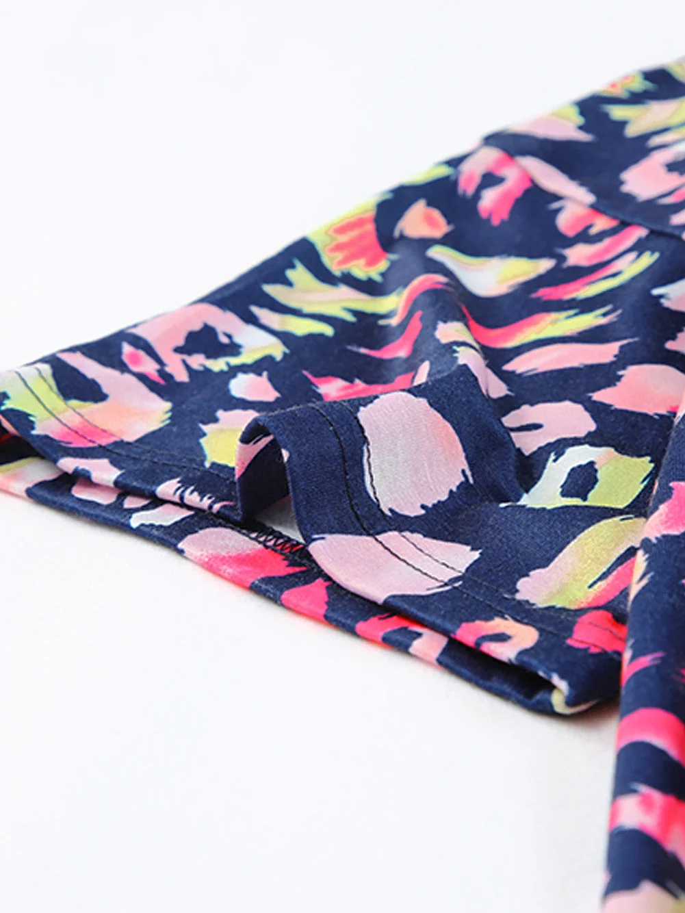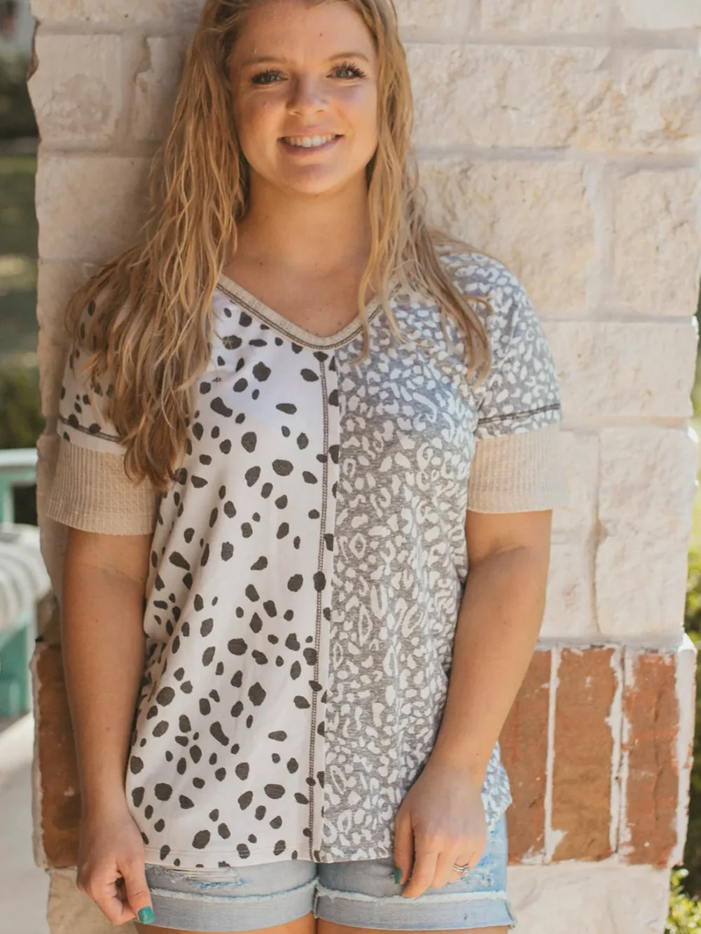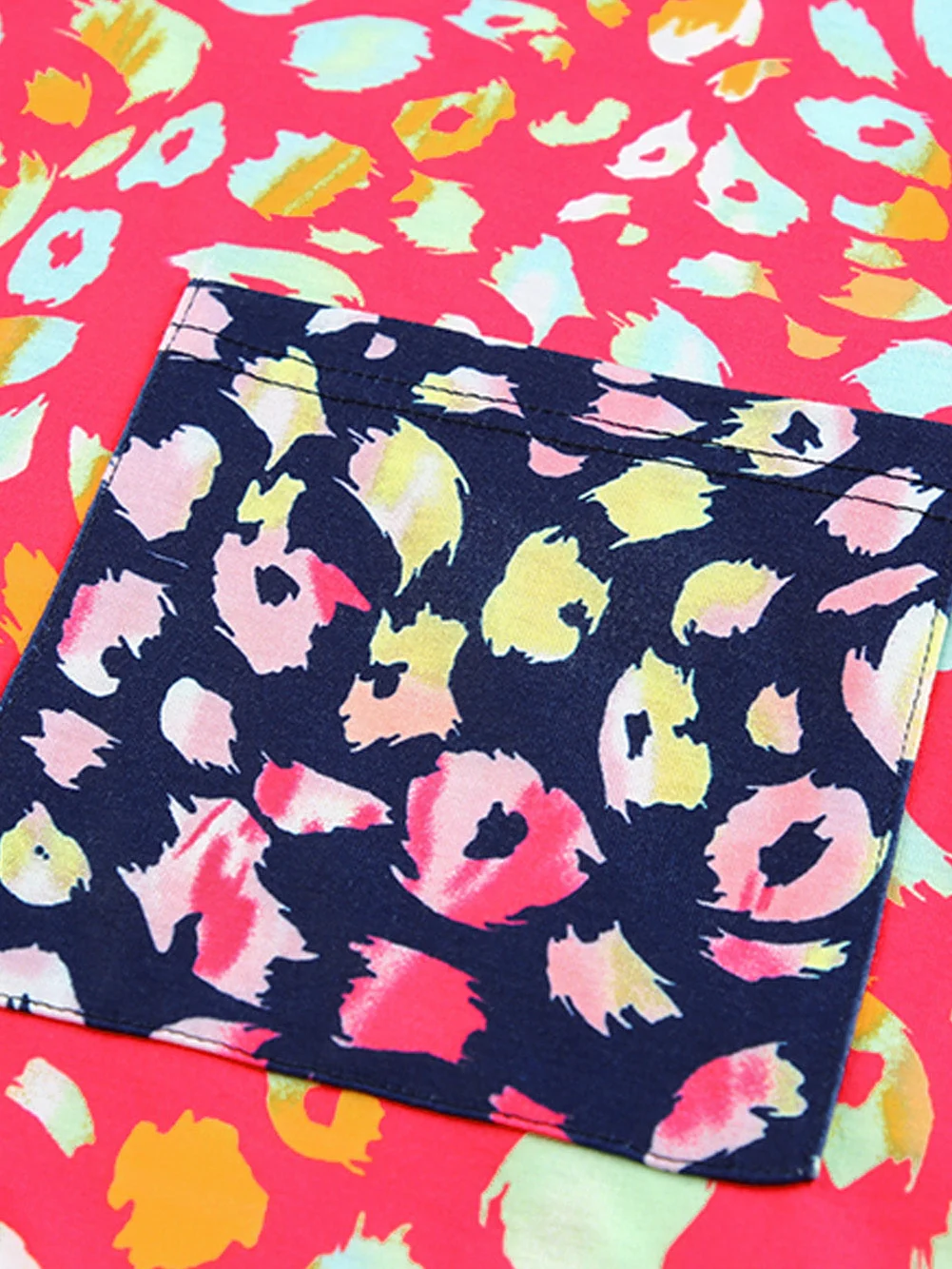 Leopard Print Colorblock V Neck Khaki Plus Size Tunic