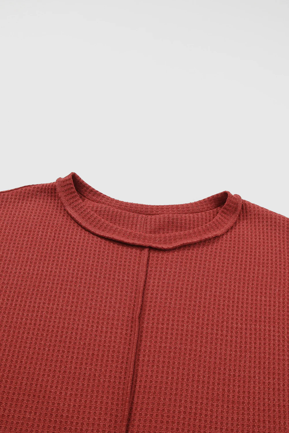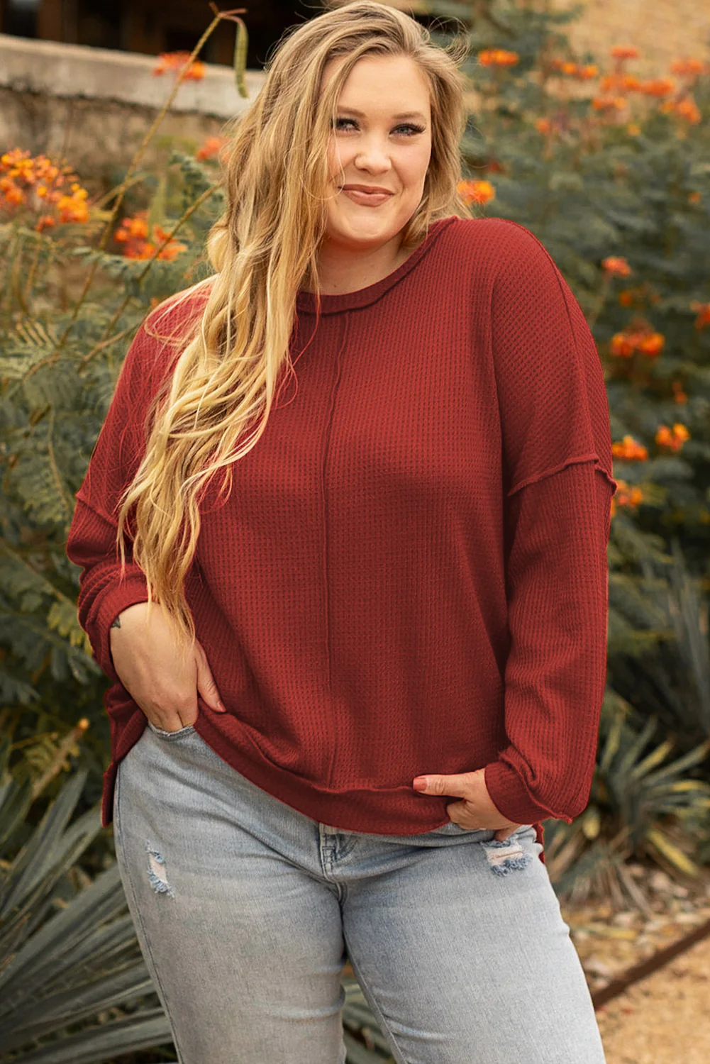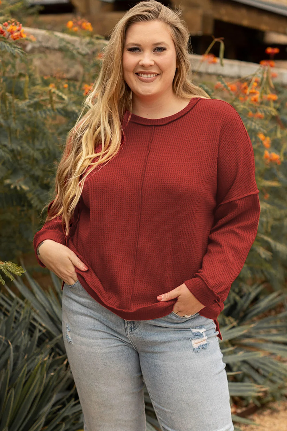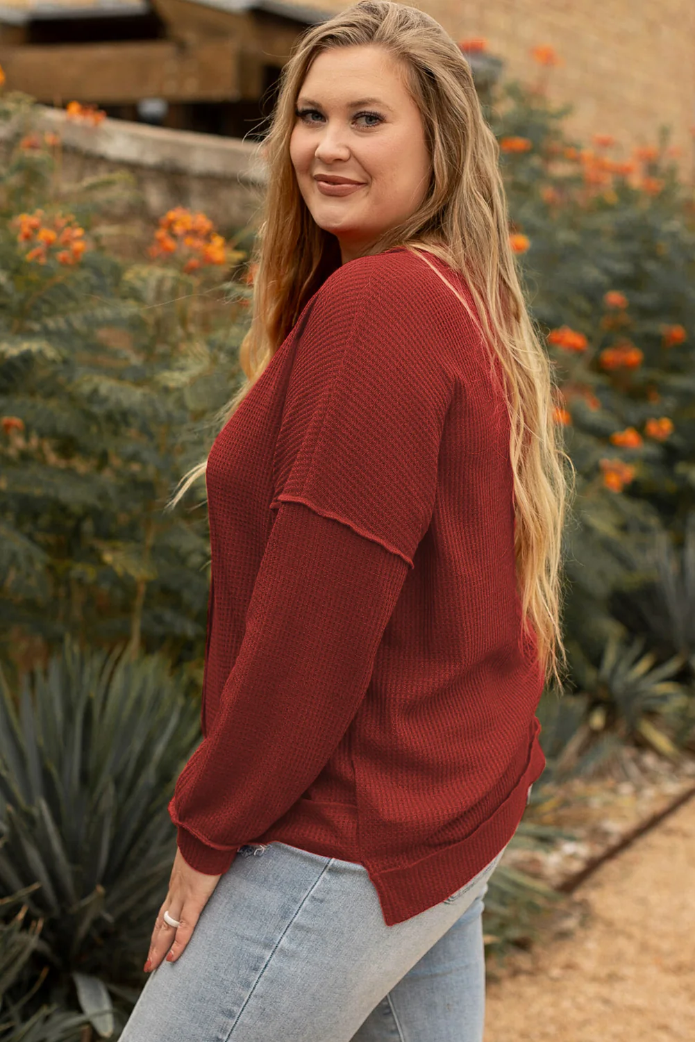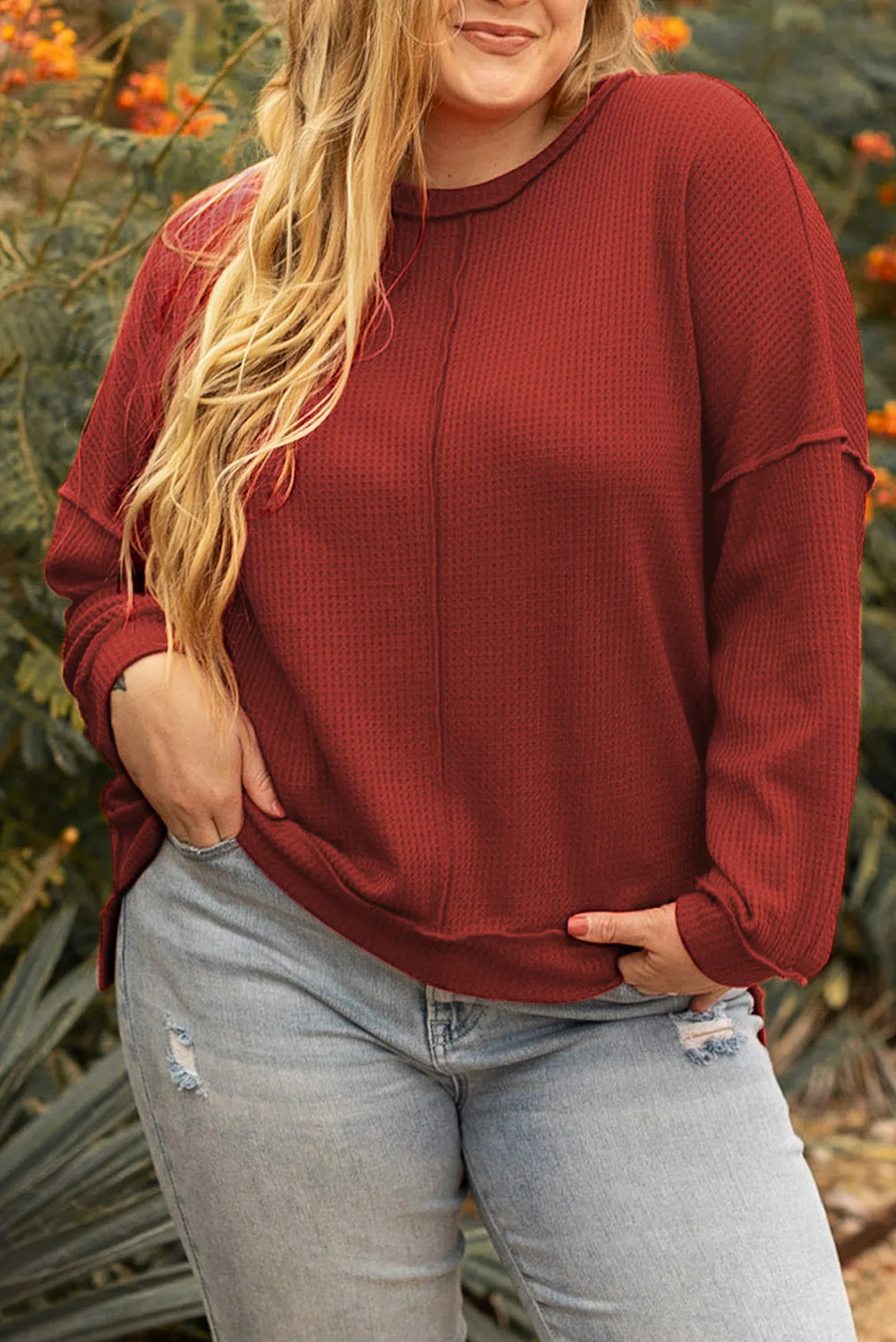 Flame Gold Plus Size Waffle Knit Top with Exposed Seam Detail