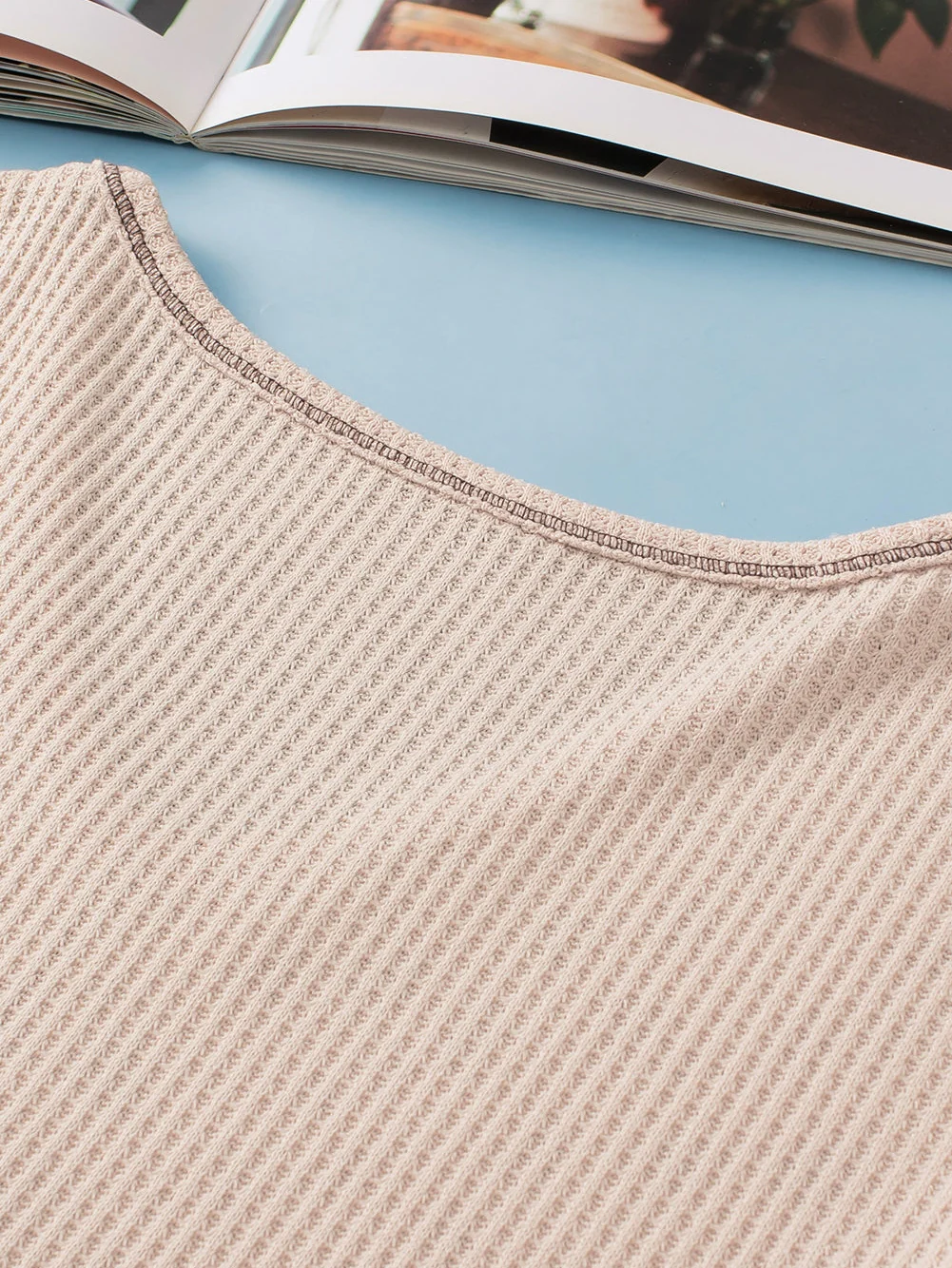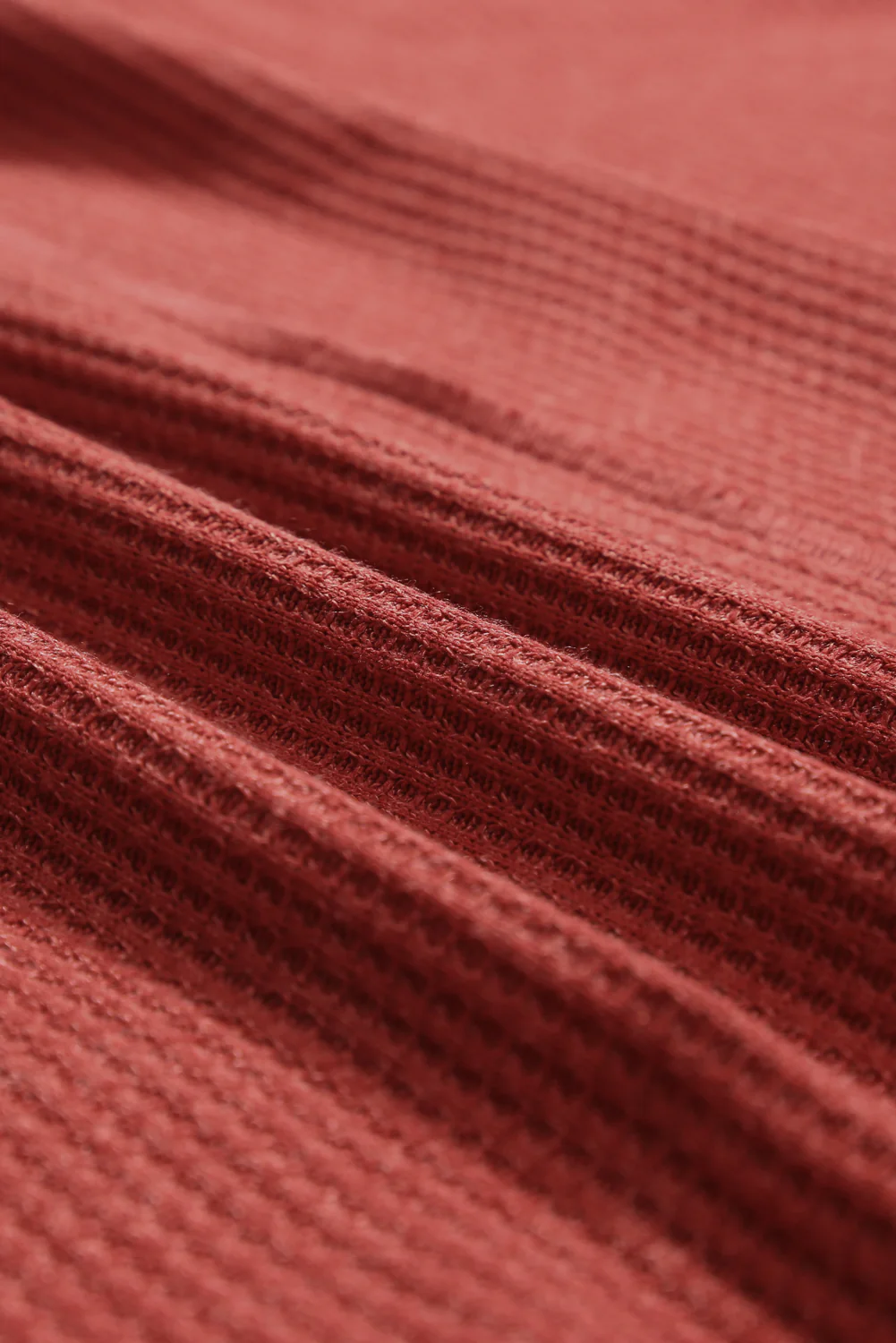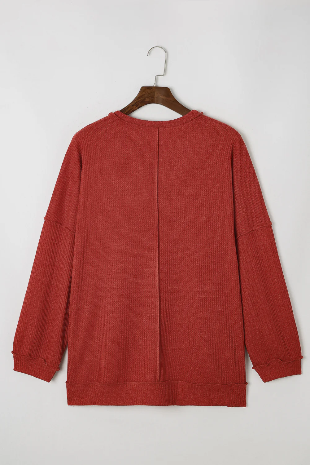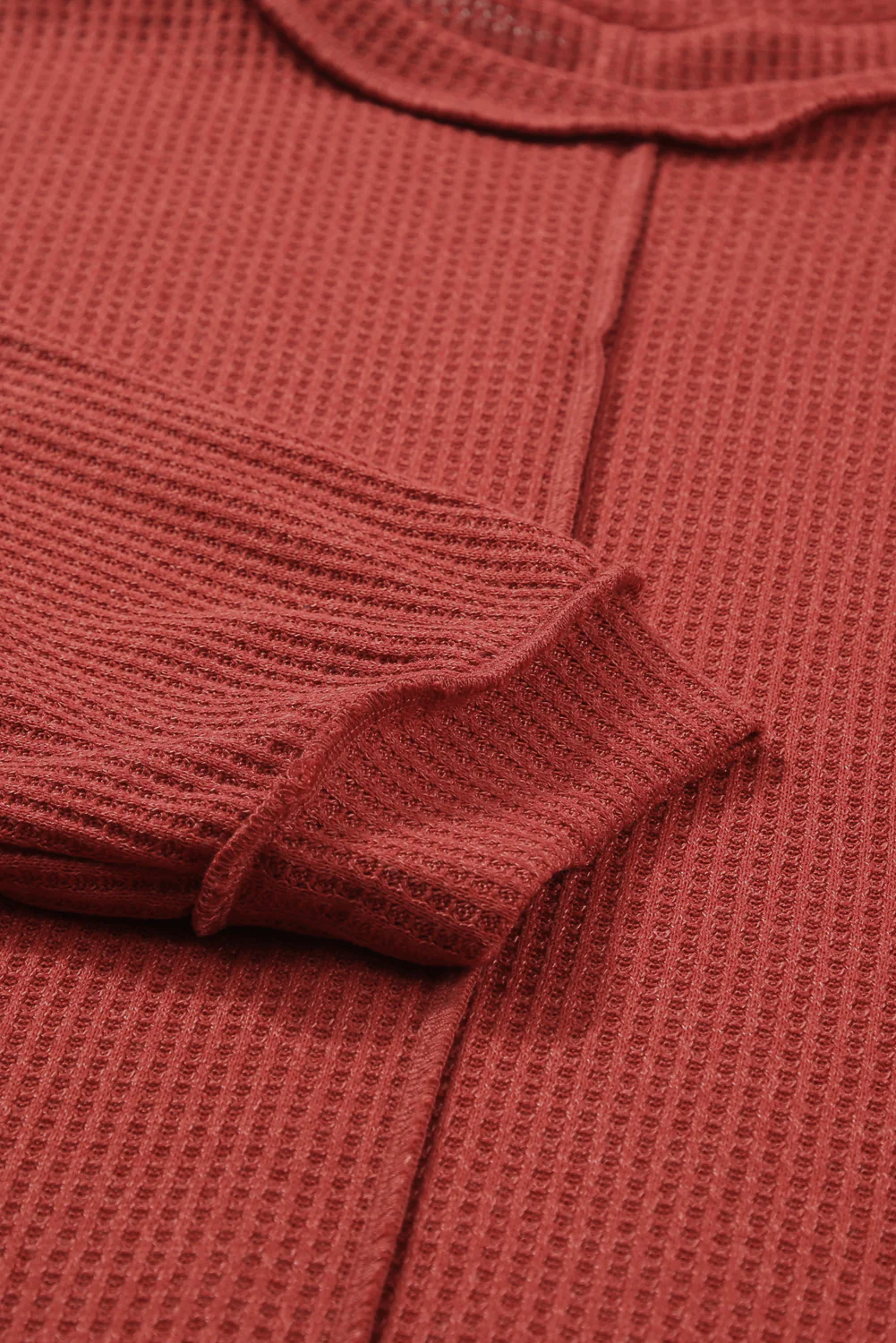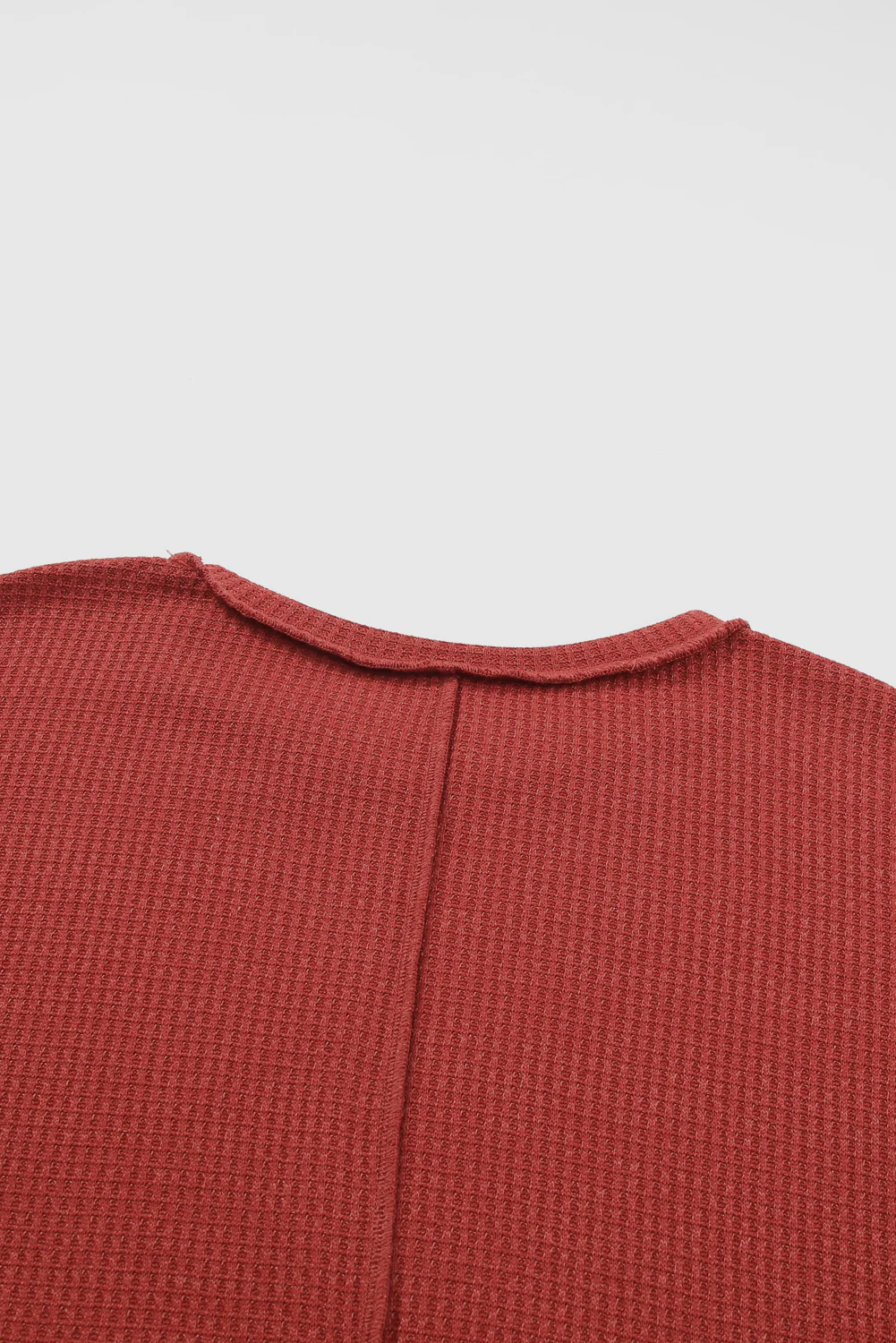 Flame Gold Plus Size Waffle Knit Top with Exposed Seam Detail