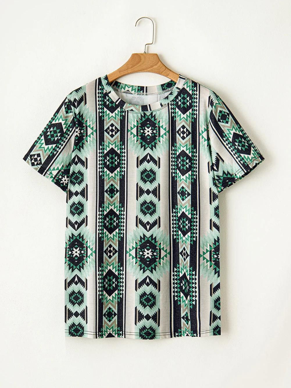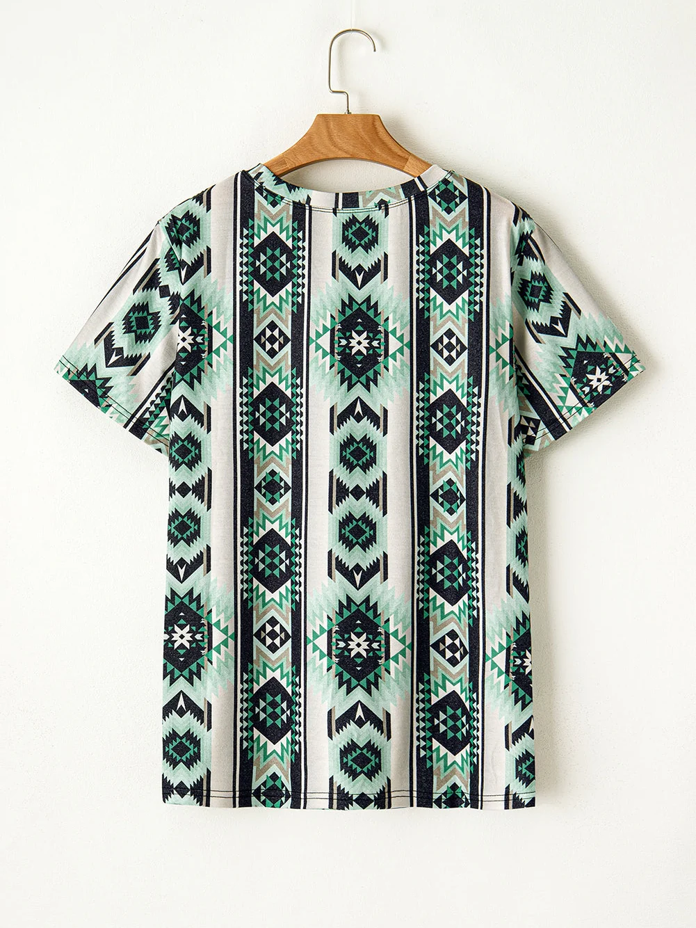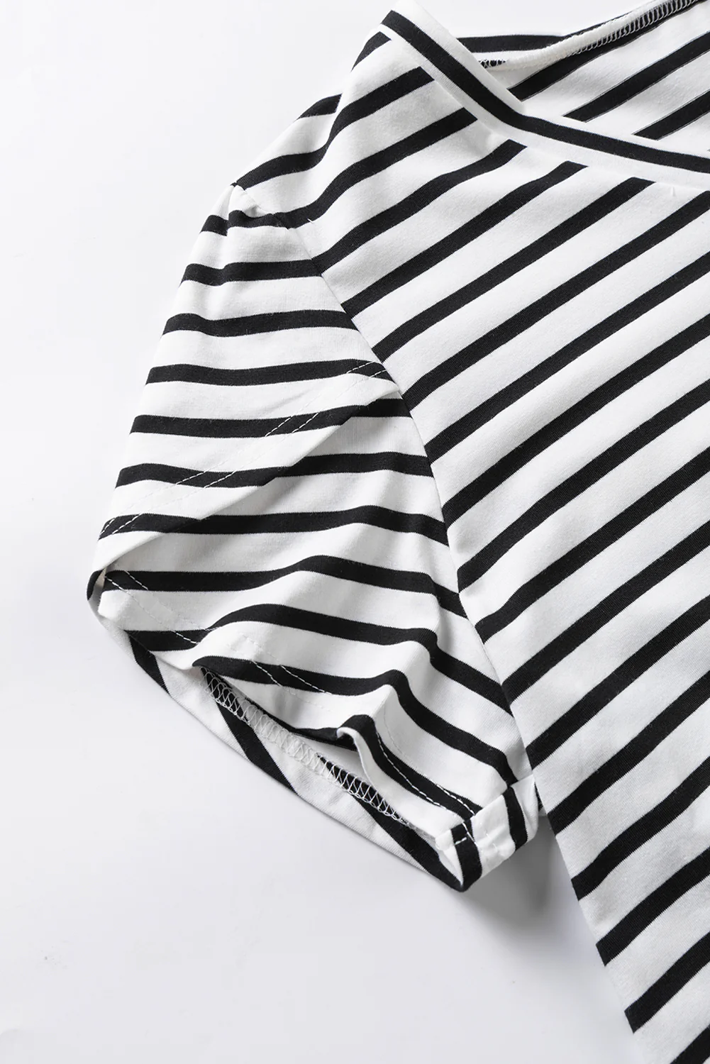 Chic Black Floral Striped Plus Size Short Sleeve Top